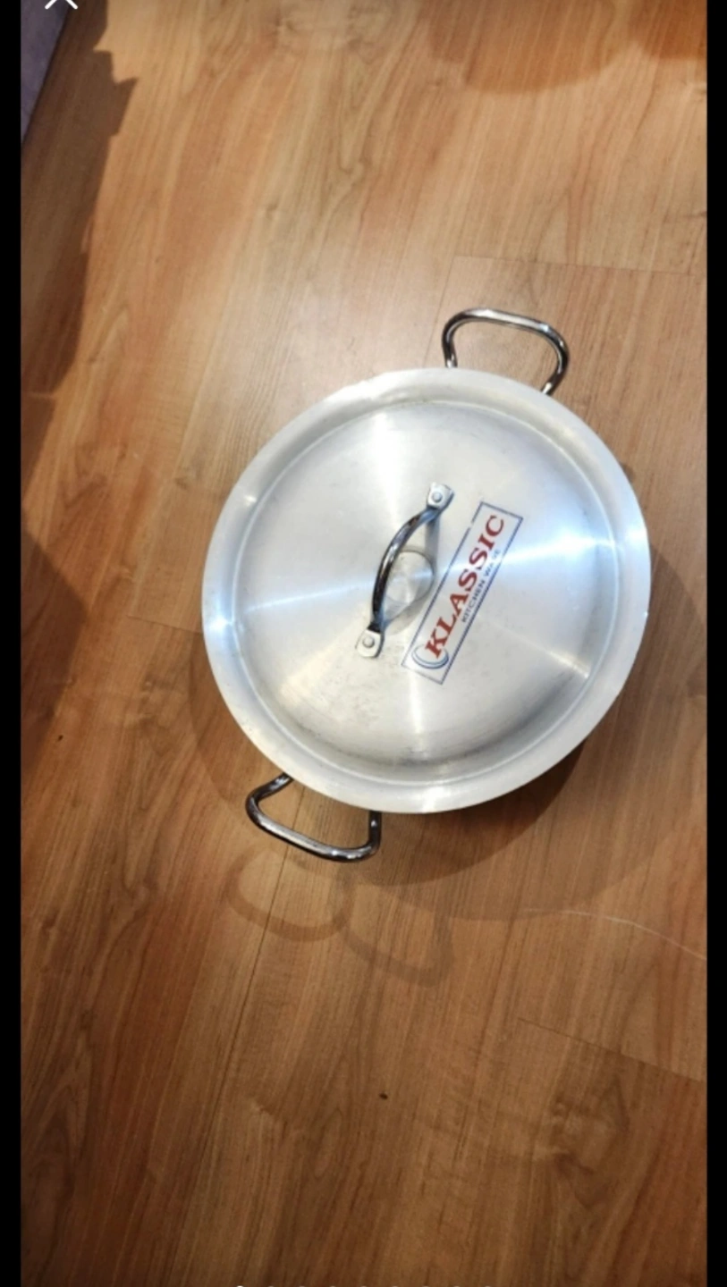 Aluminium cooking pot. Features two handles and a fitted lid. Suitable for stovetop use. excellent condition price only cash only pickup no delivery. 801 O'Connor drive outside TD Canada Trust bank door