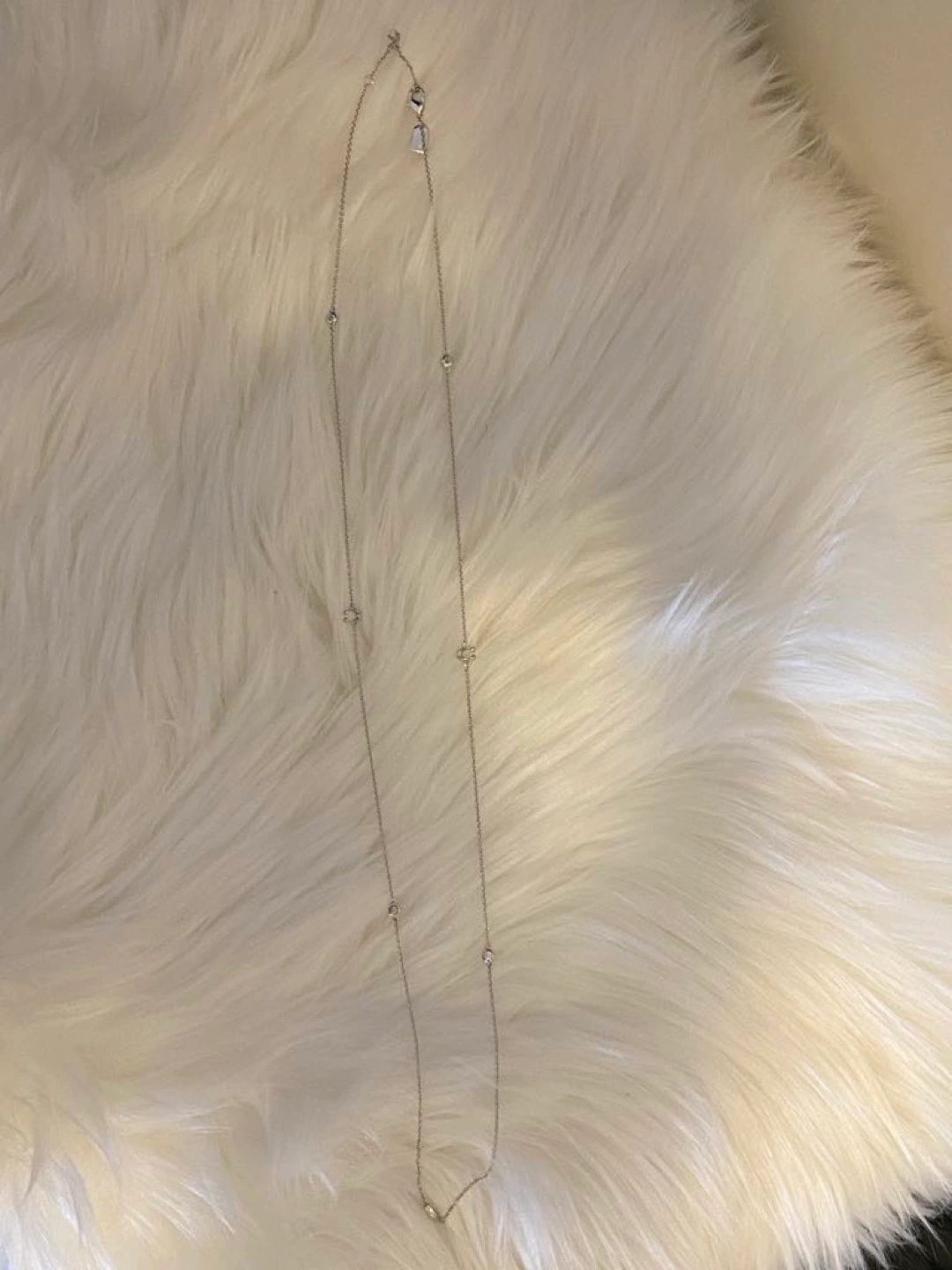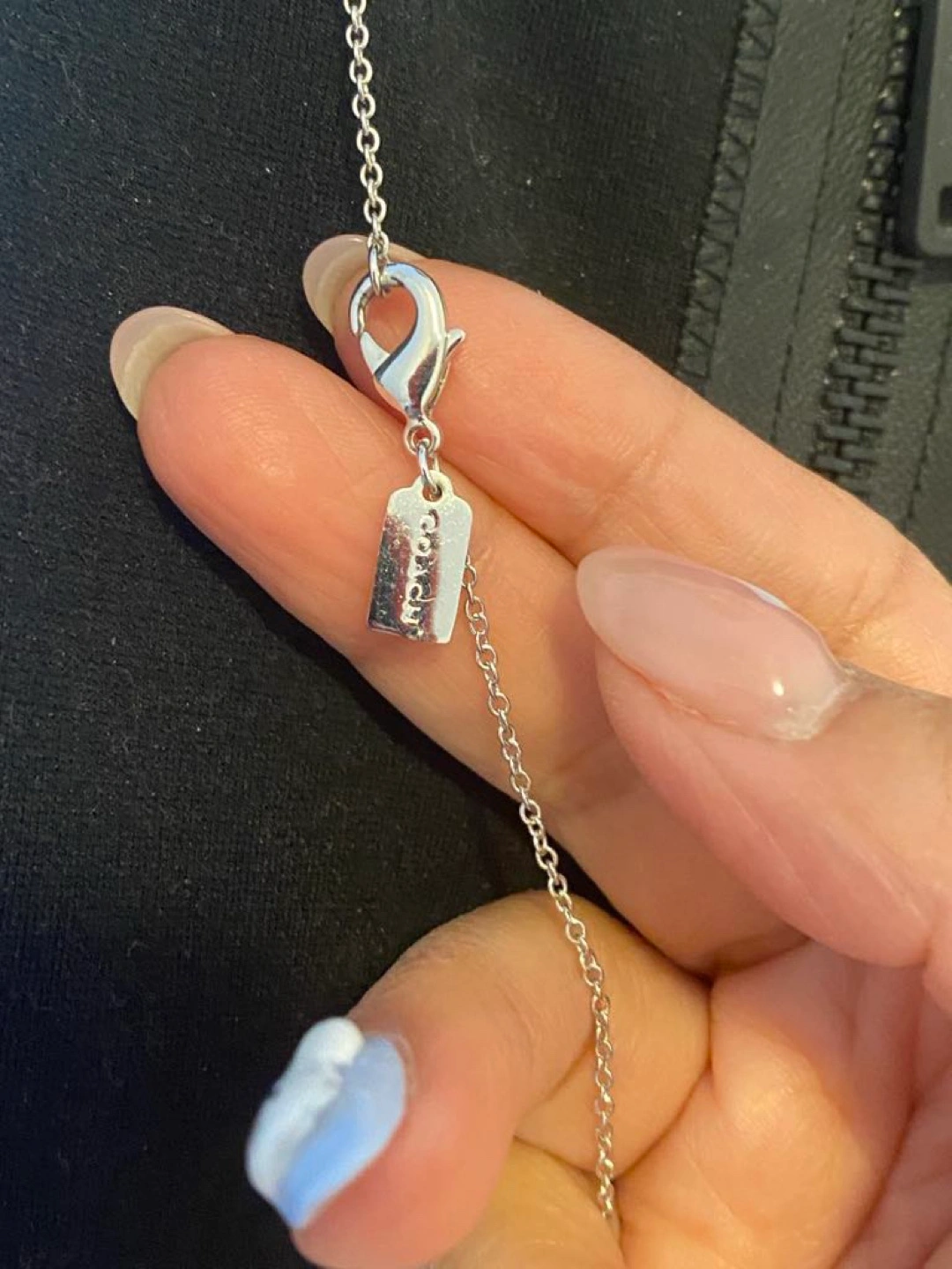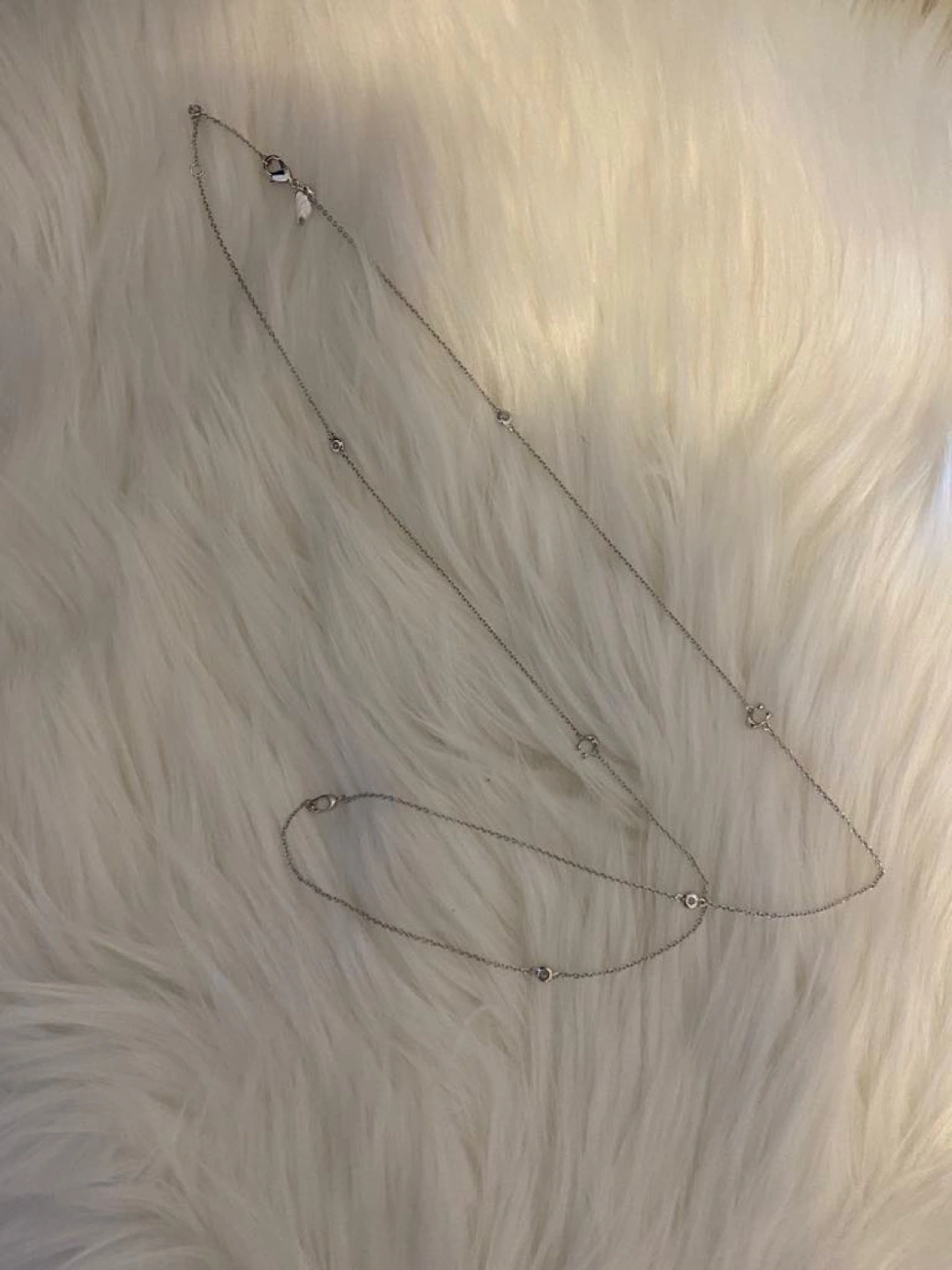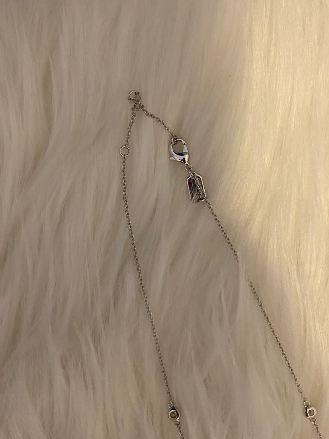 Like new conditions- used only 3/5 times lfor couple hours. Beautiful silver necklace. Features a small initial C charm and four cubic zirconia accents. Lobster clasp closure. Perfect for layering.