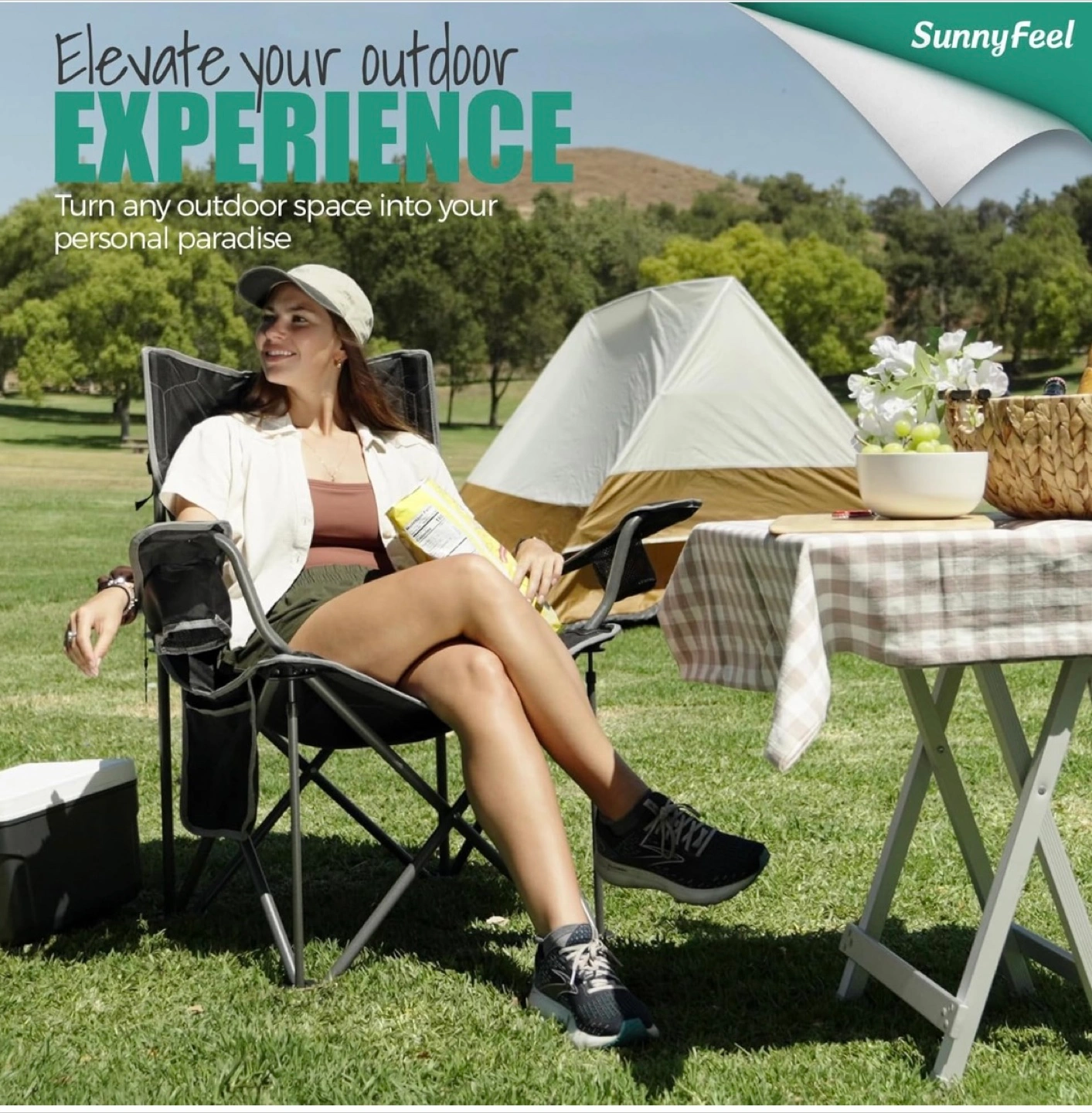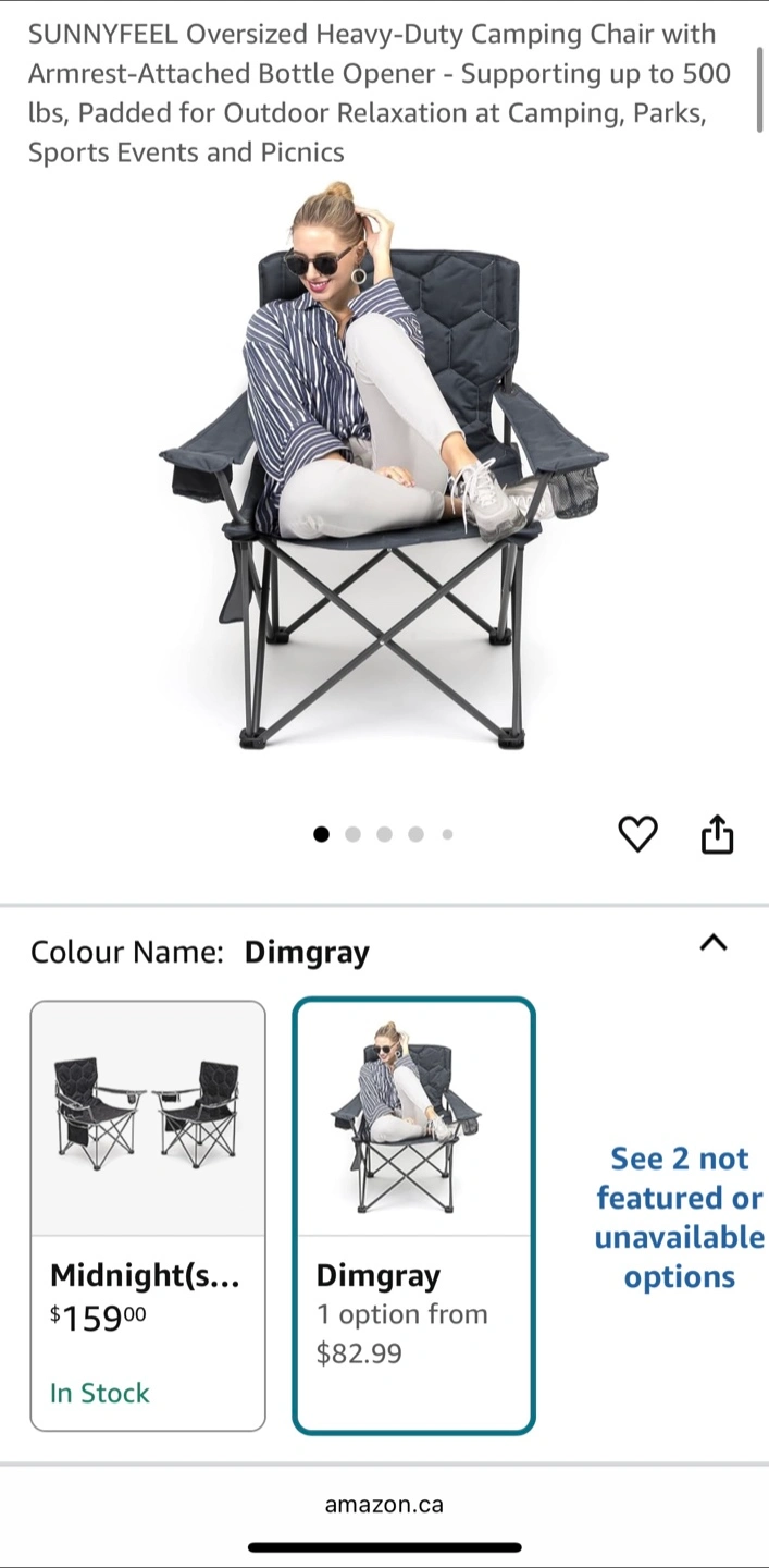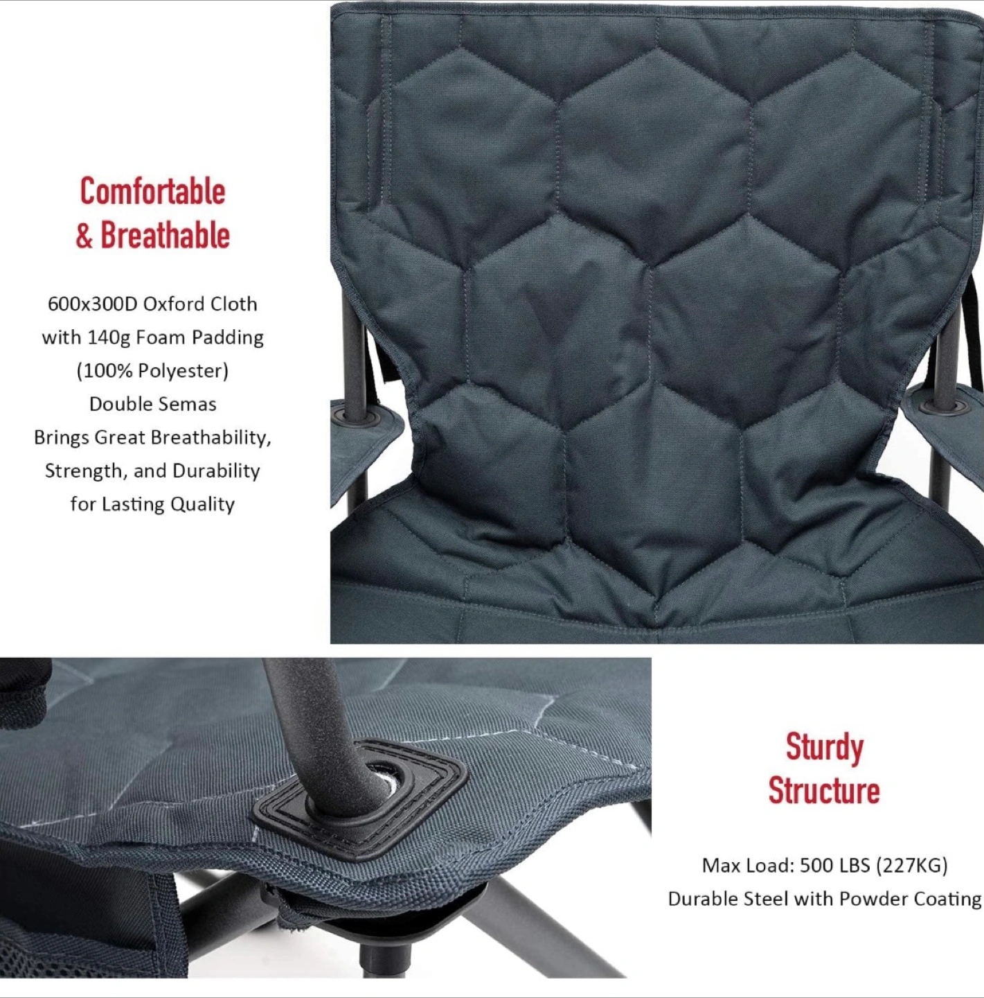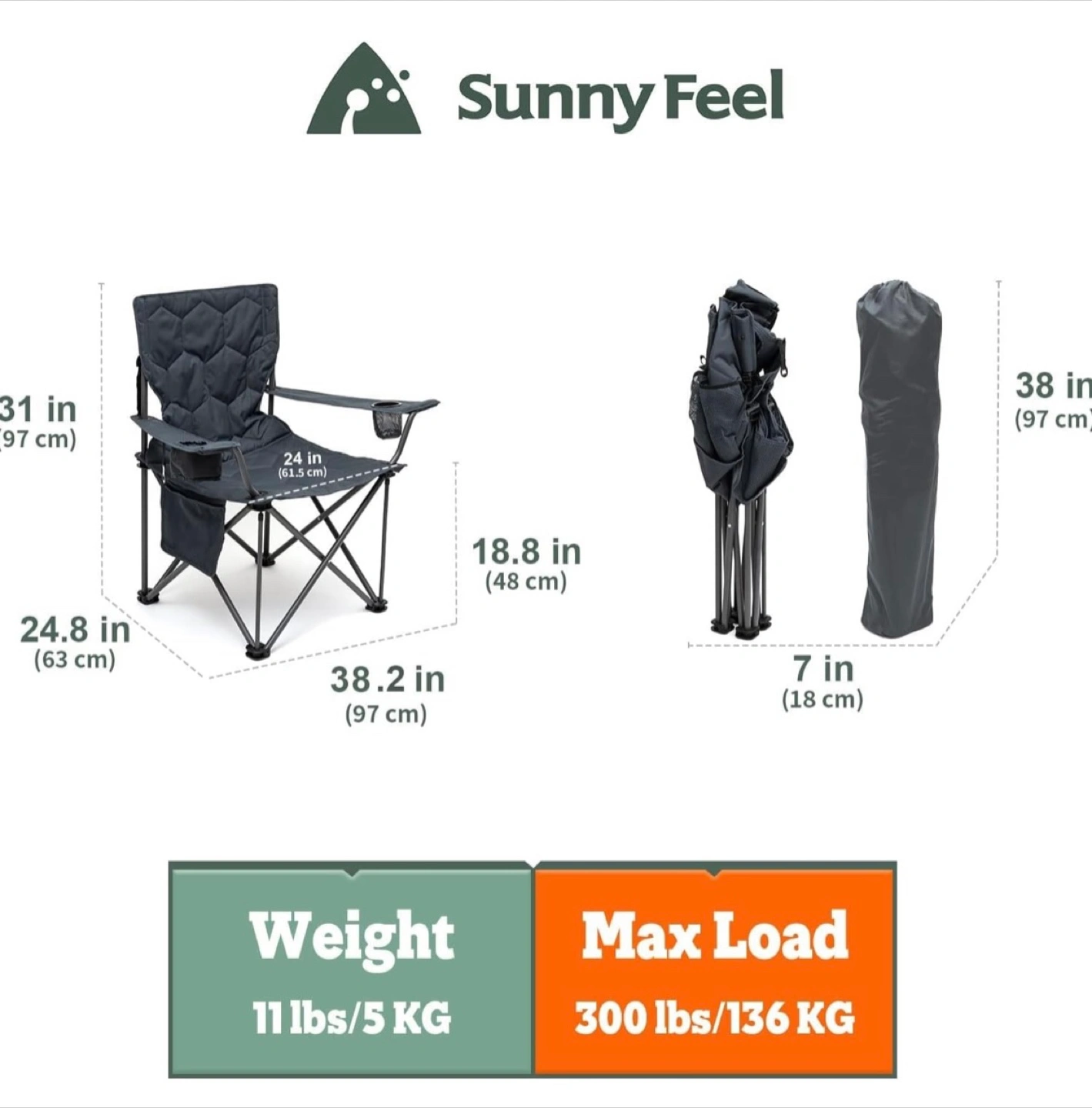SUNNYFEEL Oversized Heavy Duty Padded Camping Chair w Carrying Case. Grey. Brand New in Box. $40 firm Reg. Price: $83 +HST
