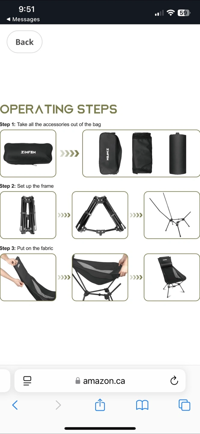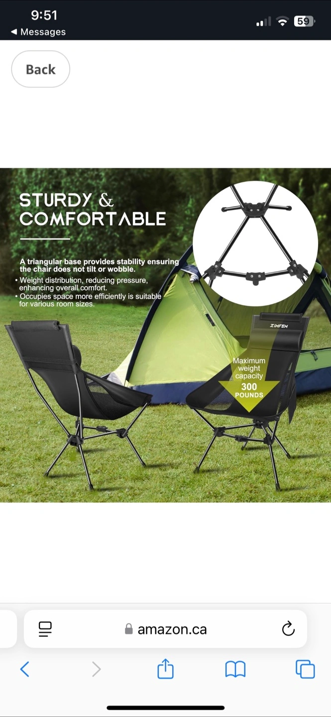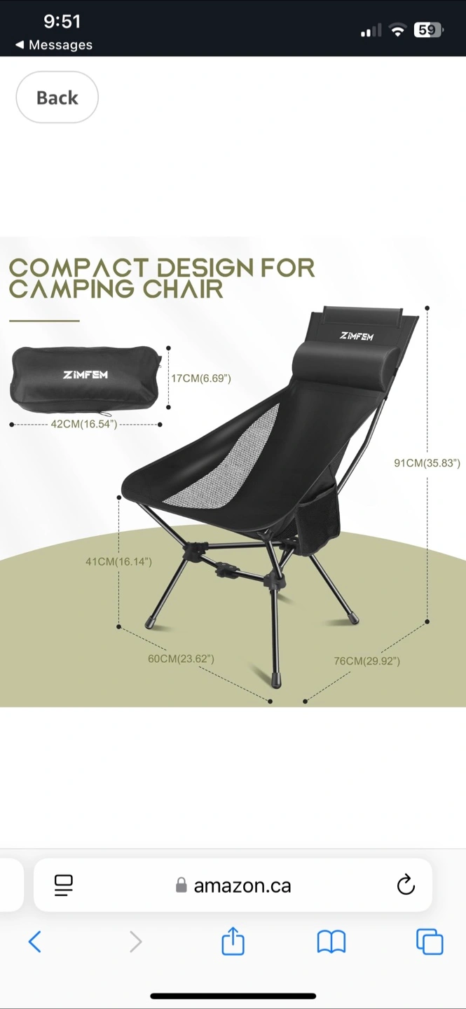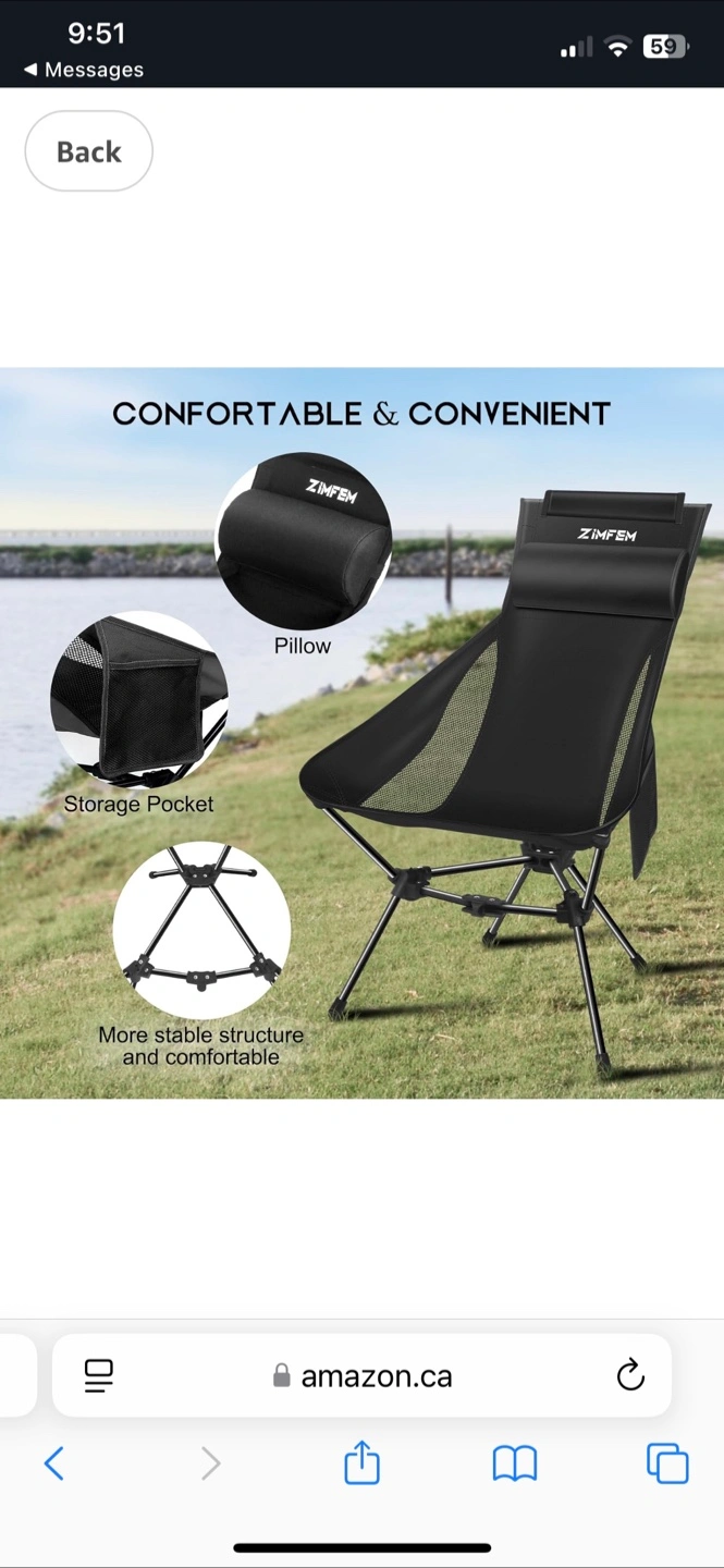 ZIMFEM Portable, Lightweight Camping Chair with Headrest and Storage Bag. Brand New in Box ! $30 firm.