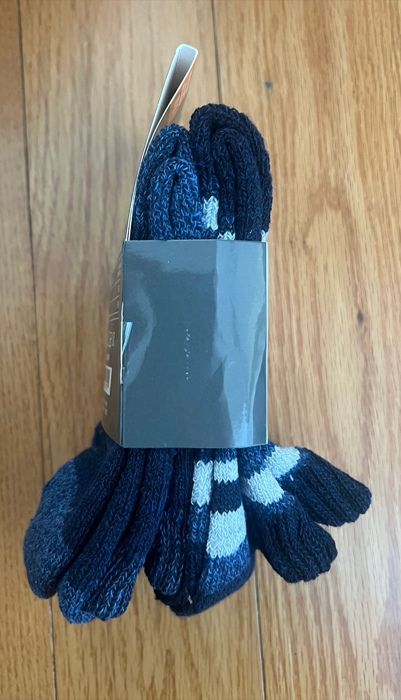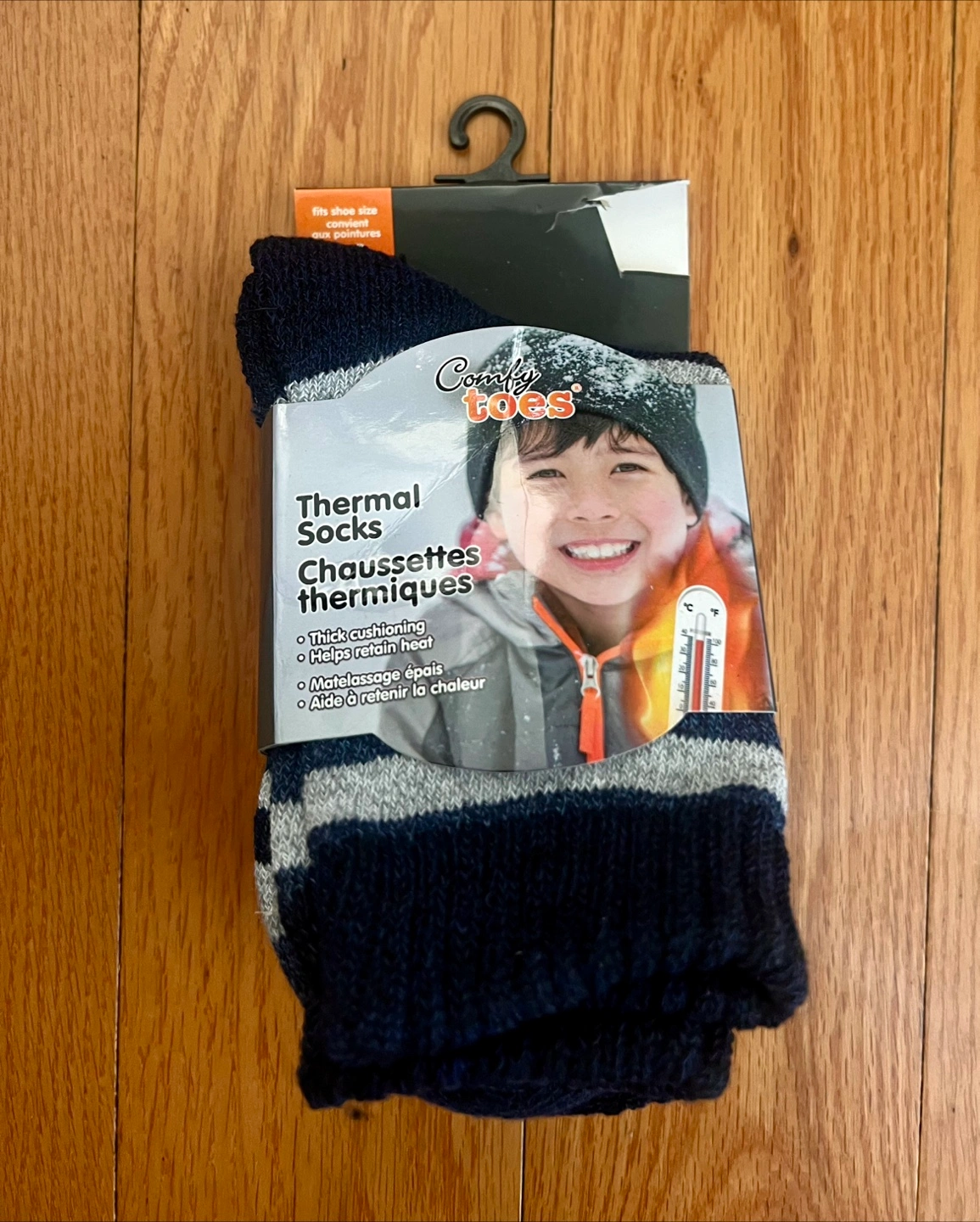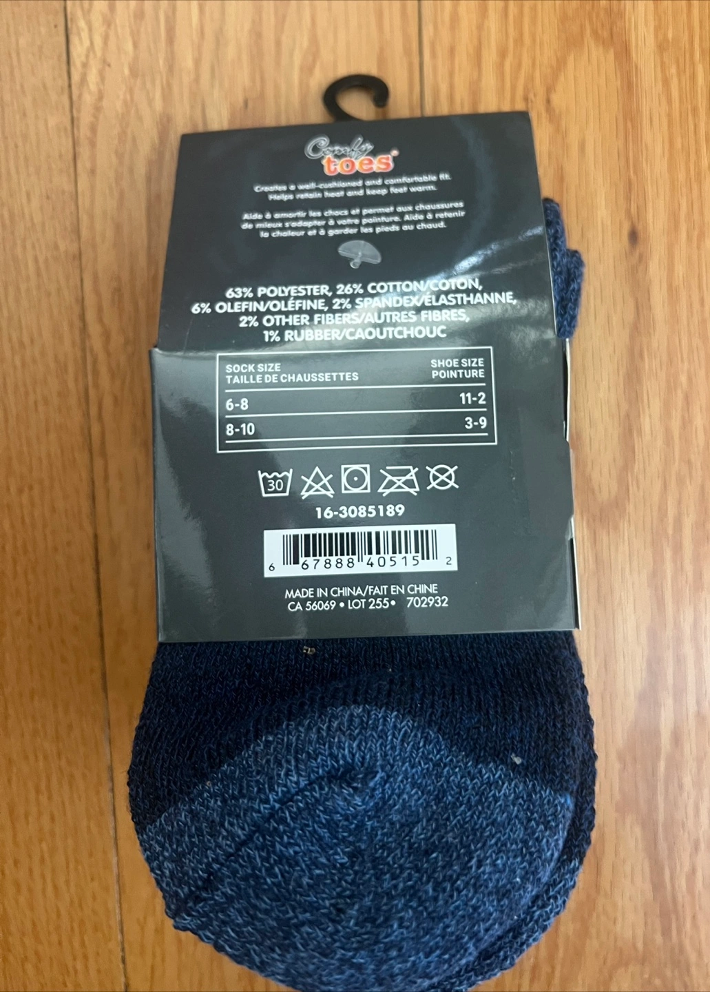 New - Cozy Toes thermal socks Size 6-8, fits shoe size 11-2 Dark blue with grey stripes Lakeshore and parklawn Queen and ossington (some days) Open to trades