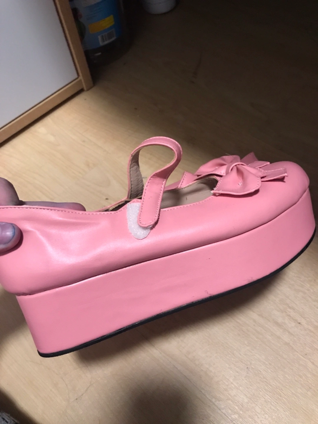 Adorable pink platform shoes. Features a large bow and ankle strap. Platform sole. Lightly worn.