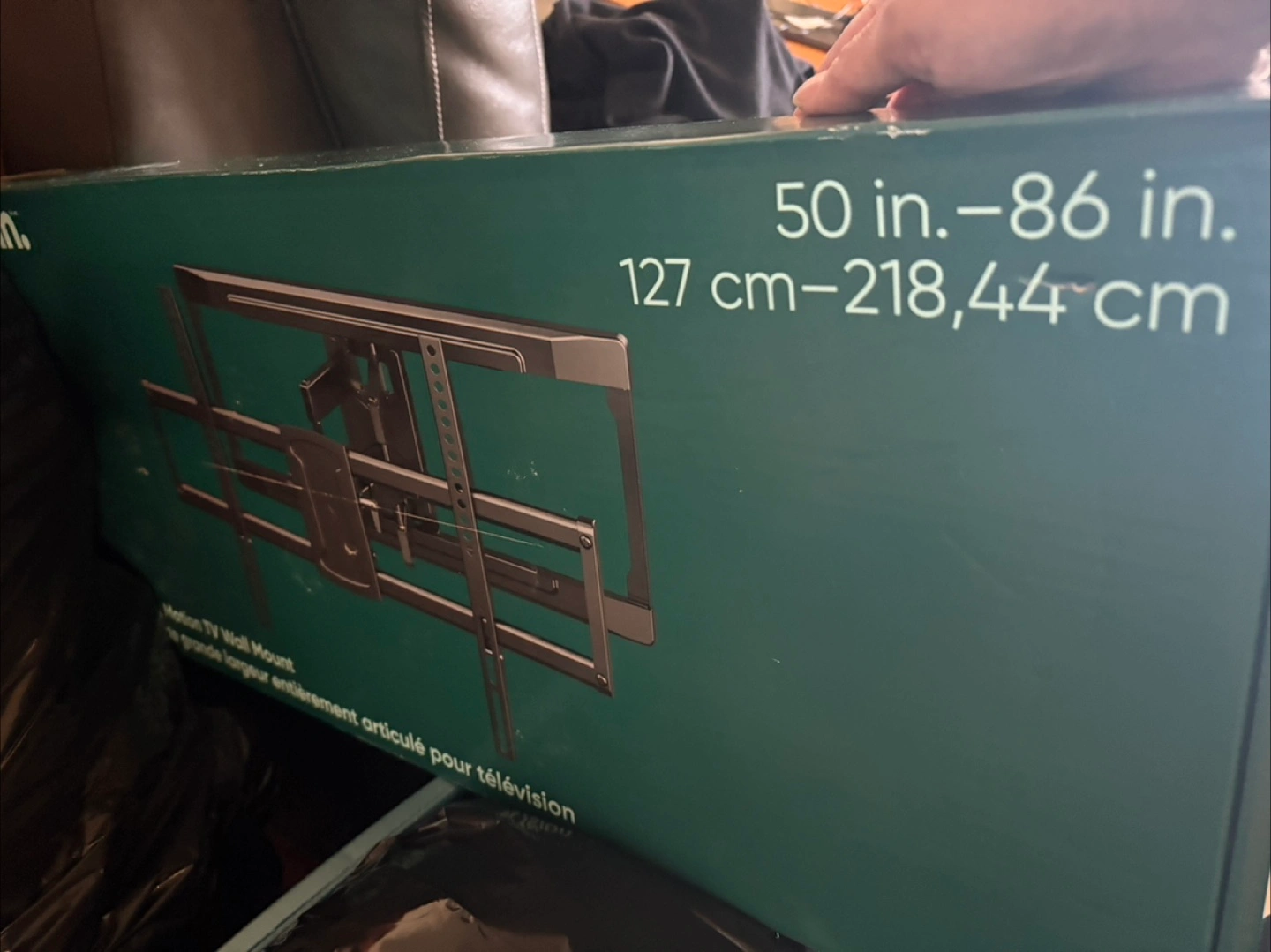New in box. Extra-wide full motion TV wall mount. Fits 50-86 inch TVs. 127-218 cm. Only available for pick up.
