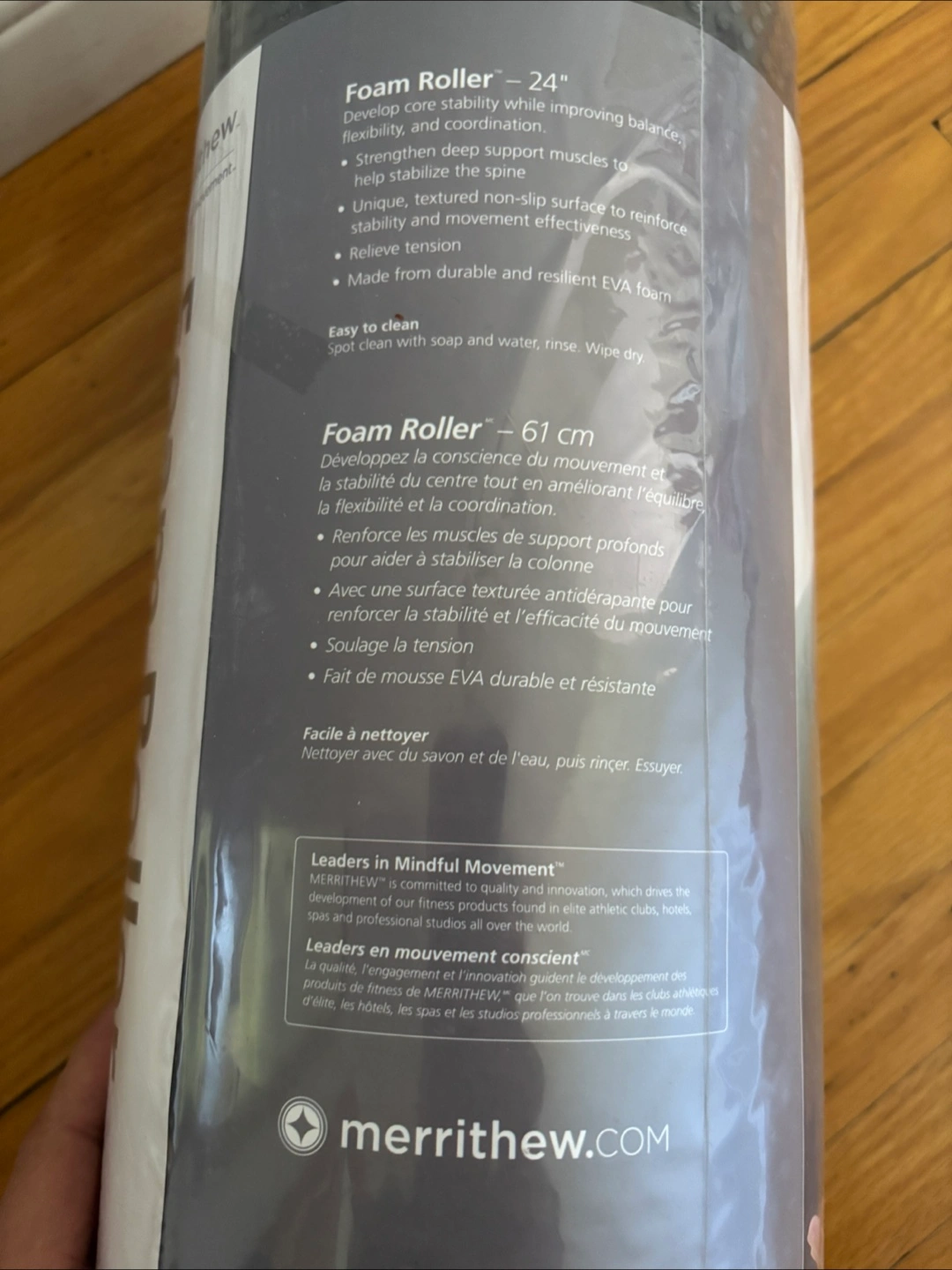 New Merrithew foam roller. 24 inches long. Durable and resilient EVA foam. Easy to clean. Improves balance and posture. Strengthens deep support muscles. Unique textured non-slip surface.