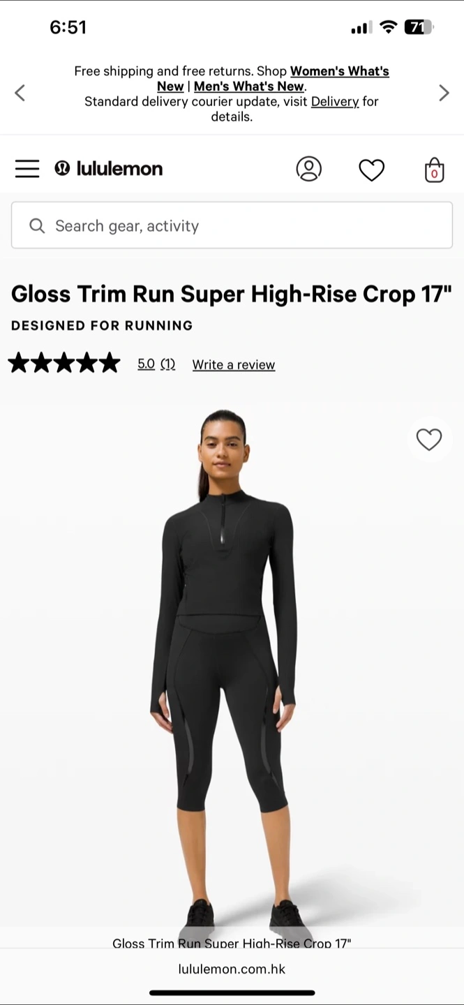 Black running crops. Super high-rise. 17" inseam. Glossy trim detail. Designed for running. Excellent condition.