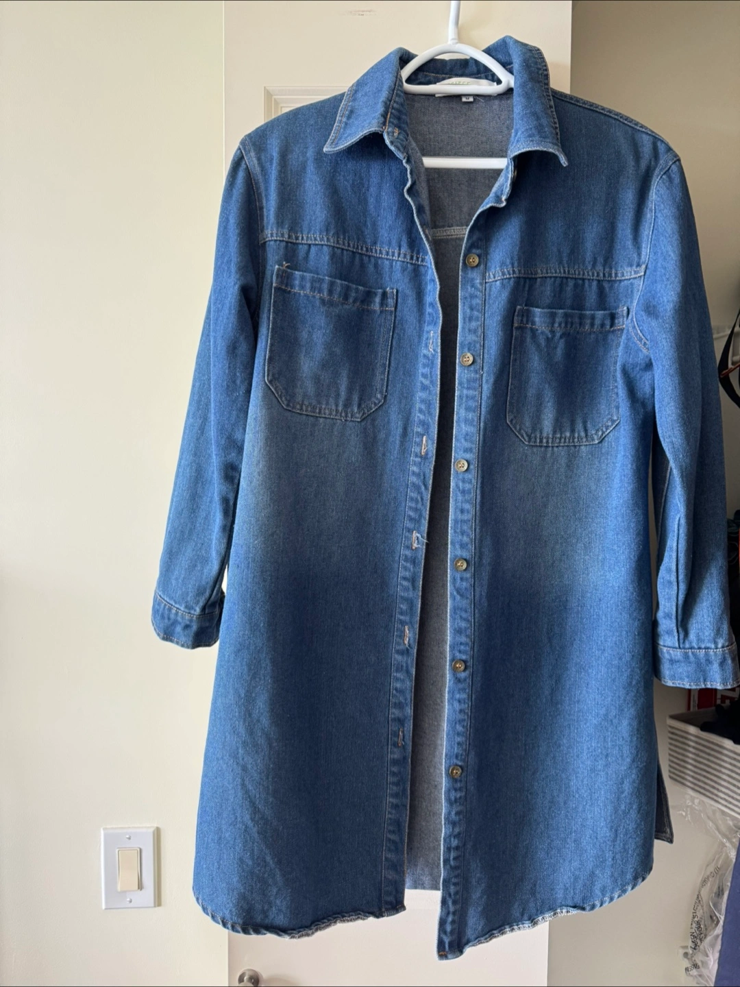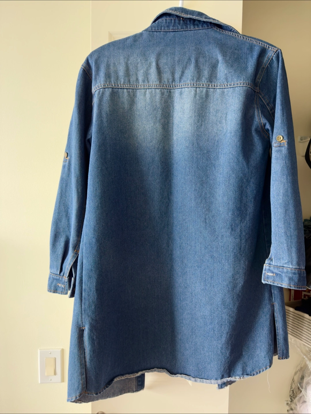 Long sleeve denim shirt. Button-up front. Two chest pockets. Relaxed fit. Classic blue wash. M size