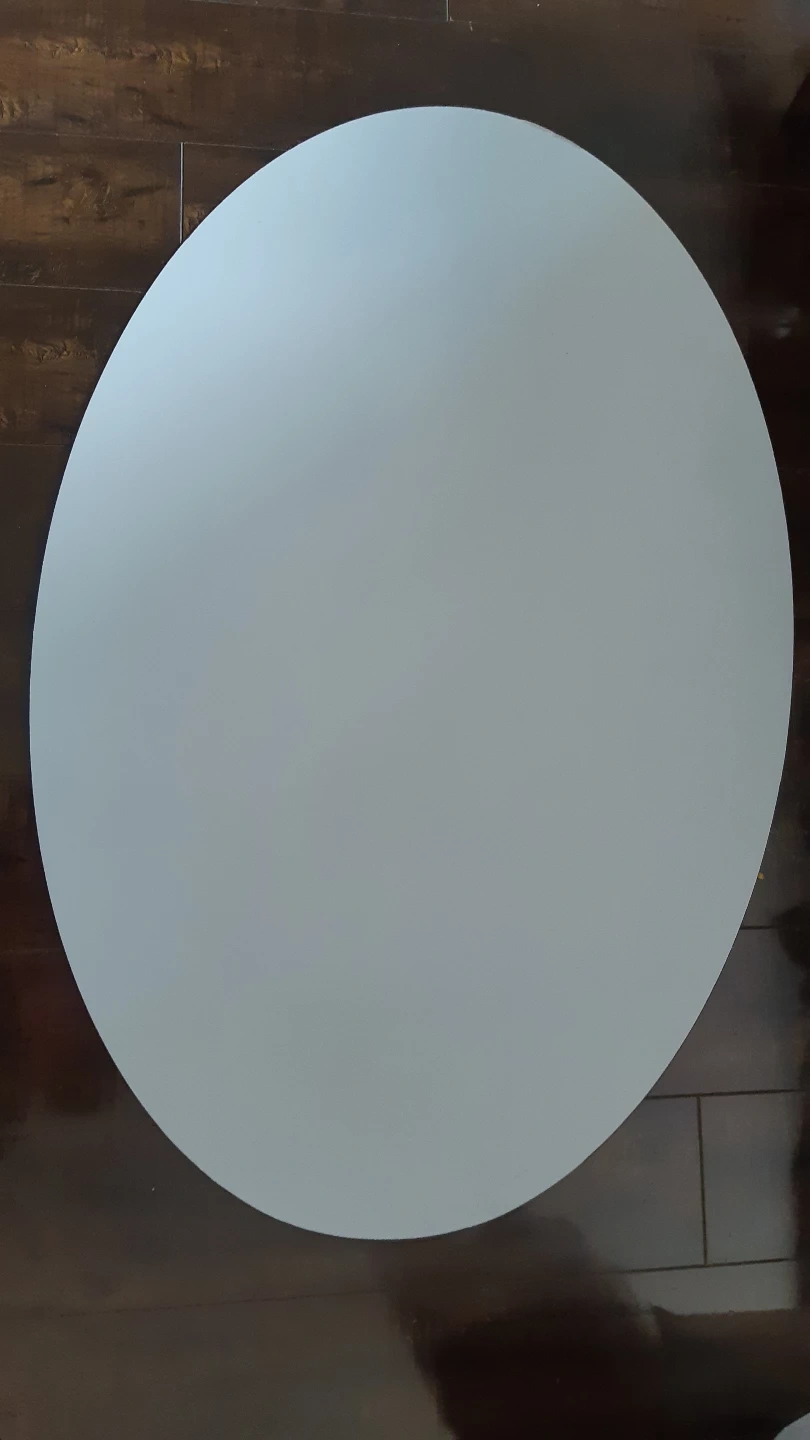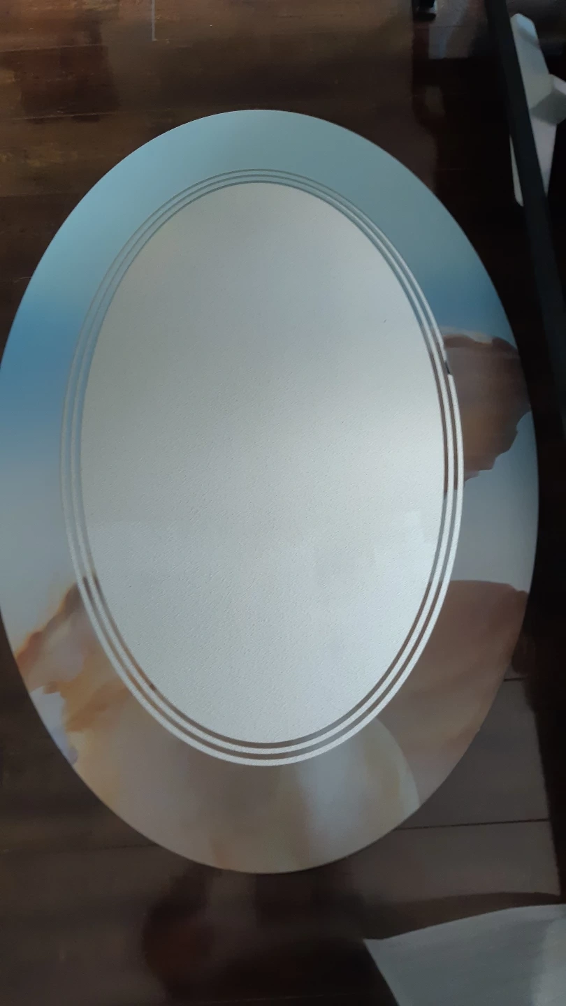 Large oval mirror. Features a bevelled edge on very good condition no chip no damage. Excellent for bathrooms or entryways. Adds a touch of elegance to any room.