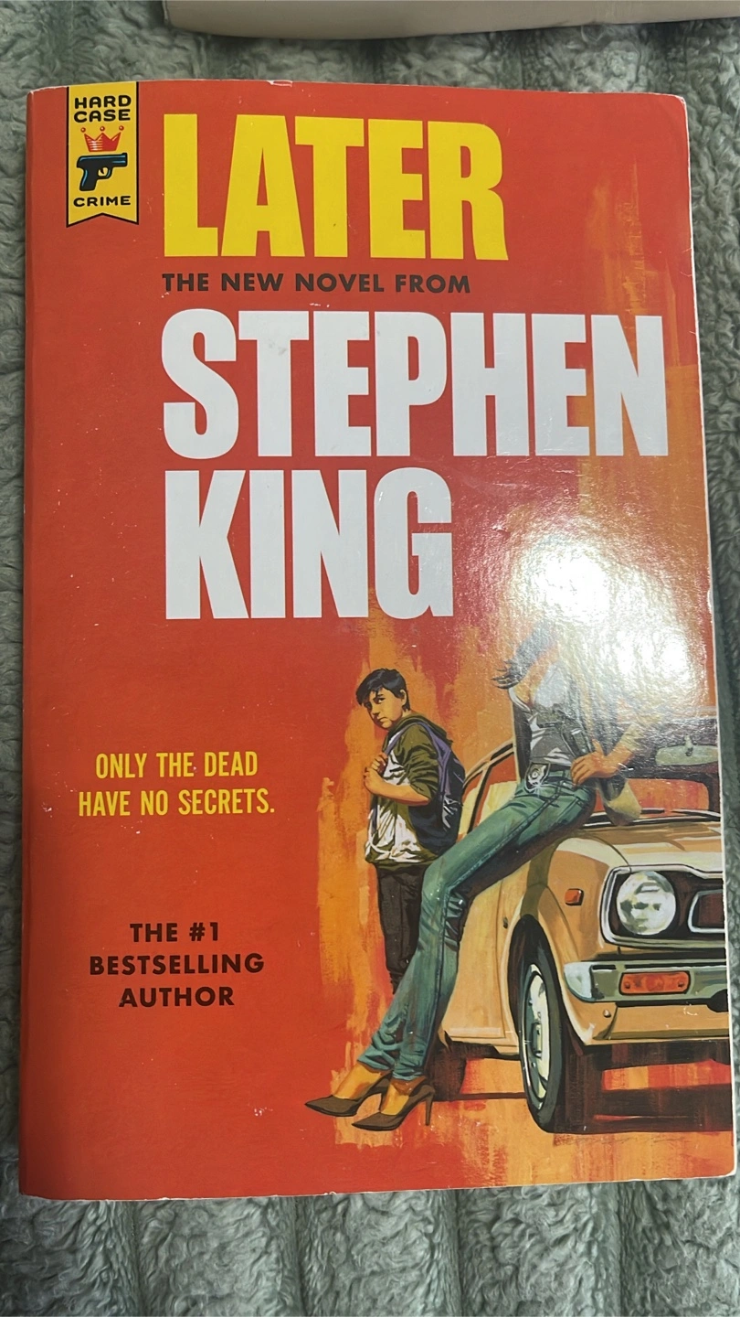 Paperback copy of Stephen King's Later. Hard Case Crime edition. Features artwork and tagline: Only the dead have no secrets.