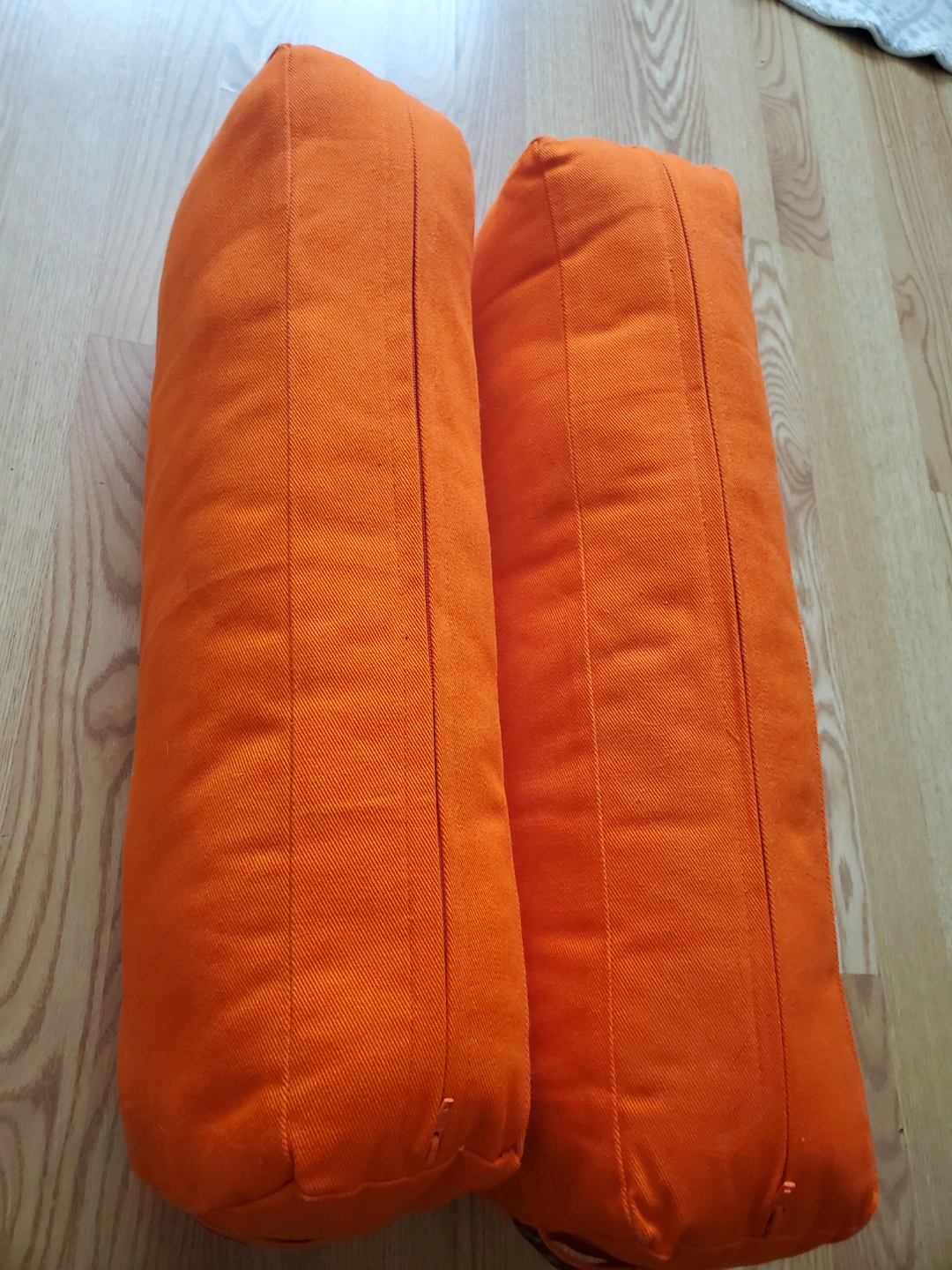Yogavni Orange rectangular yoga bolster with cotton cover. Zipper closure. Like new. Great for yoga and meditation, yoga teachers. 22"x8x5 2 available, $30 each Cawthra and Lakeshore mississauga. Cash only