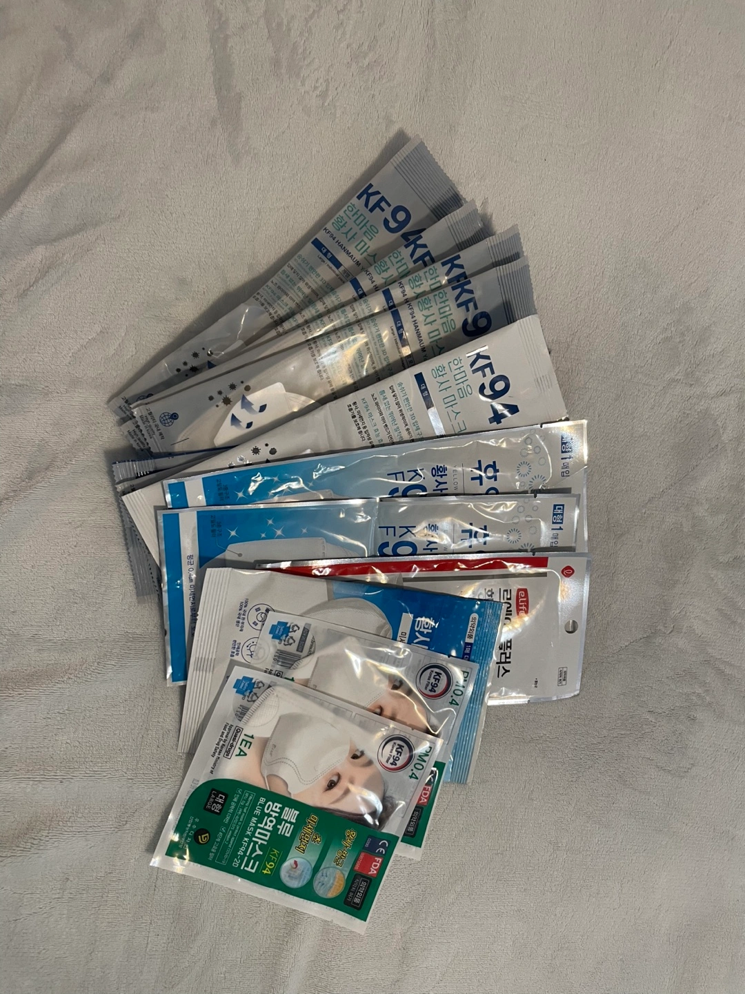 Large quantity of KF94 face masks. Individual packages. Mix of brands and styles. Great for personal use