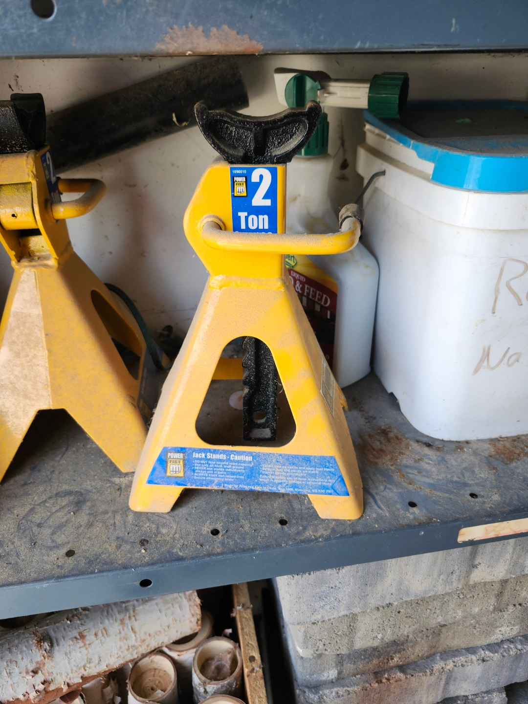 Set of four yellow Powerbuilt 3-ton jack stands. Good for automotive repair. Used condition. Best offer Sarah 647 338 7177