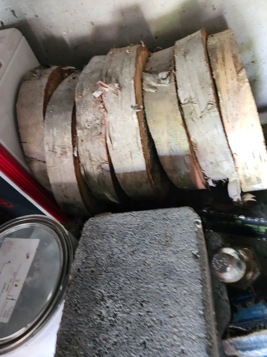 Seven wood slices, various sizes and thicknesses. Some bark remains. One slice has a screw through the centre. Great for crafts or decor. Sold as is. BIRCH SLICES LOT 50.00 BEST OFFER SARAH 647 338 7177