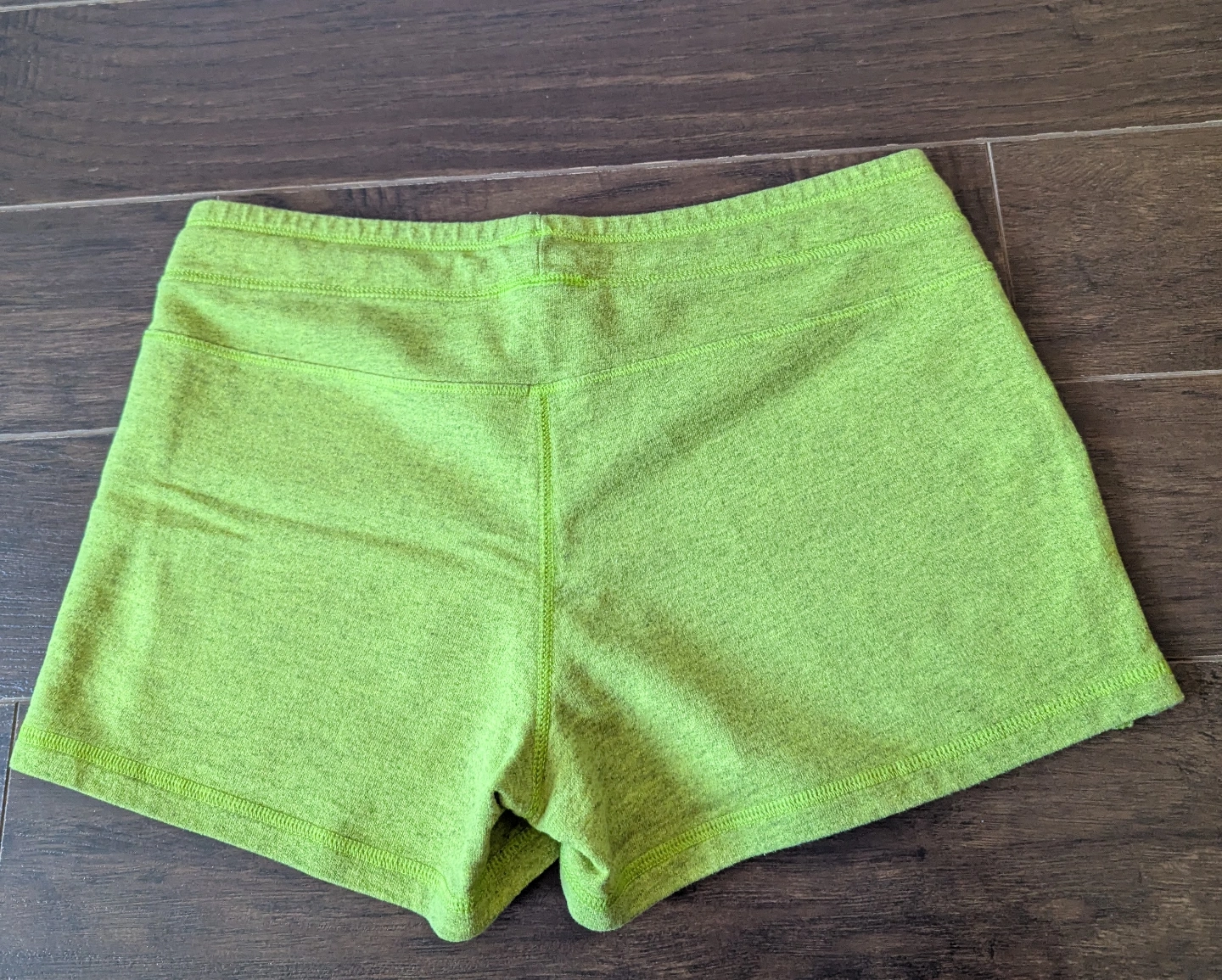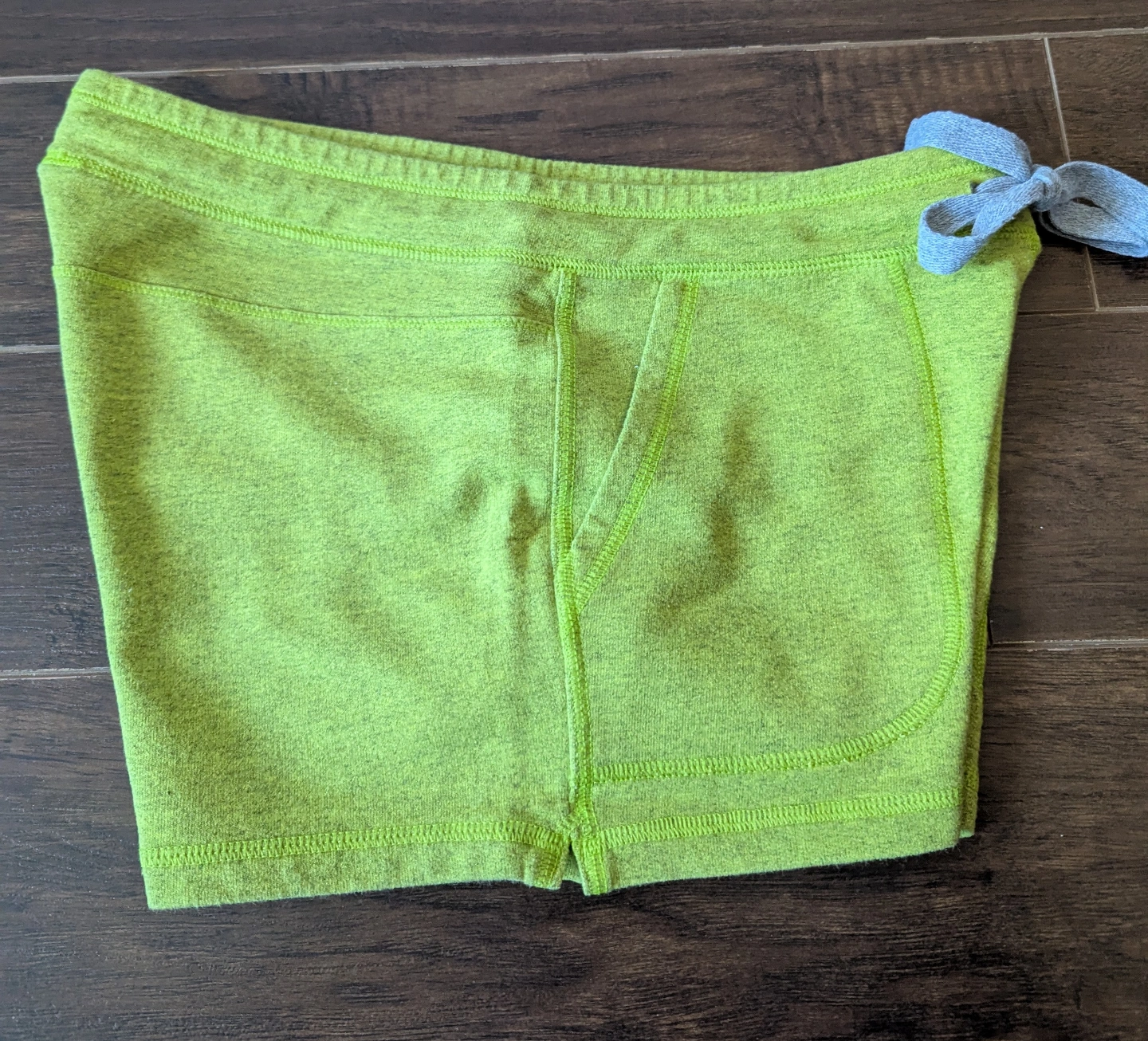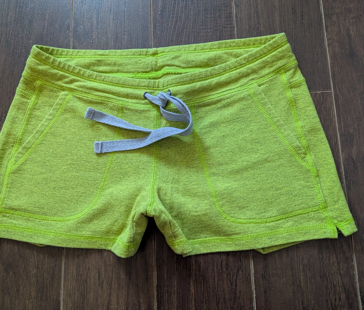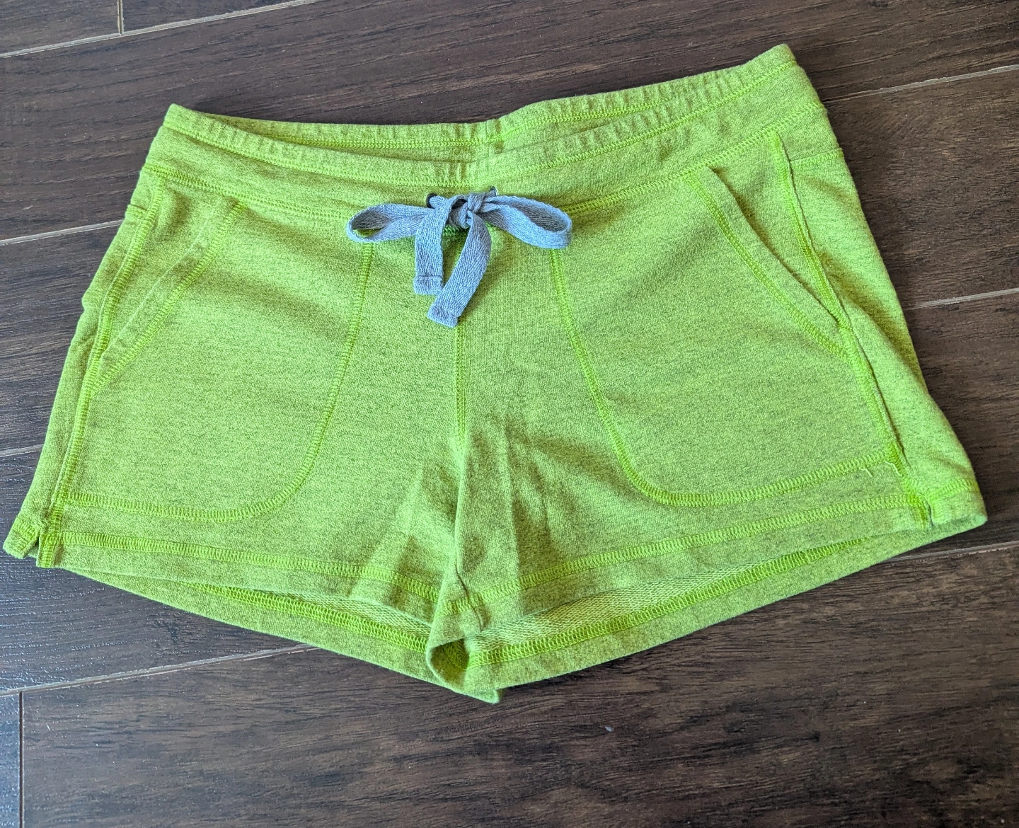 Women's size smay shorts. Lime green colour. Drawstring waist. Two pockets. 70% cotton, 30% polyester.