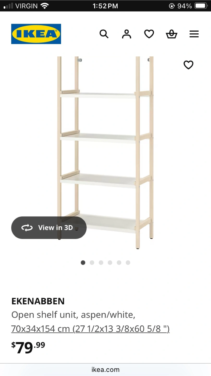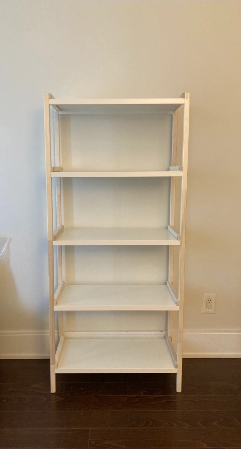 I’m selling this IKEA shelf that I purchased in January this year. It’s in a very good condition. Four-shelf unit. Aspen and white colour. Original product link: https://www.ikea.com/ca/en/p/ekenabben-open-shelf-unit-aspen-white-80487813/ Assembled.