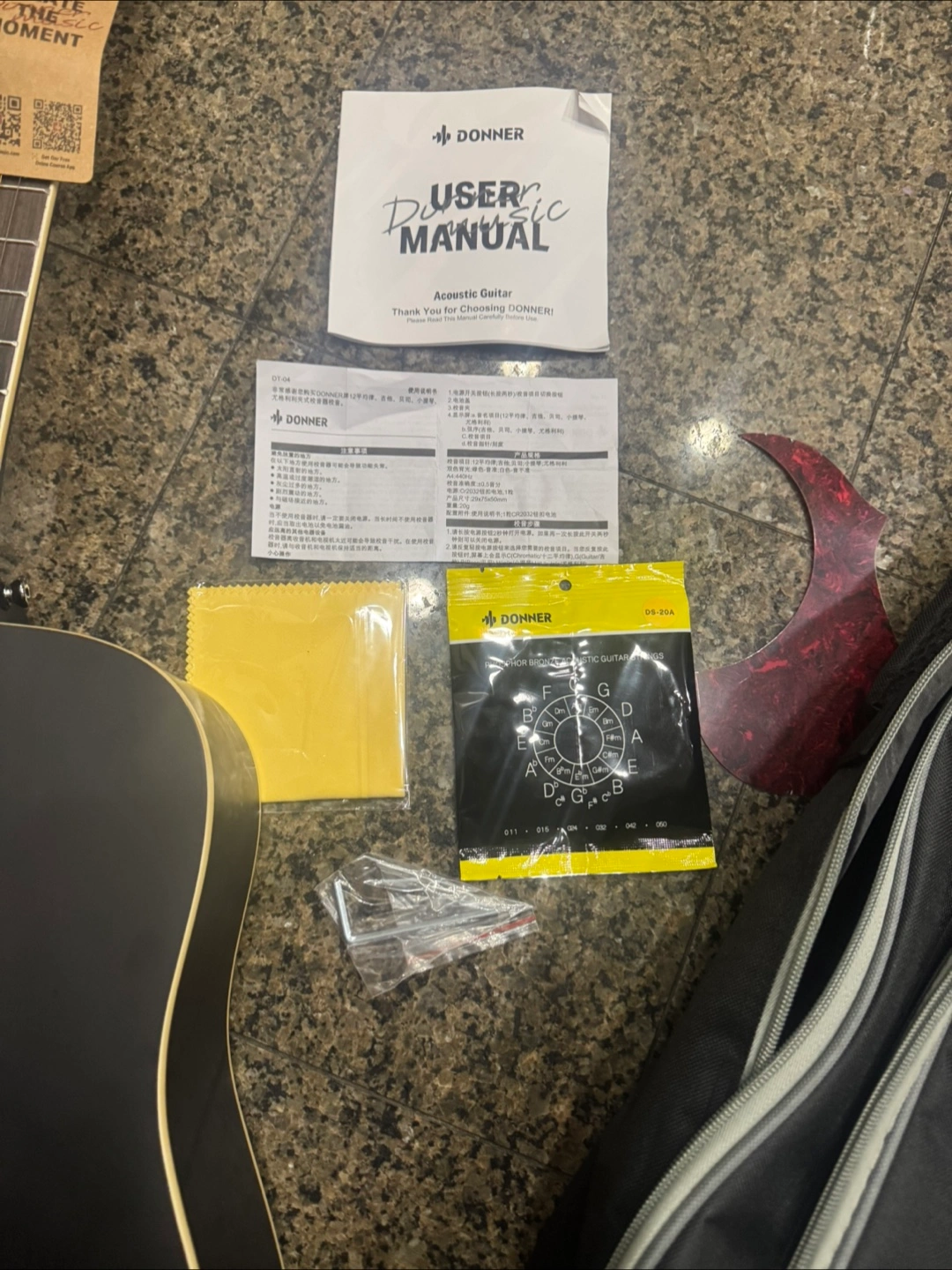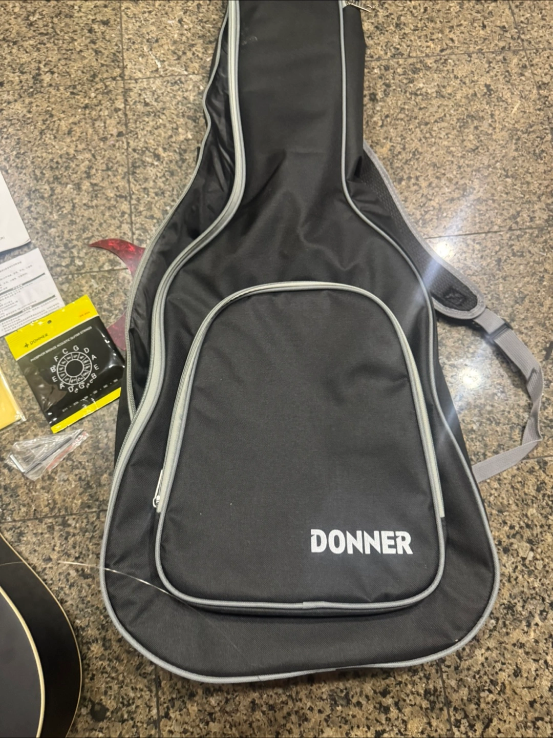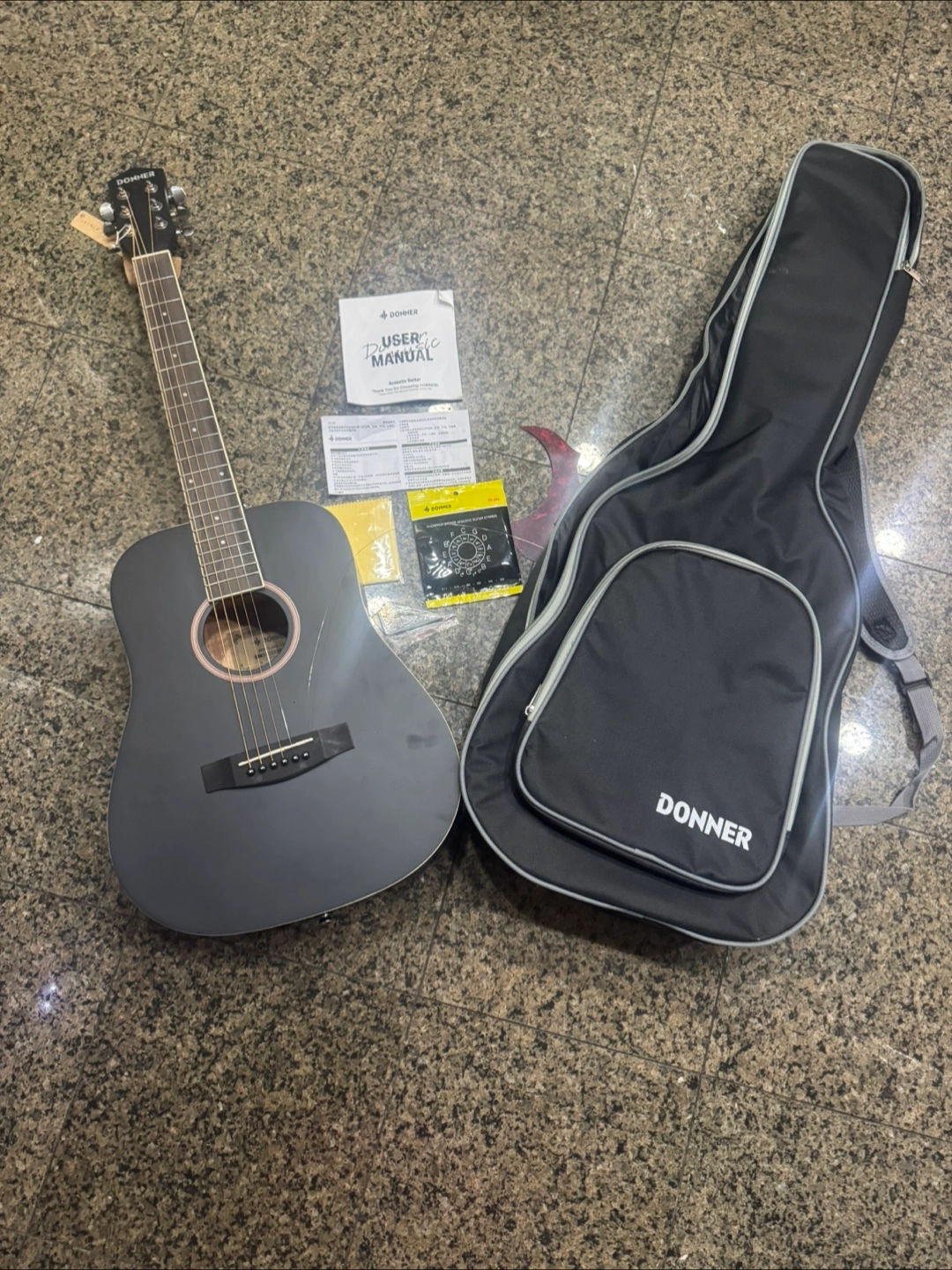 Black acoustic guitar. Includes gig bag, extra strings, and user manual. Great for beginners. New- one string needs replacing and package includes strings Pick up NE Marlborough See my other ads