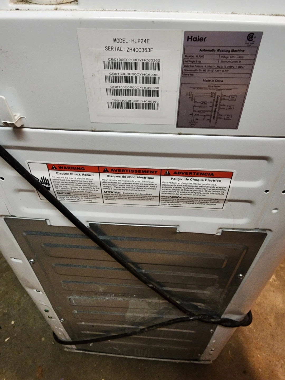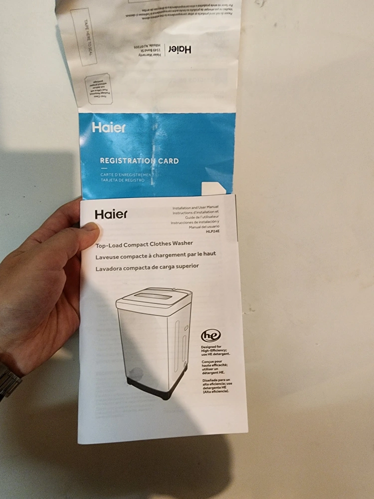 Compact automatic washing machine. Good for small spaces. Includes hoses. Model HL-P24E. Pre-owned. Takes cold water only. cycle may sometimes pause during rinse/spin phase and require manual input.