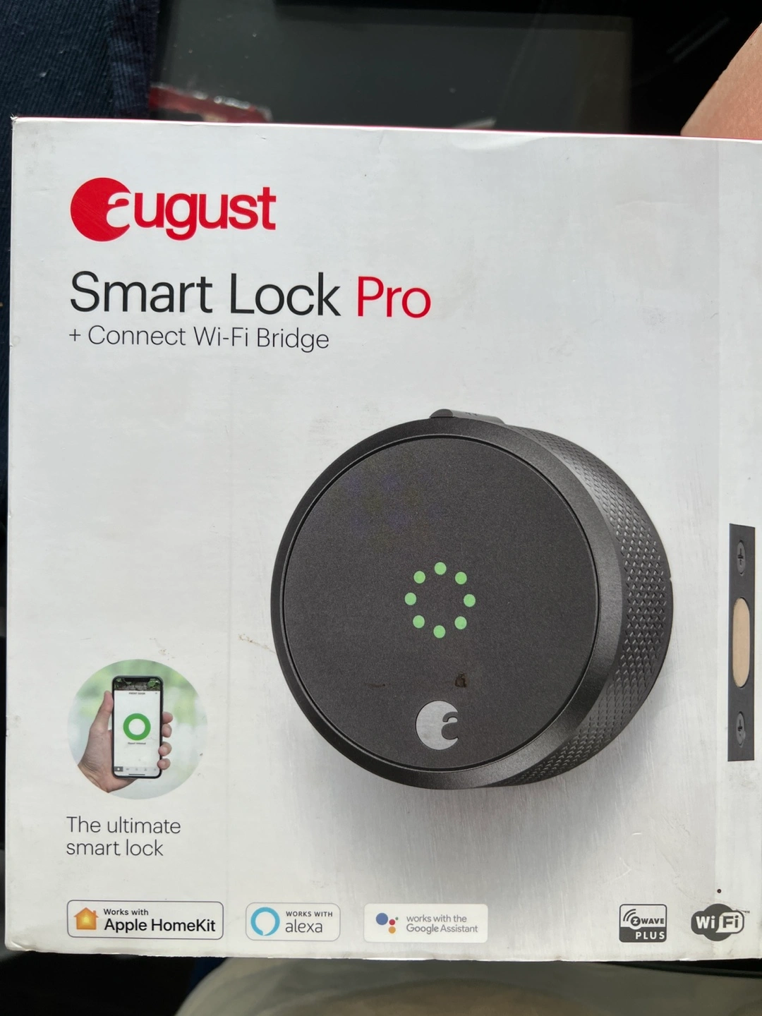 Like New August Smart Lock Pro. Includes Connect Wi-Fi Bridge. Works with Apple HomeKit, Alexa, and Google Assistant. Smart home compatible. Slightly used. Pick up only