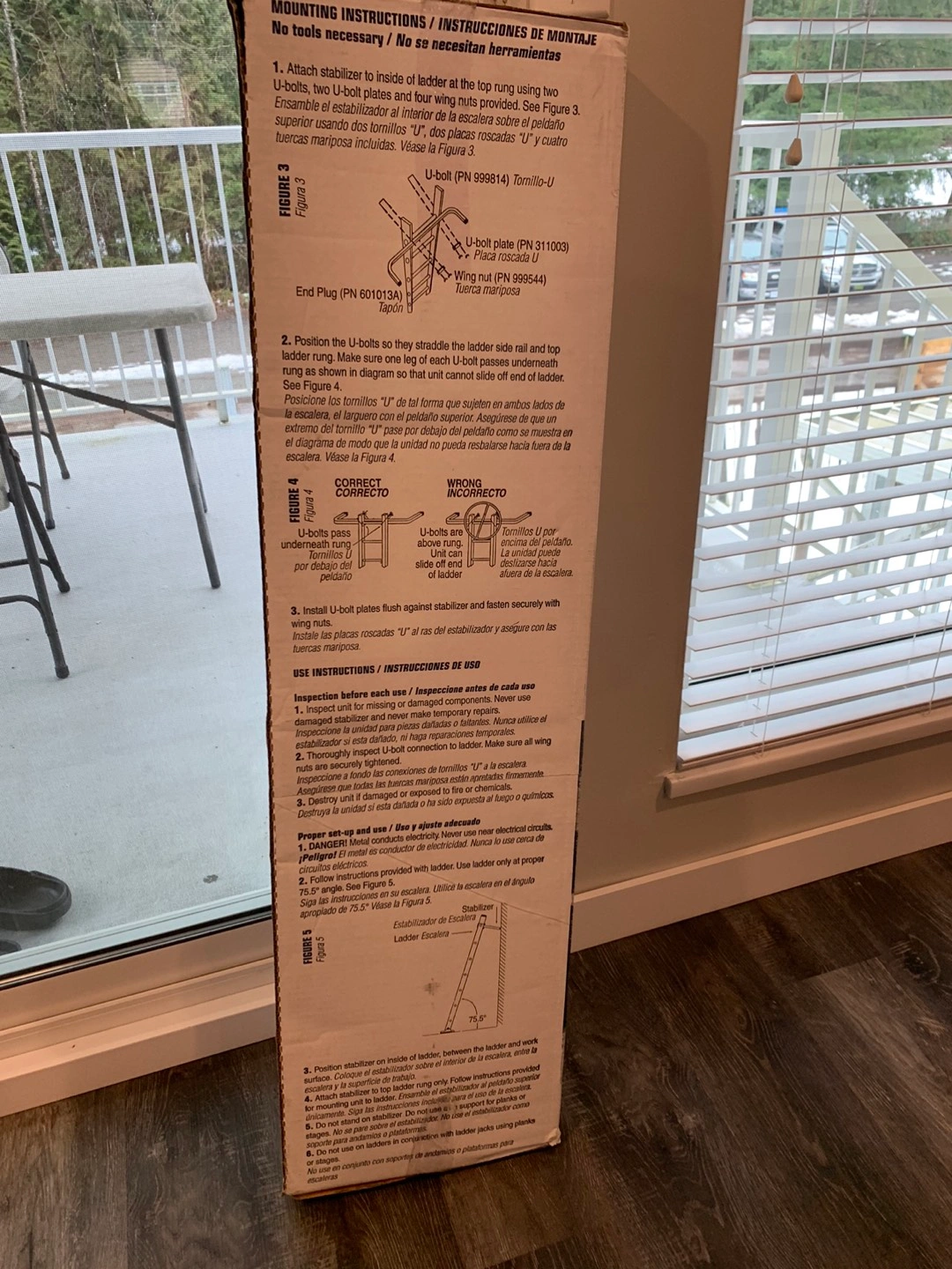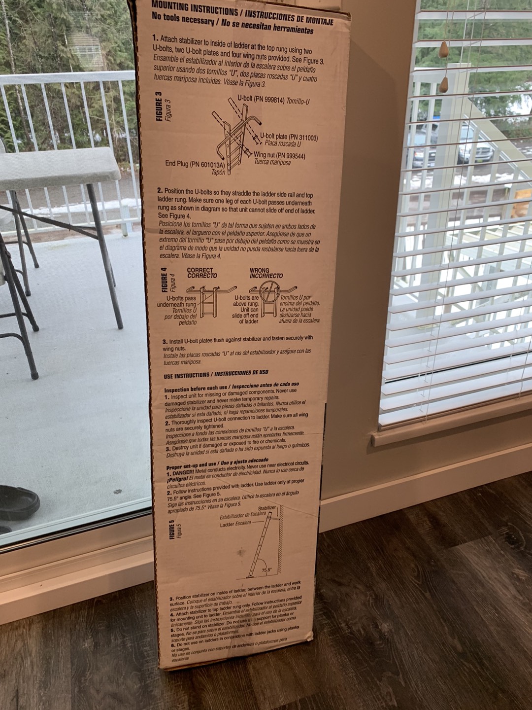 Ladder stabilizer Up 4” x 1 3/4” Never used, still in box