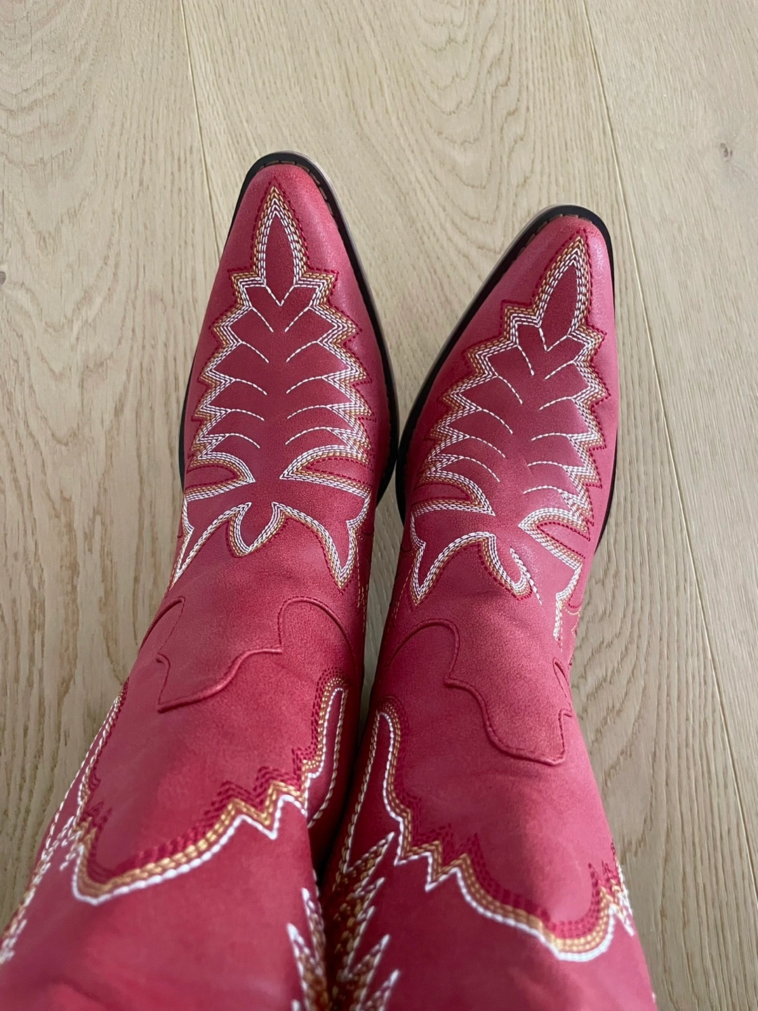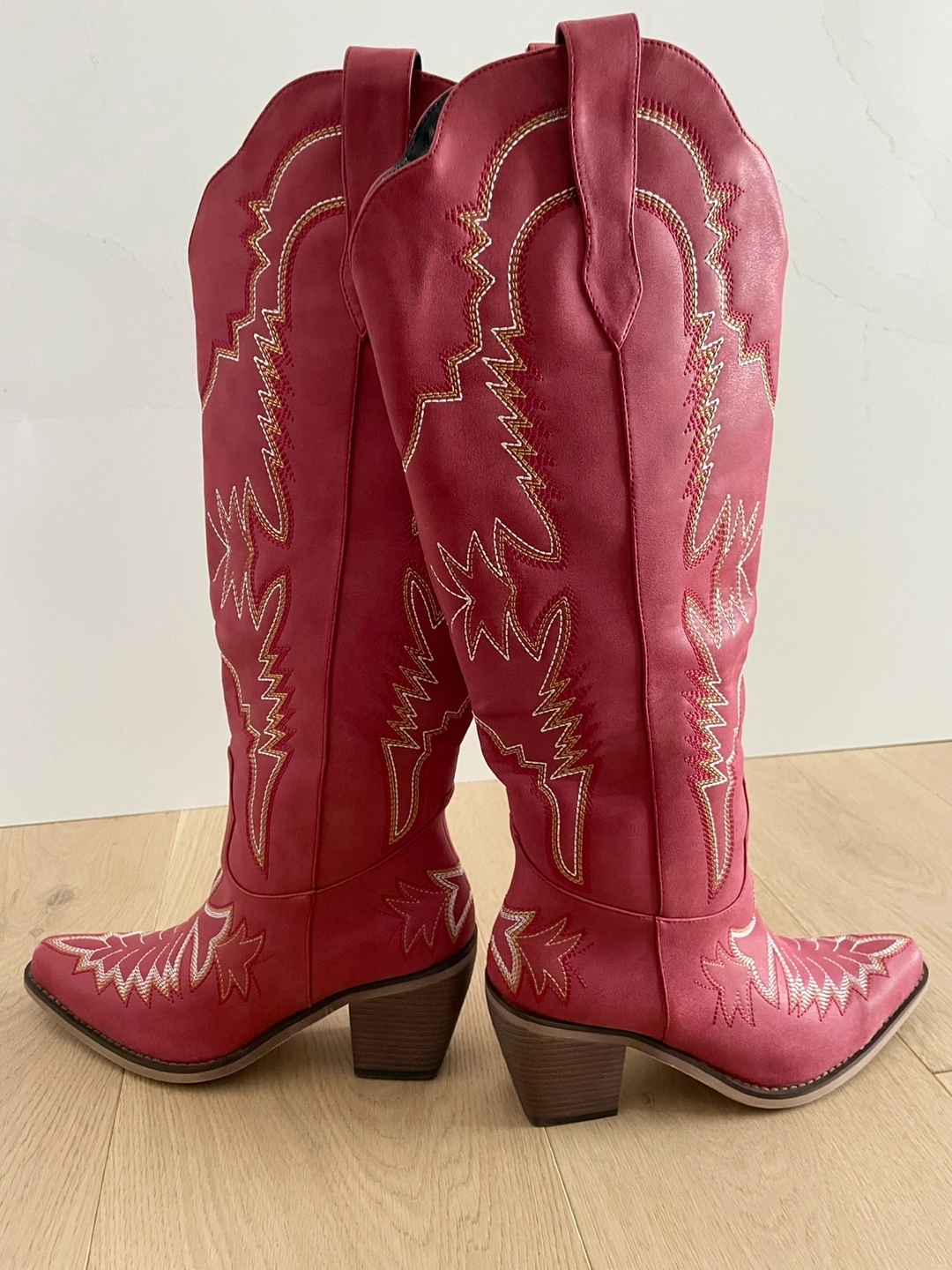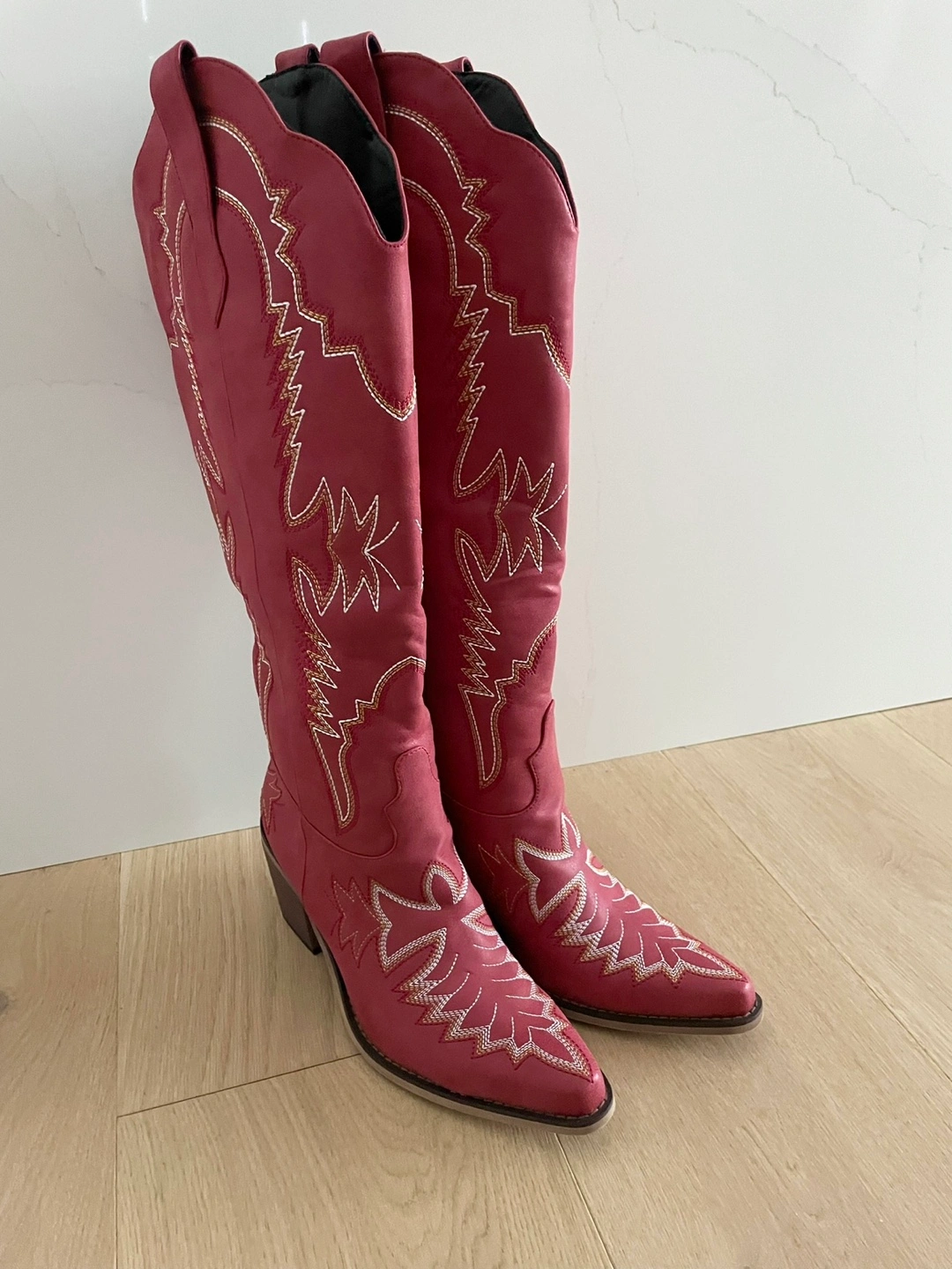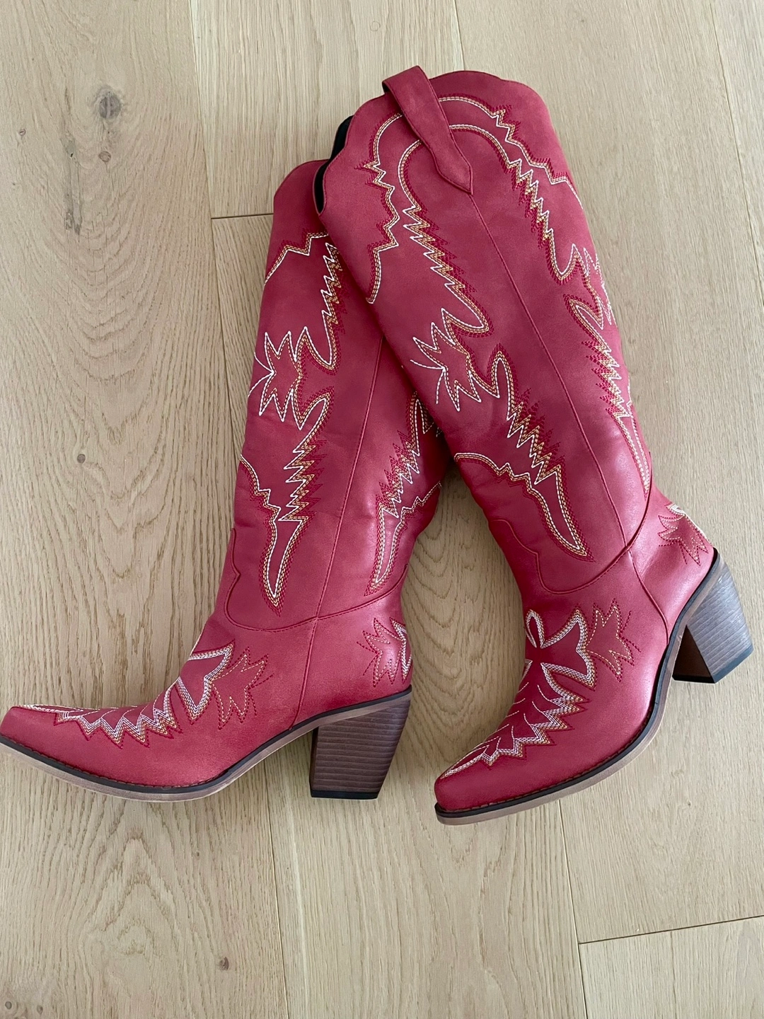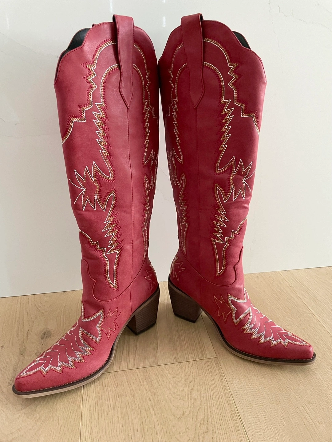 Women’s Vegan Cowboy Boots by WetKiss. Long Length. Light Red. Size 9. New! $40 firm.
