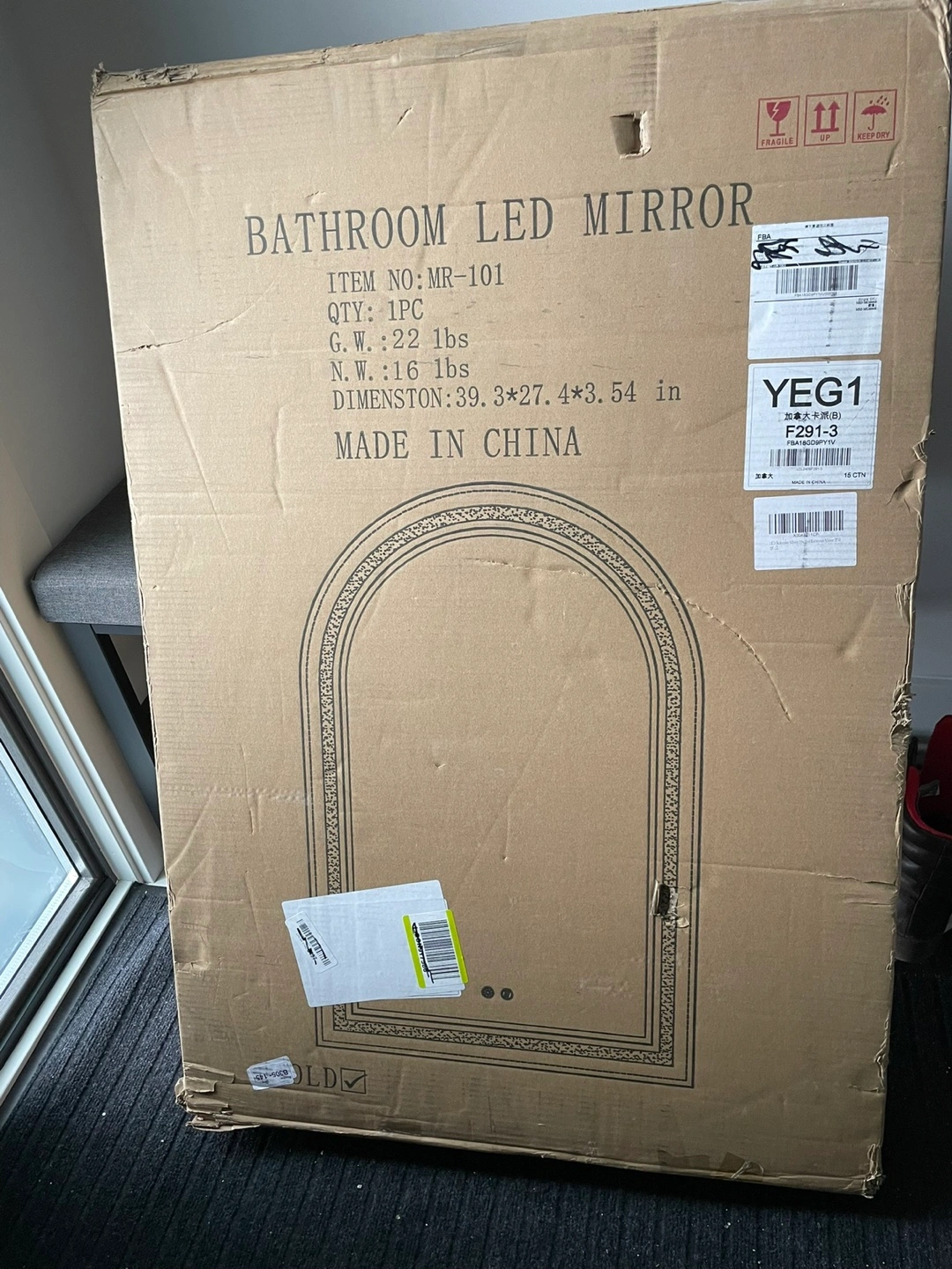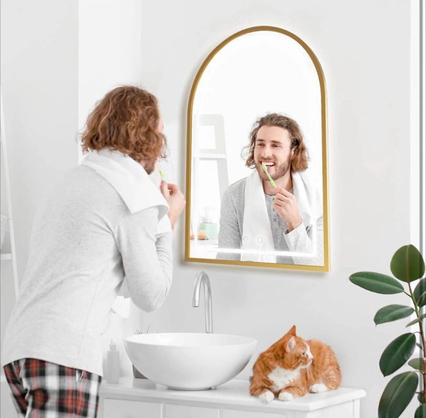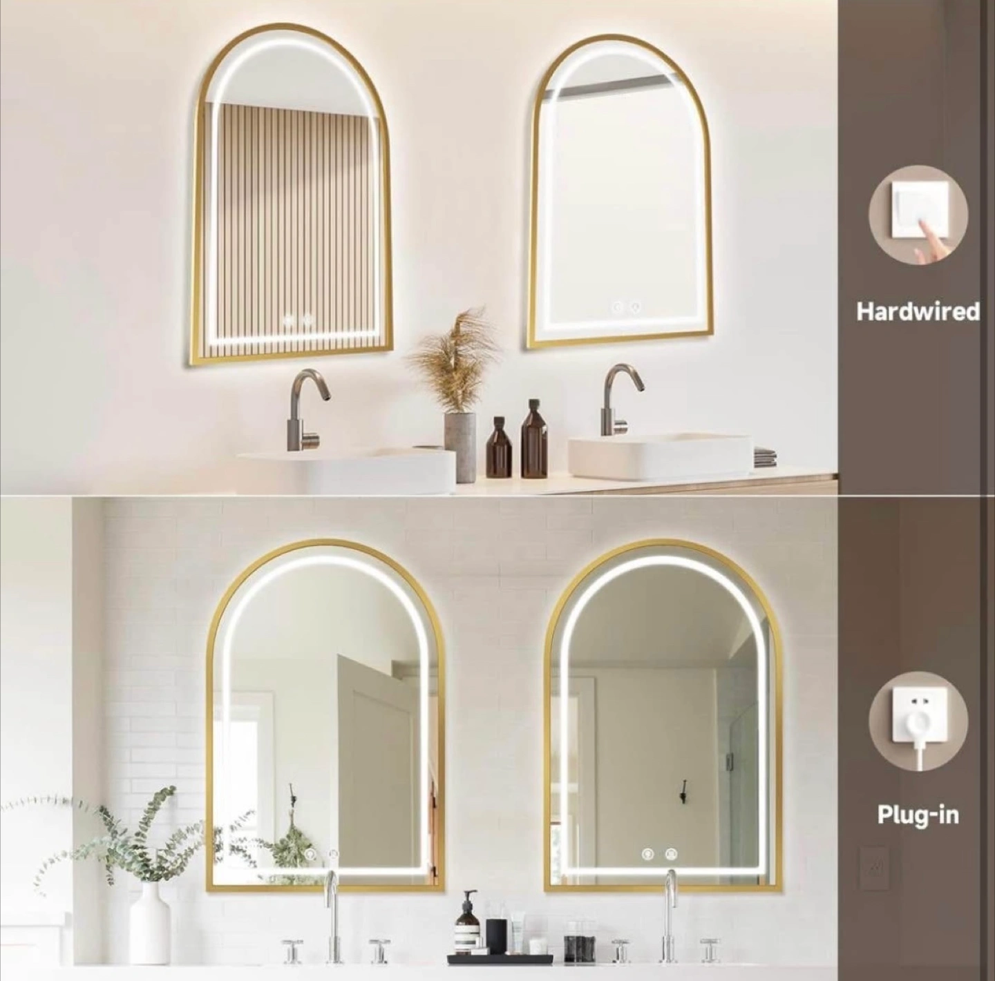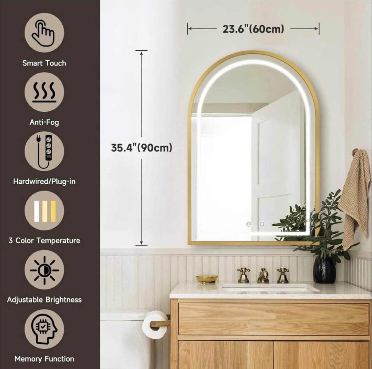Gold Metal Arch LED Mirror 24x36” with 3 Colour Temperatures & Anti-Fog. New in Box ! $110