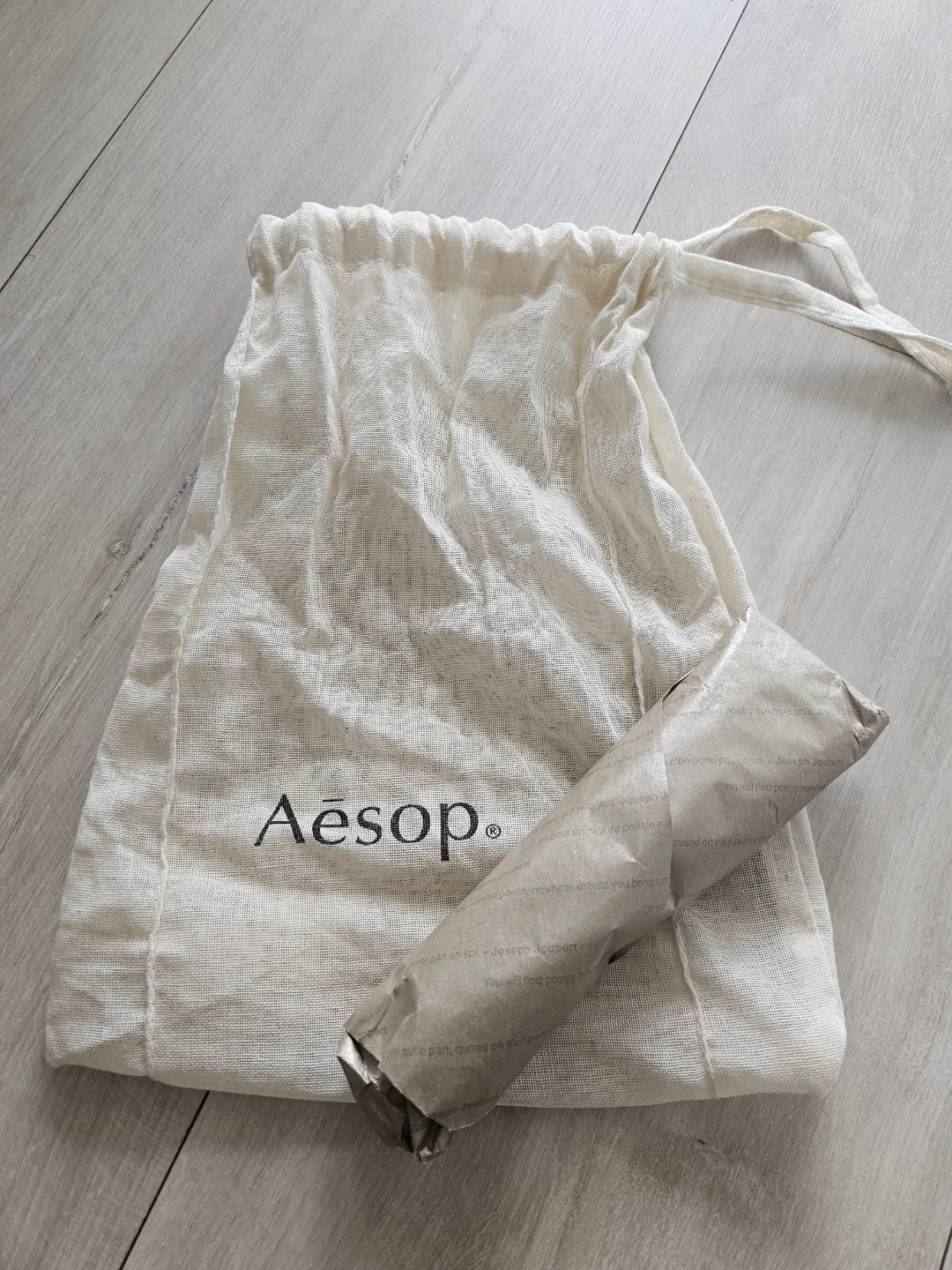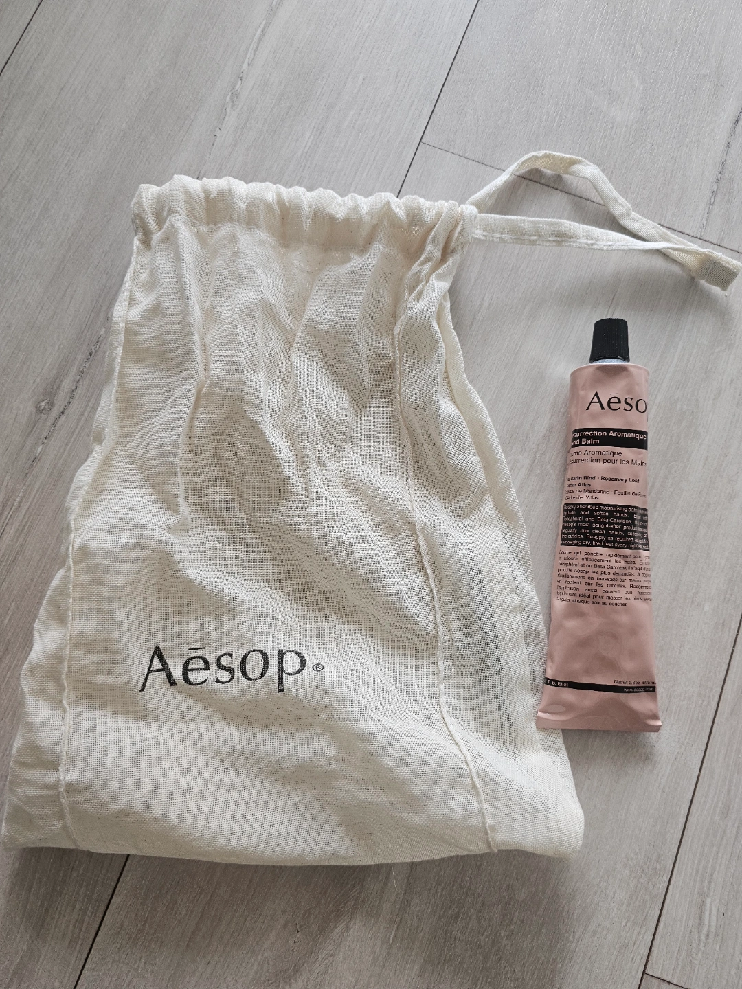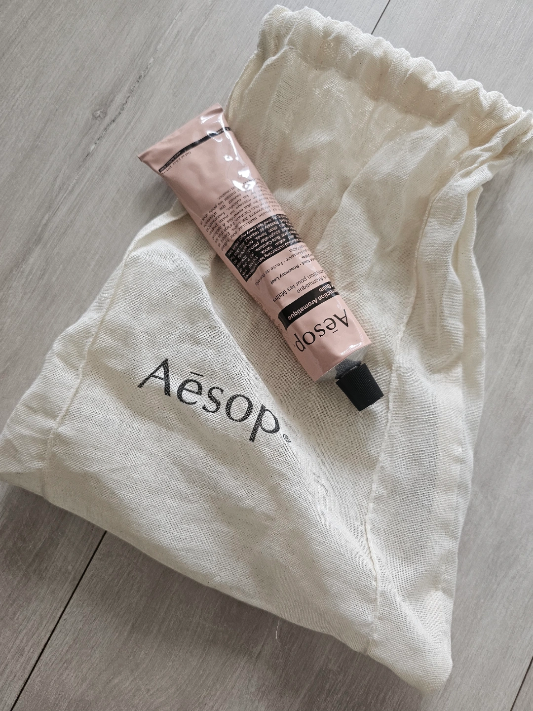 Aesop hand balm in a reusable cotton bag. 75ml tube. Perfect for moisturizing dry hands and cuticles. unused hand balm + cotton pouch