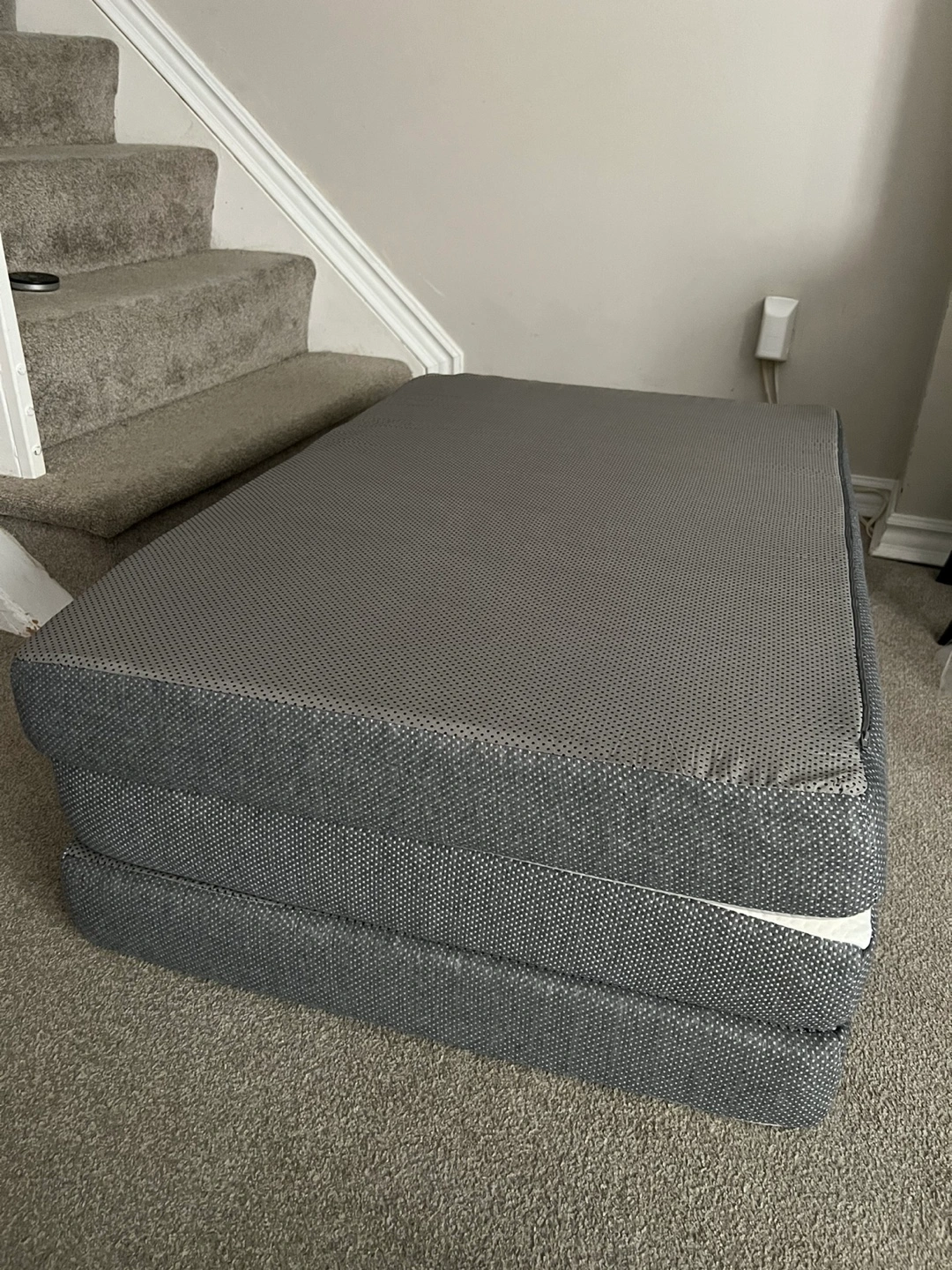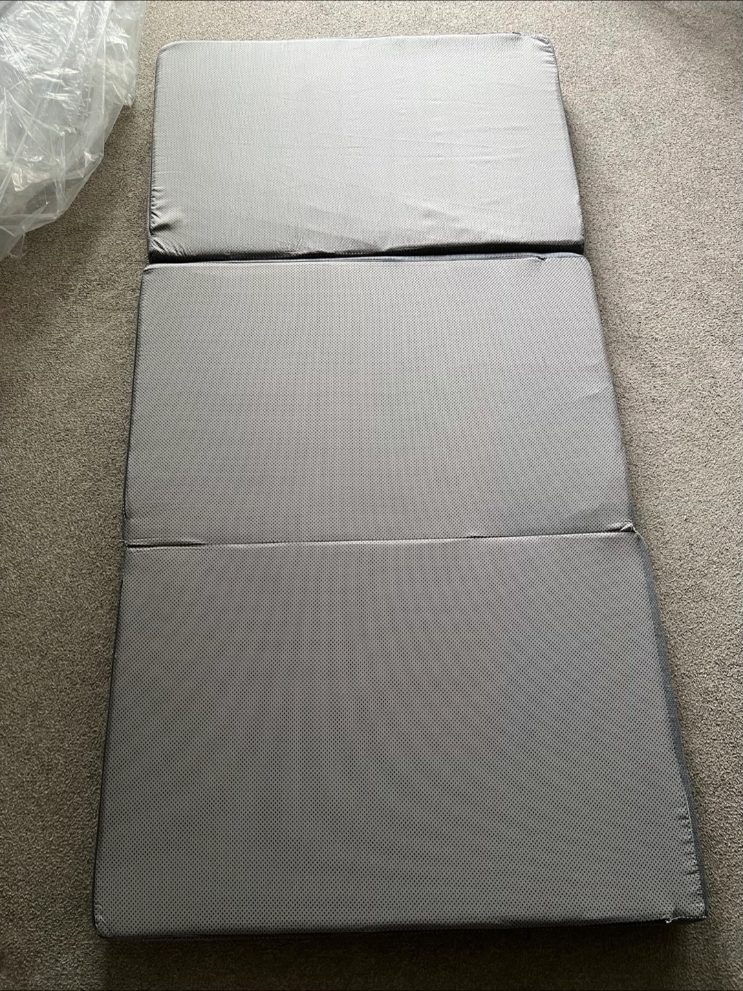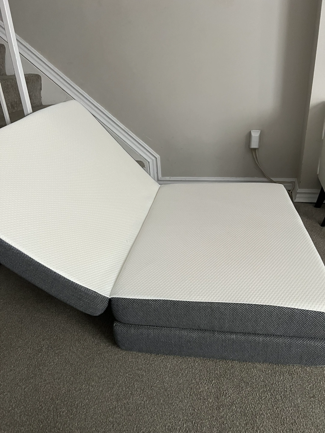 NEW Folding Twin XL Mattress, 4” Grey Description: NEW 4-Inch for Camping, or Guest Bed or RV, tri-fold design! Key Features: Tri folding mattress Memoryfoam support Protective Lining Knitted Cotton design Easy carry and storage Price: $115 Local Pickup in Westmount Delivery & Shipping Available — FURMA525