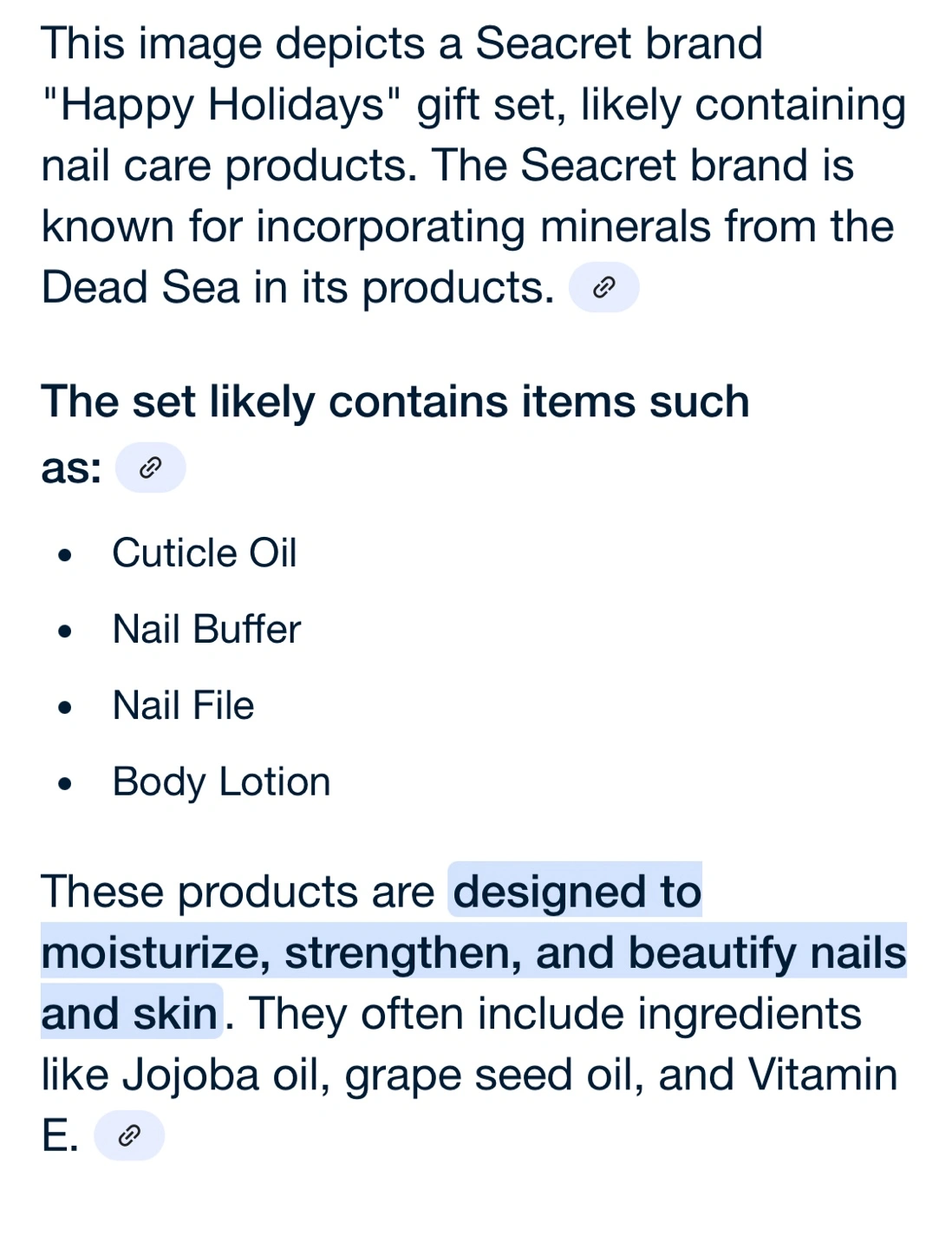 New, unopened Seacret Spa in a Bag. Includes cuticle oil, nail file, buffer block, and body lotion. Perfect gift for the holidays. All skin types.
