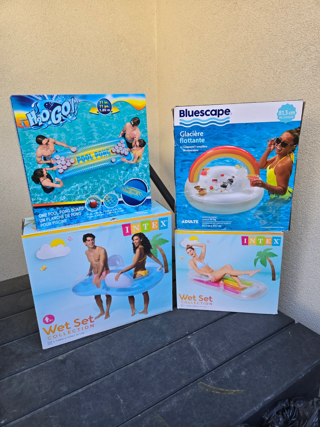 4 brand new pool inflatable floaties. Price is firm Pick up near 22nd skytrain new west
