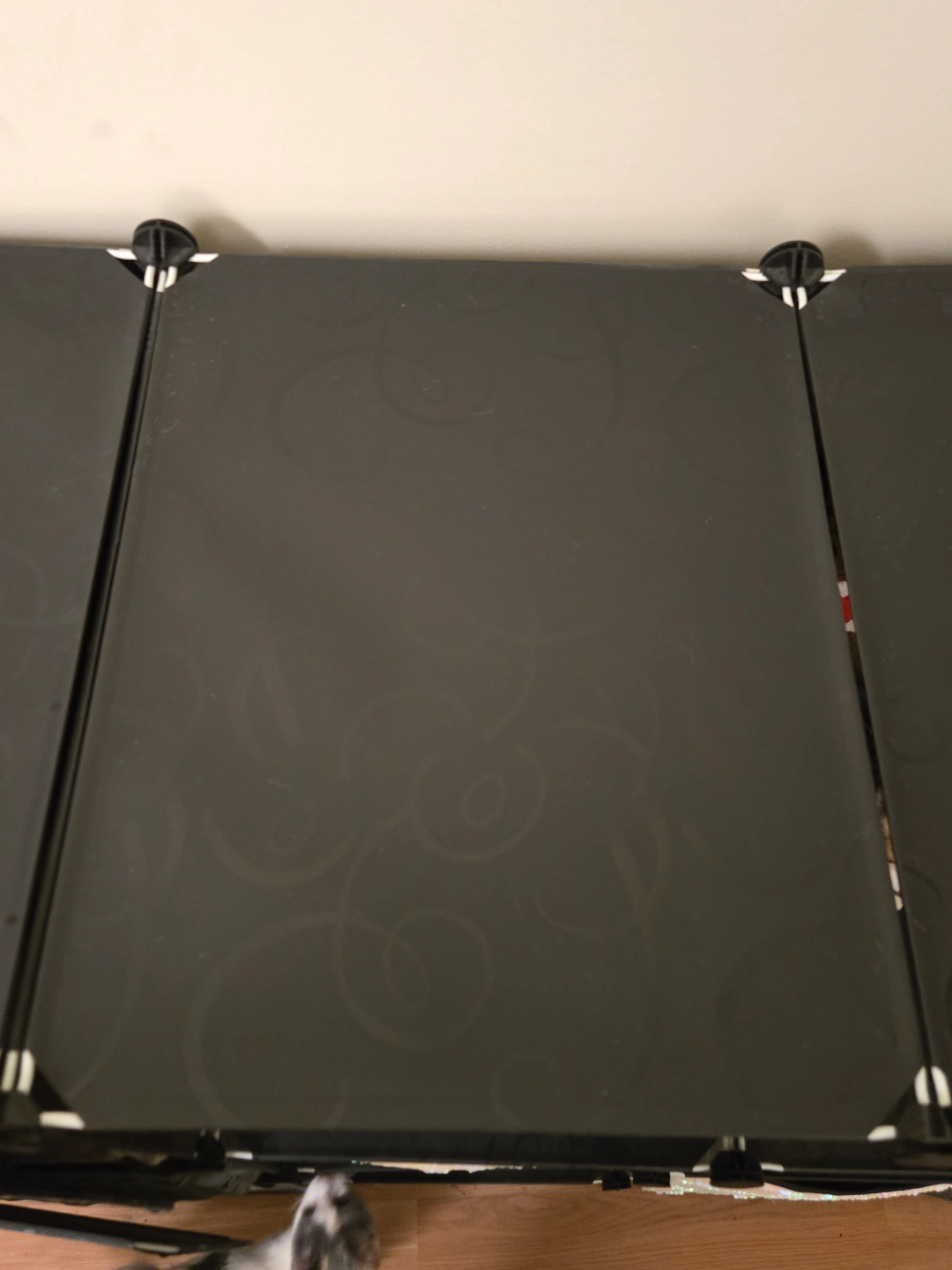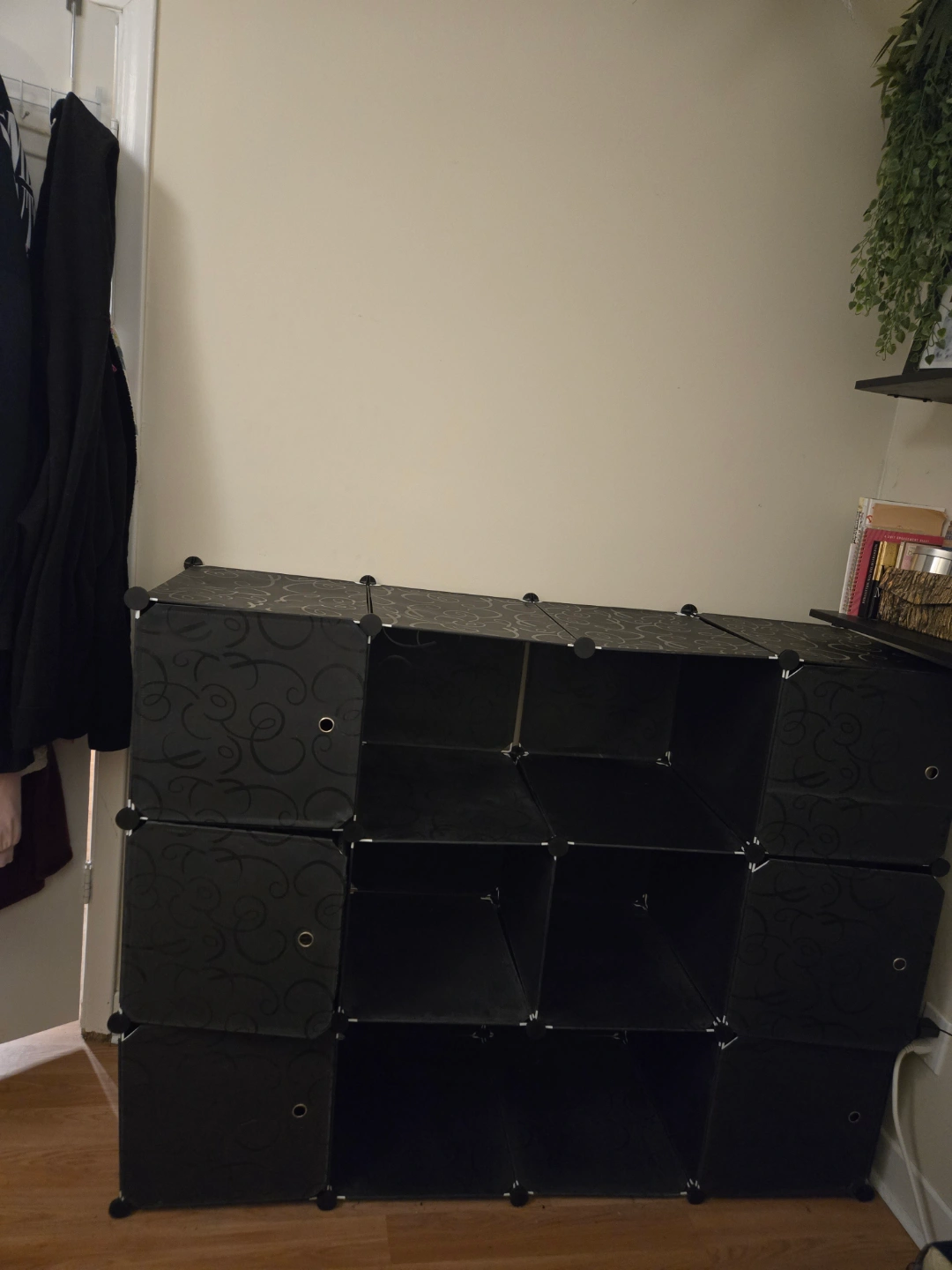 This set of panels and connectors is fully customizable into any configuration of cubes for storage Comes with enough panels and connectors to build 12 small cubes (as shown) or leave divider panels out to create larger storage sections. Includes 6 optional doors that swing open. Has been disassembled and panels are ready to carry home in a bag! Easy to transport storage solution! No tools necessary to reassemble, connectors simply click the panels together