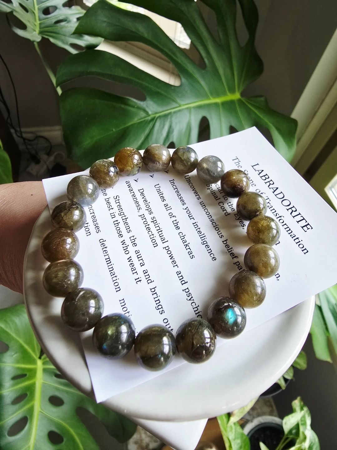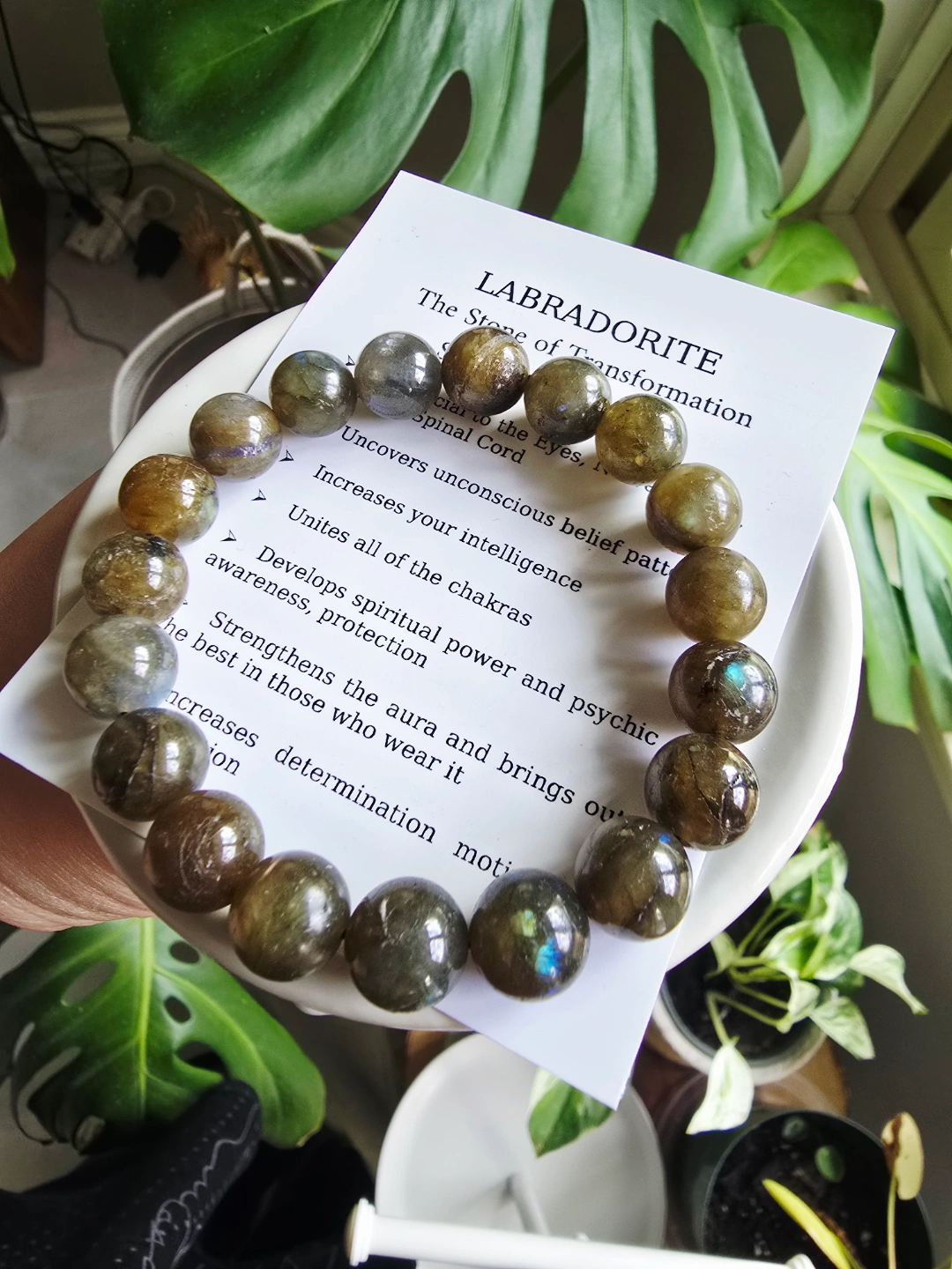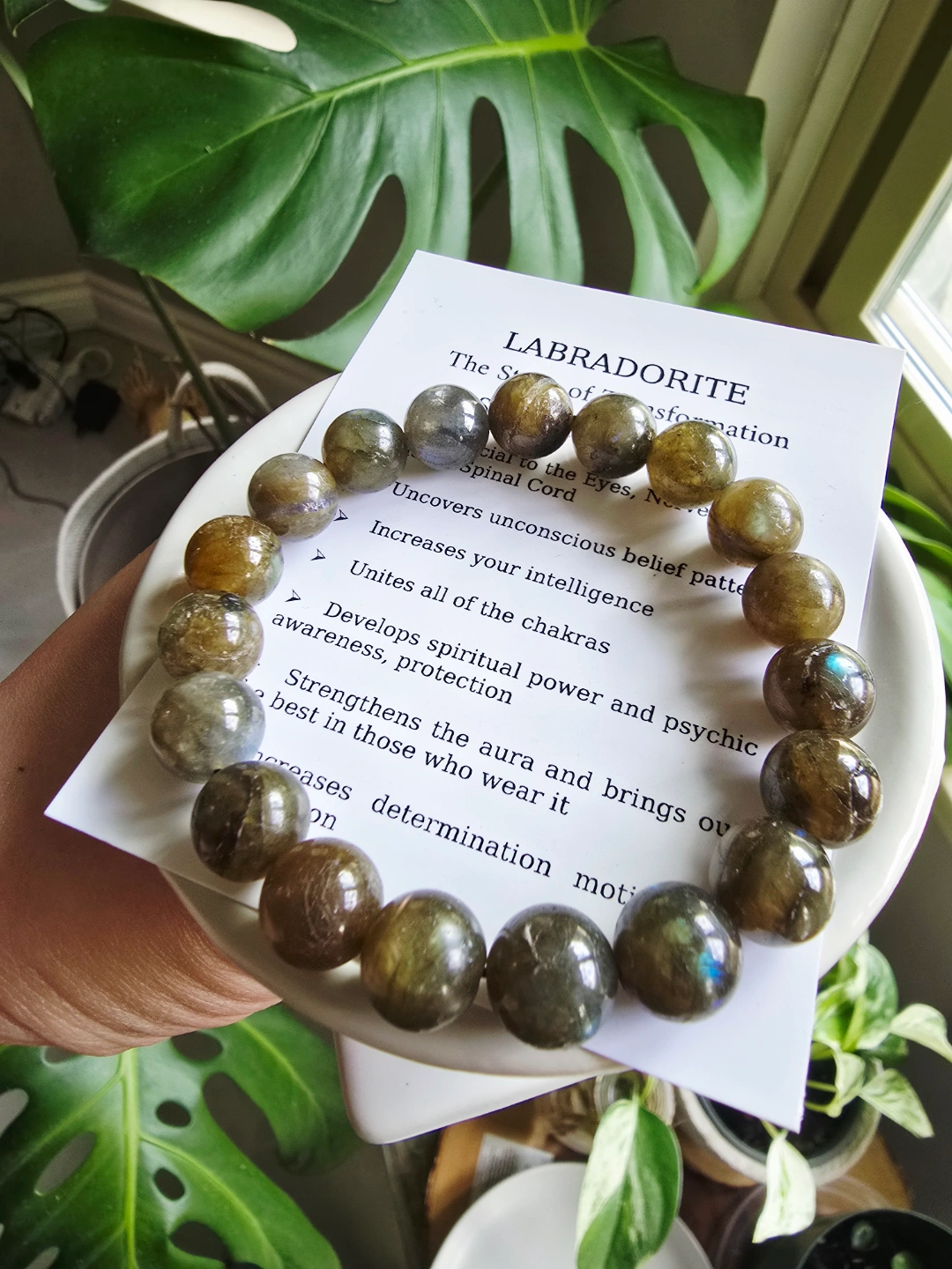 10mm round Labradorite natural gemstone bracelet. All Genuine. Detail on description. Shape of stone: 10mm round. Available sizes: 6"-7.5" bracelet size. All sizes are approximated. We are selling gemstones jewelry since 2001. Stores closed. All items are new with tags and healing properties cards. Please allow at least 24 hours for me to check & pack your order(s), thank you. No Return. No Exchange. Serious Buyer Only. Half Price Cut Offer Will Be Ignored. No Holds Without Deposit. Pick up from Richmond Railway & Williams. Or send by Canada Post (extra fee). By CANADA POST (Extra fee for postage & packing): (a) Regular Post: +$3 (no tracking number, 3-5 business days) (b) Xpresspost: +$20 with tracking number, 1-2 business days) * Add signature: +$3 You can find my items posted here: https://www.facebook.com/marketplace/profile/897440322/?ref=permalink&mibextid=dXMIcH Nsnp home. Cross posted. Thank you for supporting me as Local Small Business. #gemstone #crystal #healing #bracelet #earrings #pendant #necklace #jewelryset #gift #powerfulstone