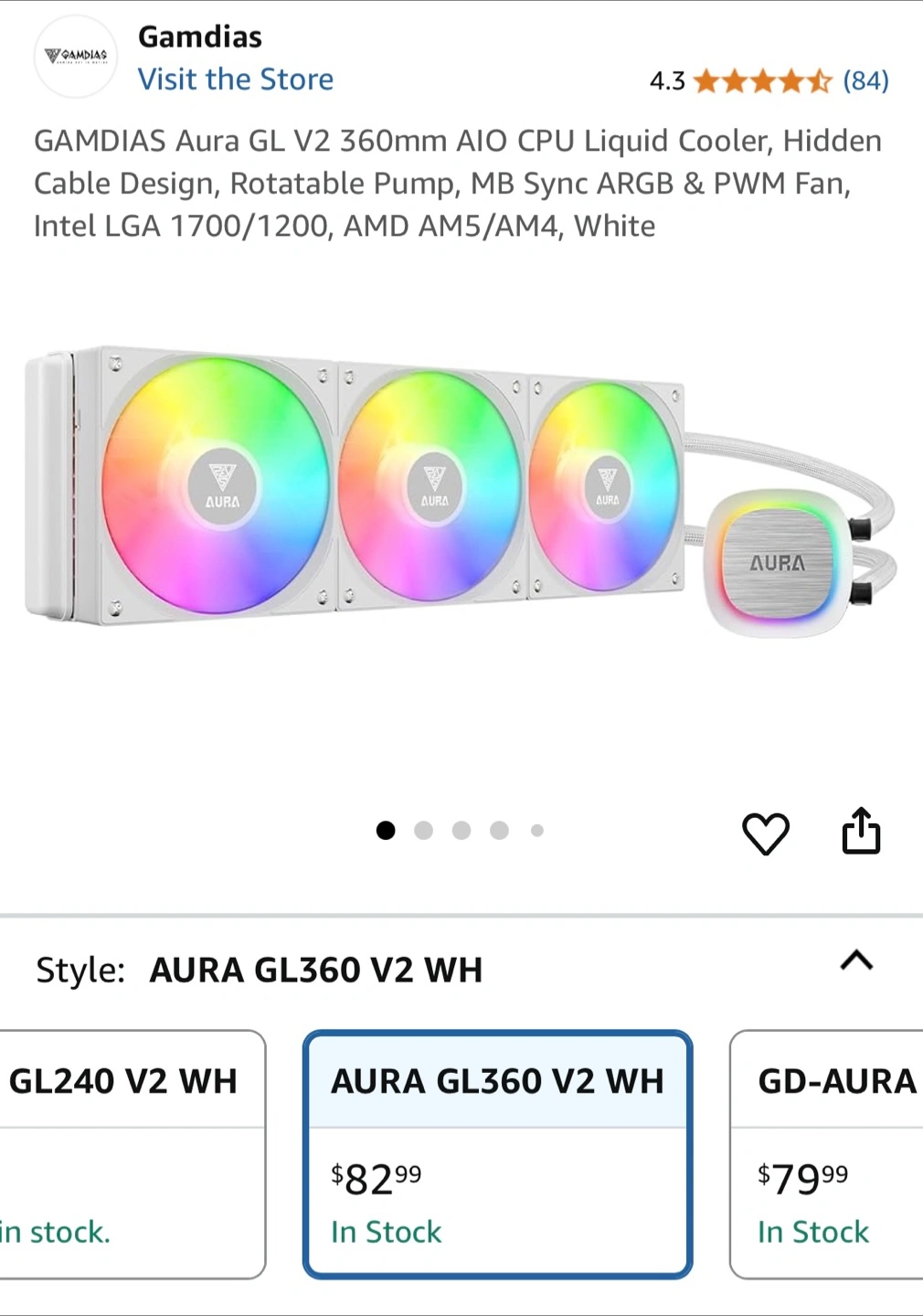 GAMDIAS Aura GL V2 360mm AIO CPU Liquid Cooler. White. Brand New in Box. Never Used. $65 Reg. Price $83 +HST