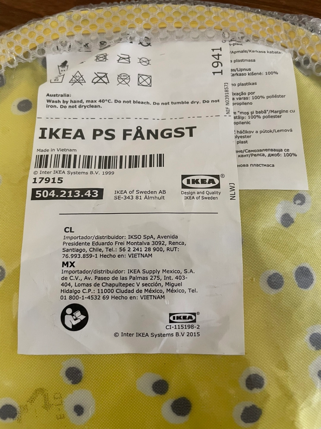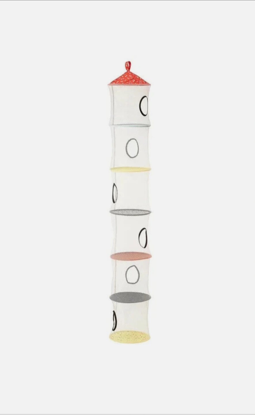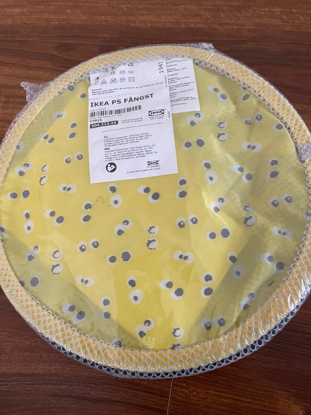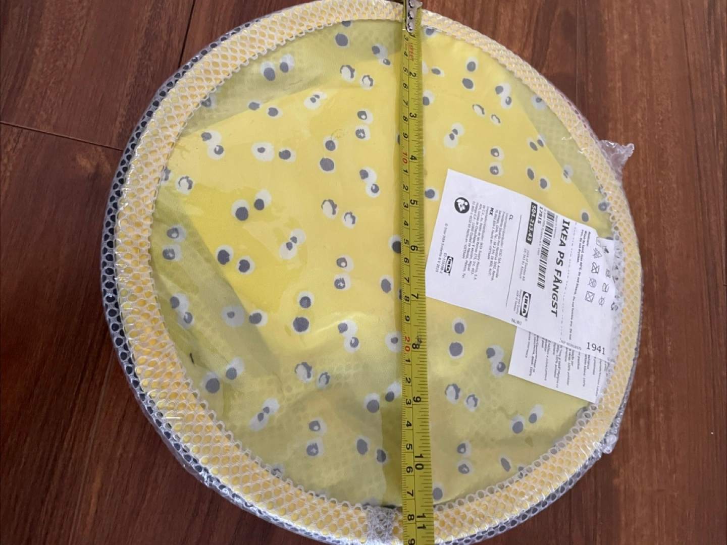 IKEA Foldable fabric storage basket. Yellow with grey and white polka dots. Brand new, still in packaging. Perfect for organizing toys, laundry, or other small items.