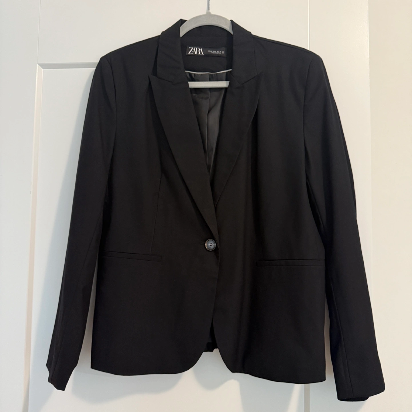 Women's black blazer from Zara Worn only once for less than 2 hours In perfect condition, practically new Size 12 Shoulder to shoulder 17" (43cm) Pit to pit 21" (53cm) Length 25" (63.5cm) Pick up in downtown Toronto