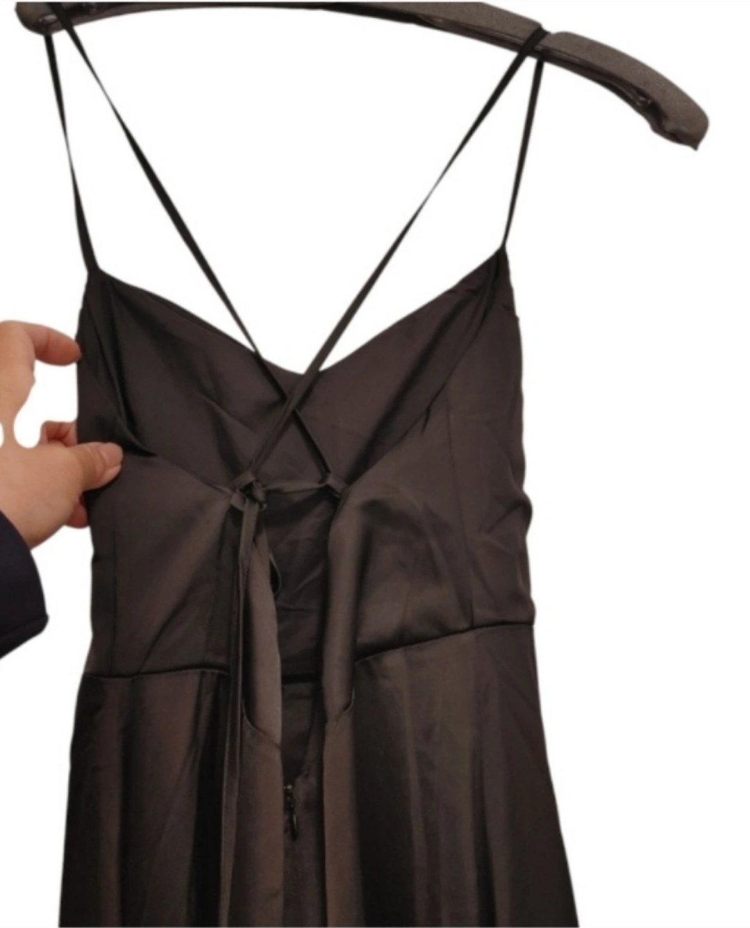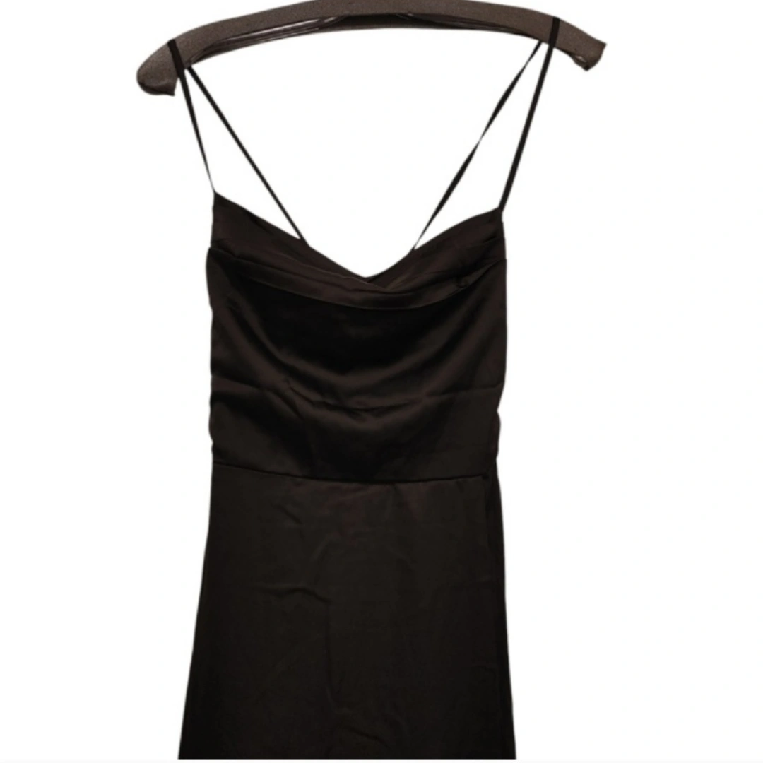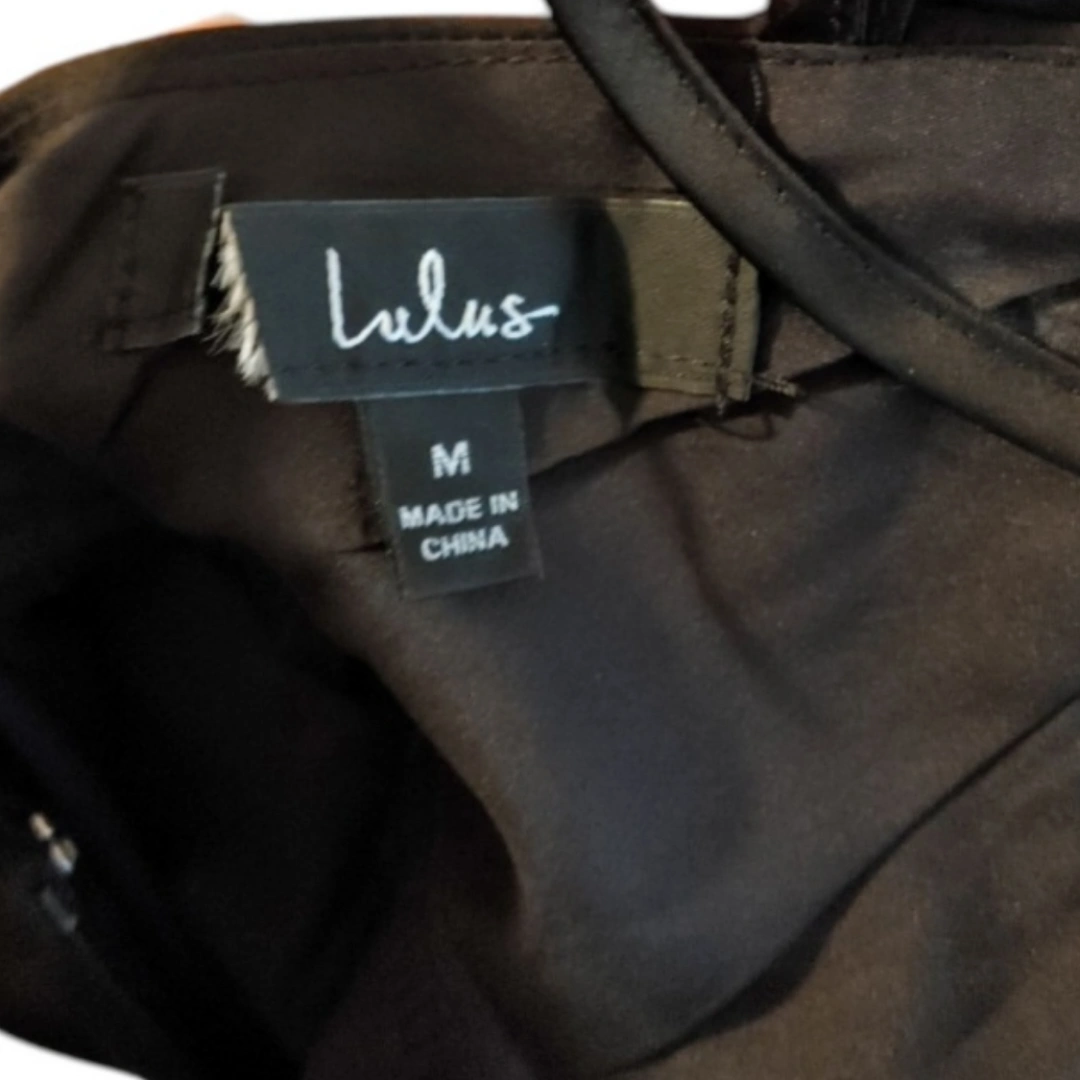 Lulus Black Satin Backless Lace Up Dress. Size Medium (Fits smaller; like a size 6.) Condition: New without tags! Purchased at a liquidation sale that is why the label is cut. Sleek satin shapes this gorgeous dress that has a sweetheart neckline with a pleated. Cowl-like detail, and a fitted bodice, all supported by long slender straps that lace up the open-back design. High, fitted waist sits atop an overlapping, A-line silhouette that forms a side slit as it falls to a sweeping maxi hem. Hidden back zipper/clasp. Shell: 95% Polyester, 5% Spandex. Lining: 95% Polyester, 5% Spandex.