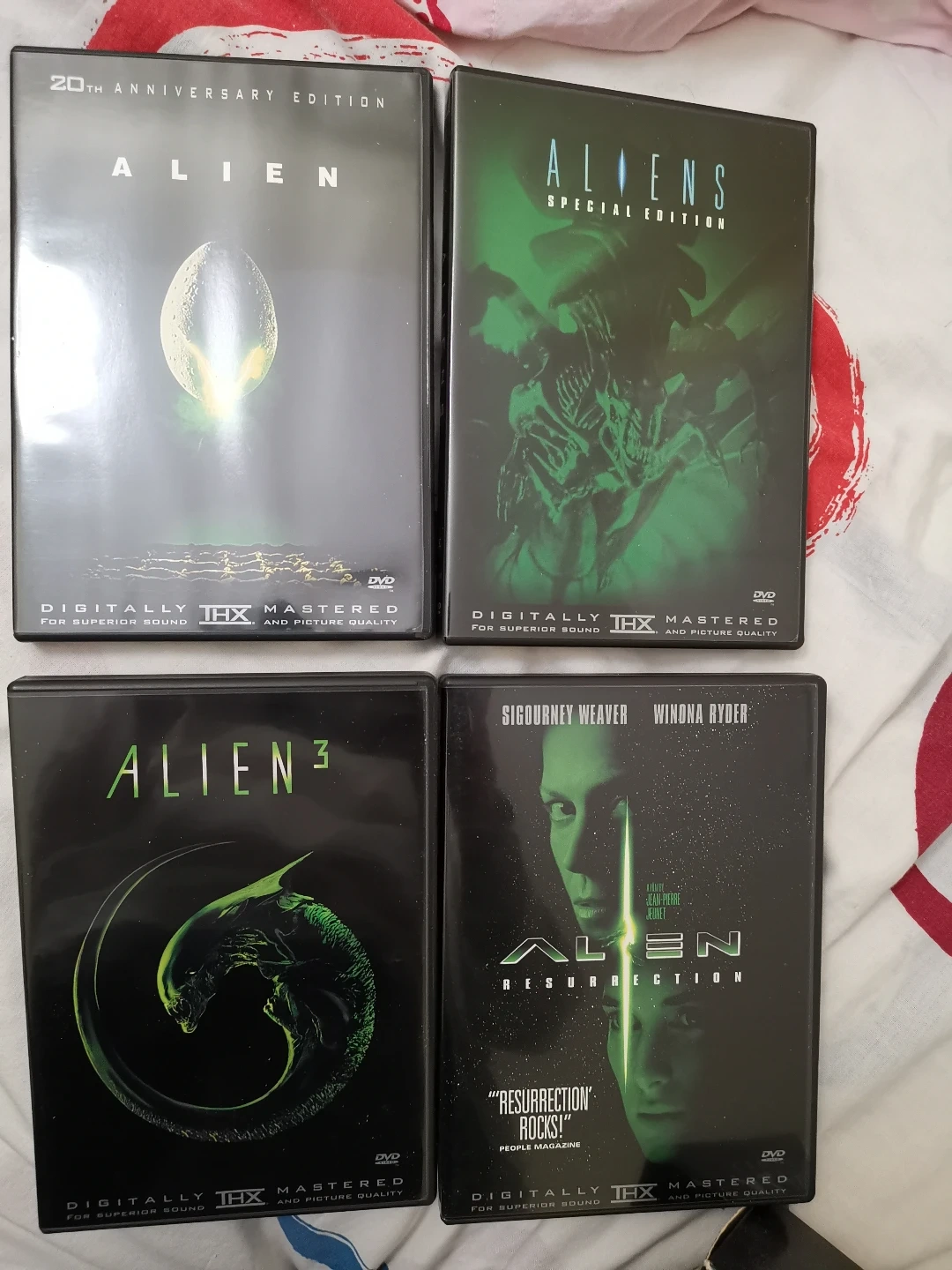 Complete Alien film DVD collection. Includes Alien, Aliens Special Edition, Alien 3, and Alien Resurrection. 20th Anniversary edition packaging. Digitally mastered for superior sound and picture quality. THX certified.