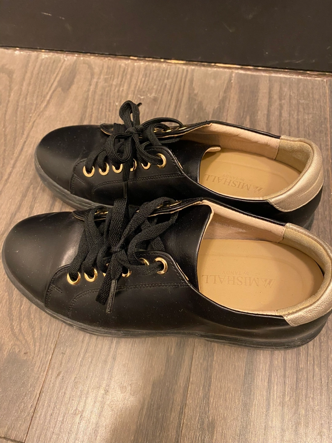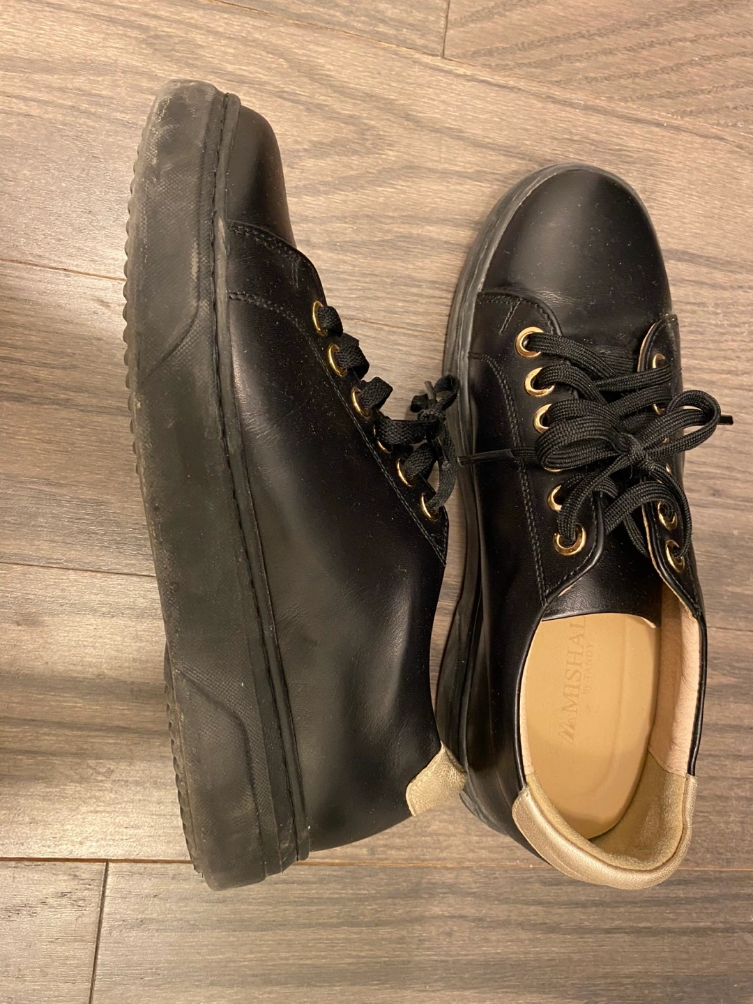 Black Platform Shoes Size W 6.5-7 These shoes have a hidden platform for an extra height boost Color is black and gold