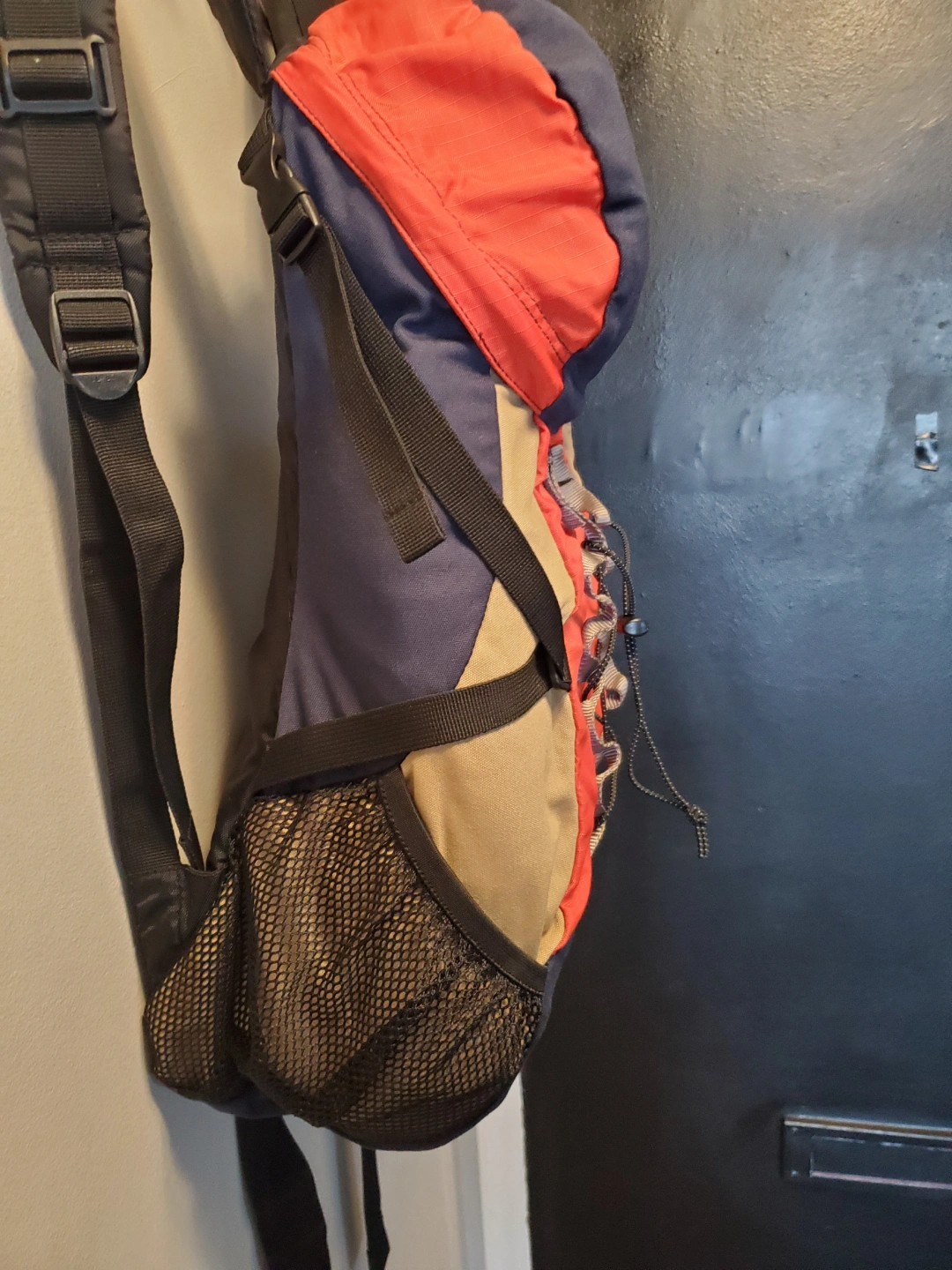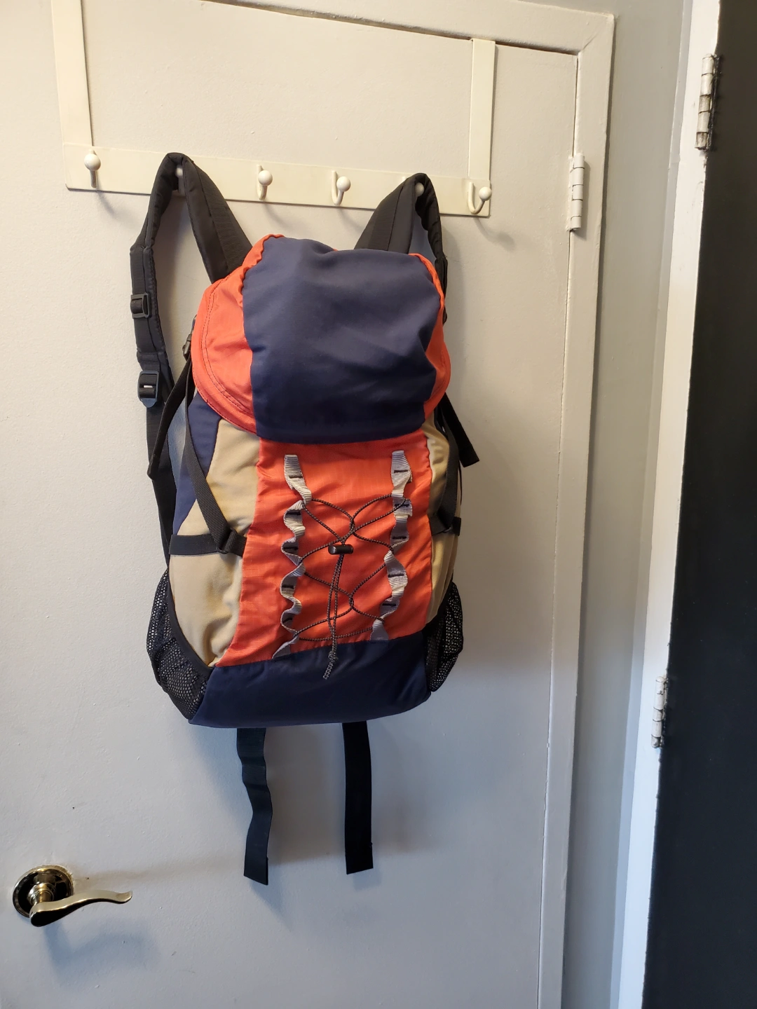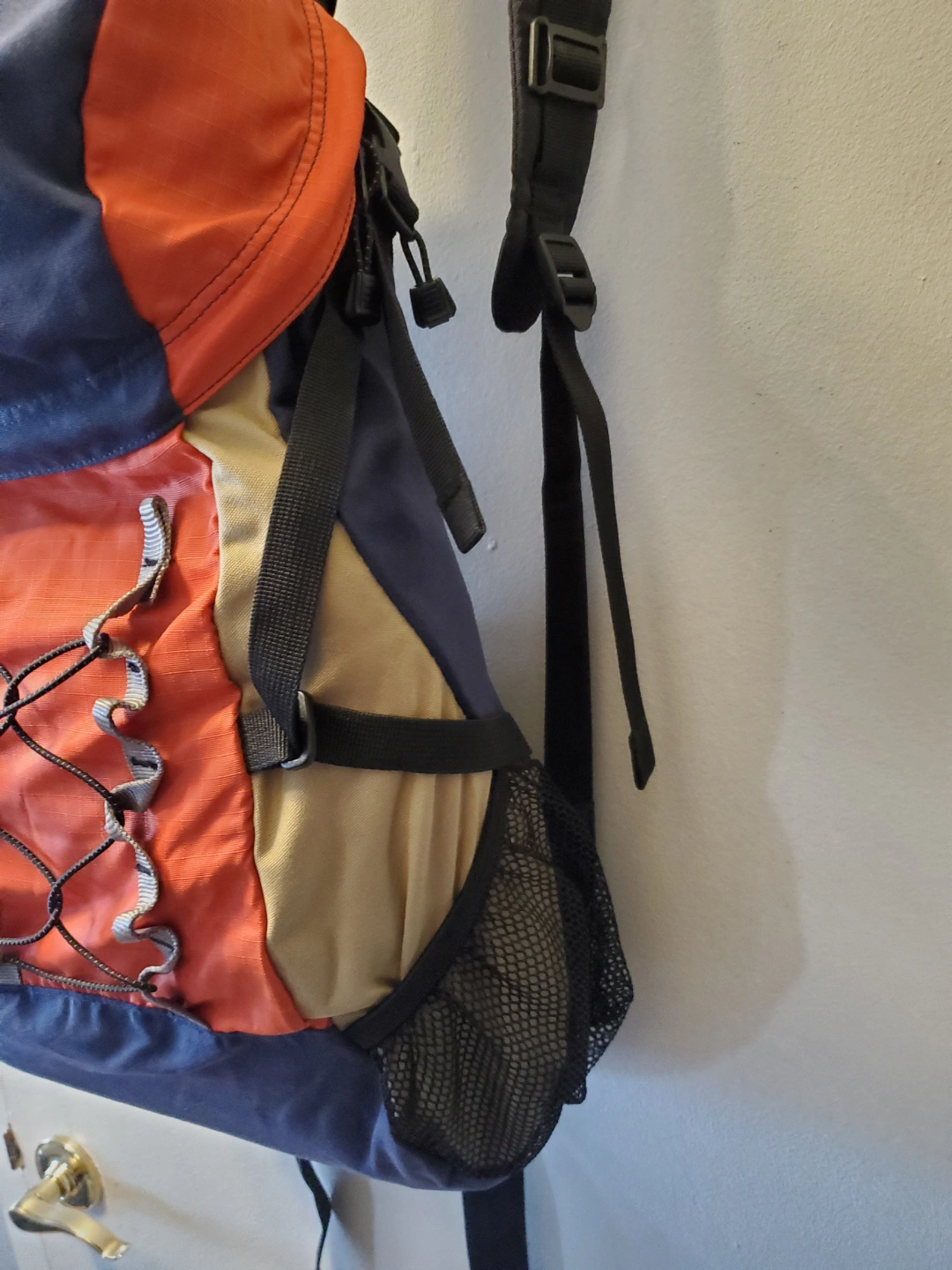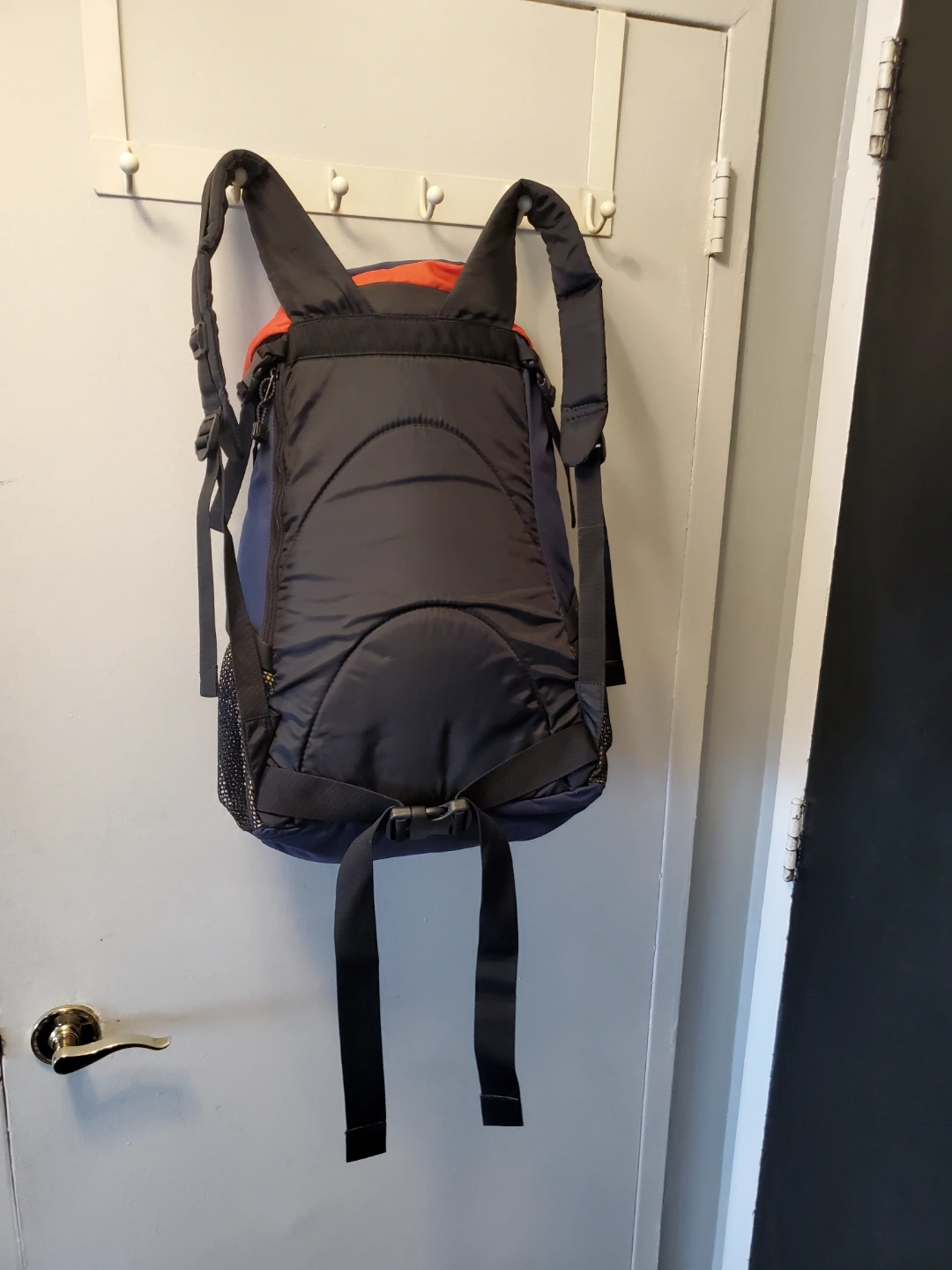 Multiple compartments. Adjustable straps. Side mesh pocket. Durable material. Colour combination: Blue, orange, and beige. Very good condition only cash price firm no delivery. I have more Backpacks, Crossbody Bags Belts Bags and Gym Bags for sale different prices different colors and different Brands if you want you can come to see all Bags only cash. I have and app Facebook and app Kijjijji. Location Cawthra and Lakeshore Mississauga