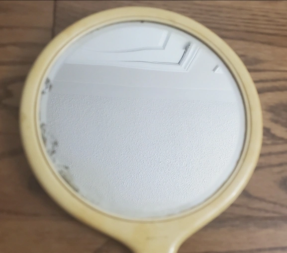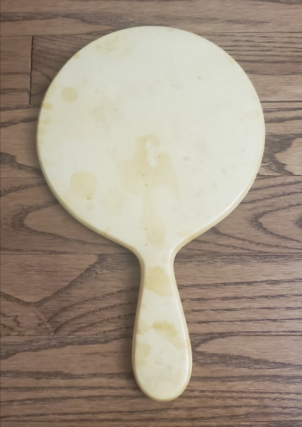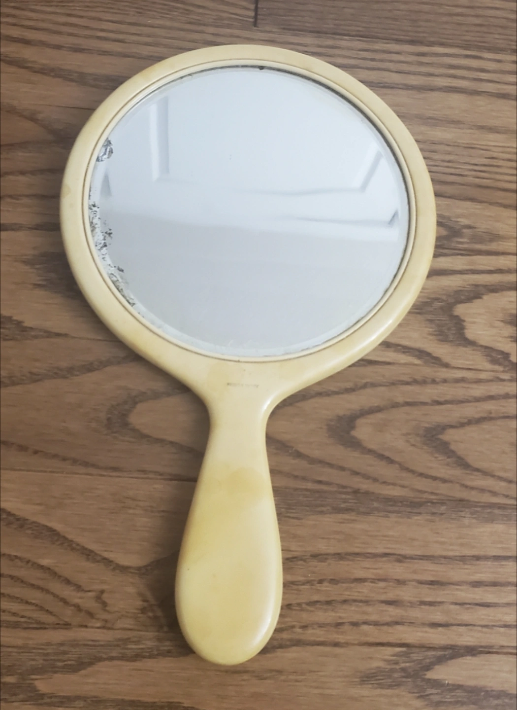Vintage 1920's Celluloid “French Ivory” Hand Mirror 10.7" x 6.5" Discoloration spots Chip and marks on mirror as per the pics ***Please Check Out My Other Ads