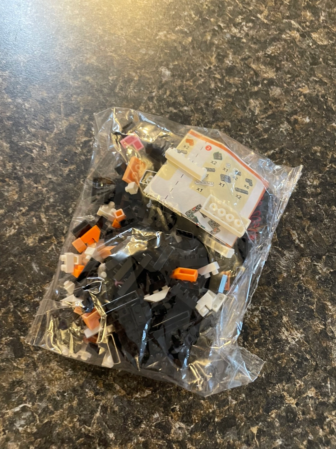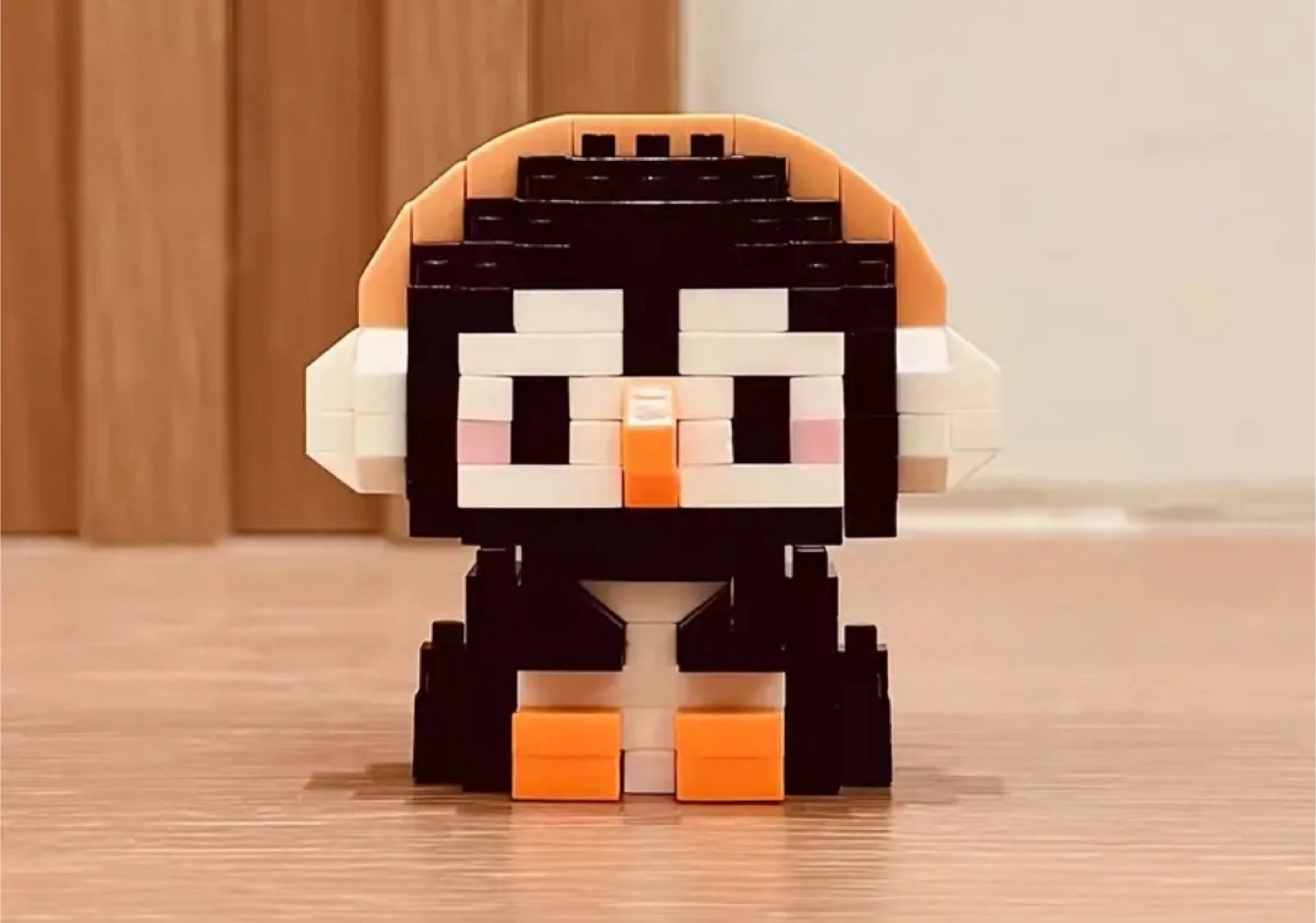 Small block figures. figure is a penguin with headphones. A relaxing activity for a quiet afternoon.