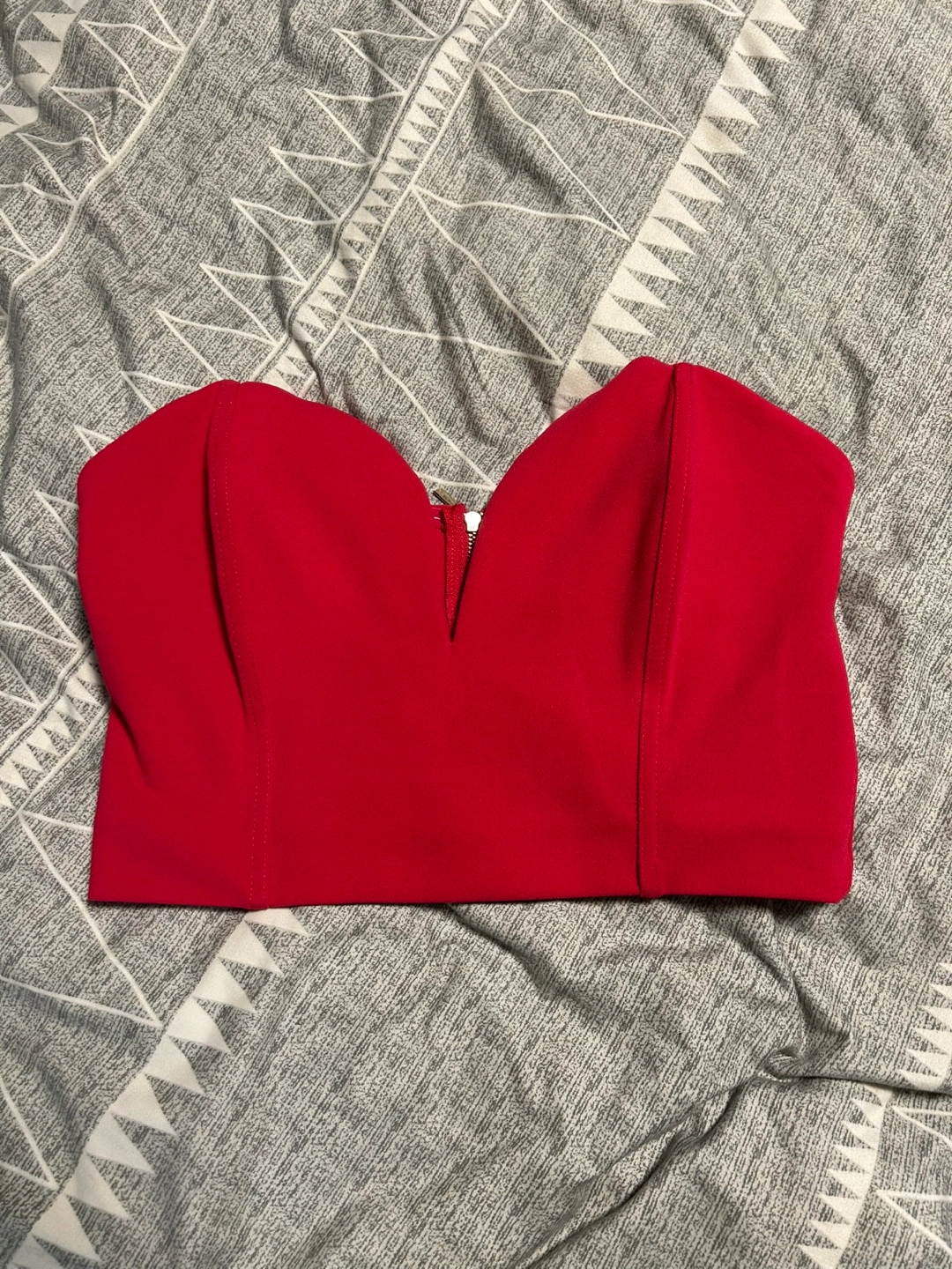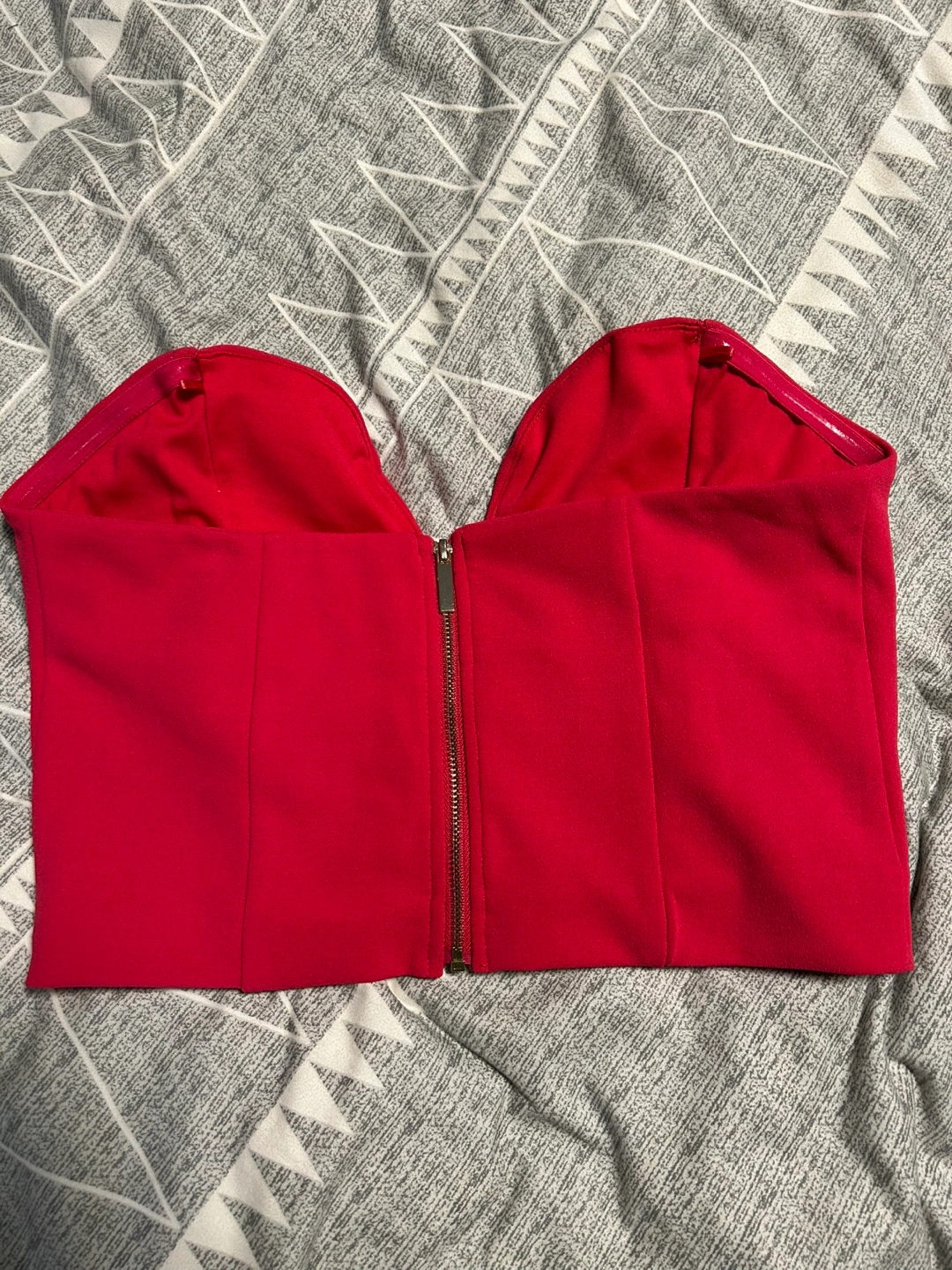 Eye-catching pink strapless top. Includes a front zipper. Perfect for a night out, or an evening of relaxation.
