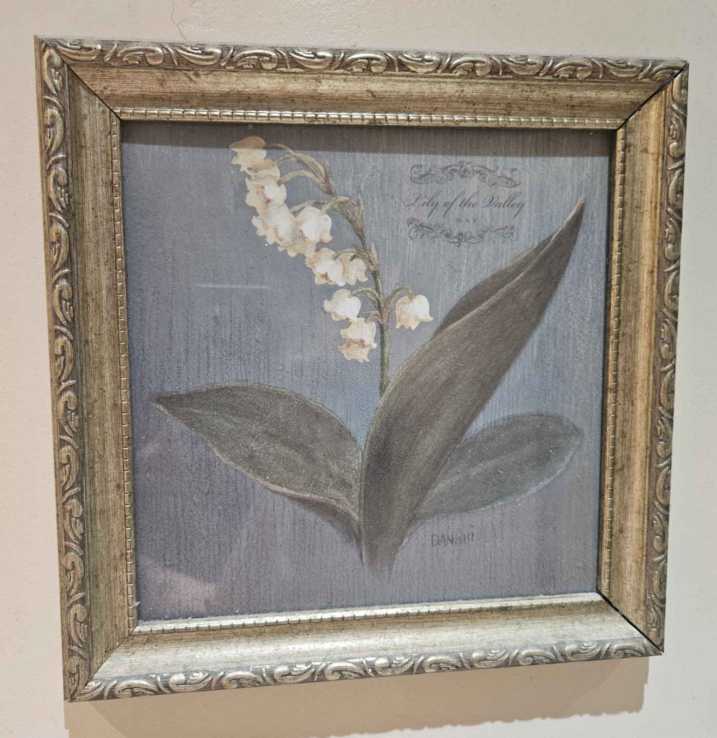 Two framed botanical prints. Floral illustrations with a muted colour palette. Prints are in decorative frames with a silver finish. Hanging these prints in a bedroom could bring a touch of serenity to your space. Each for $30 , both for $50 10×10