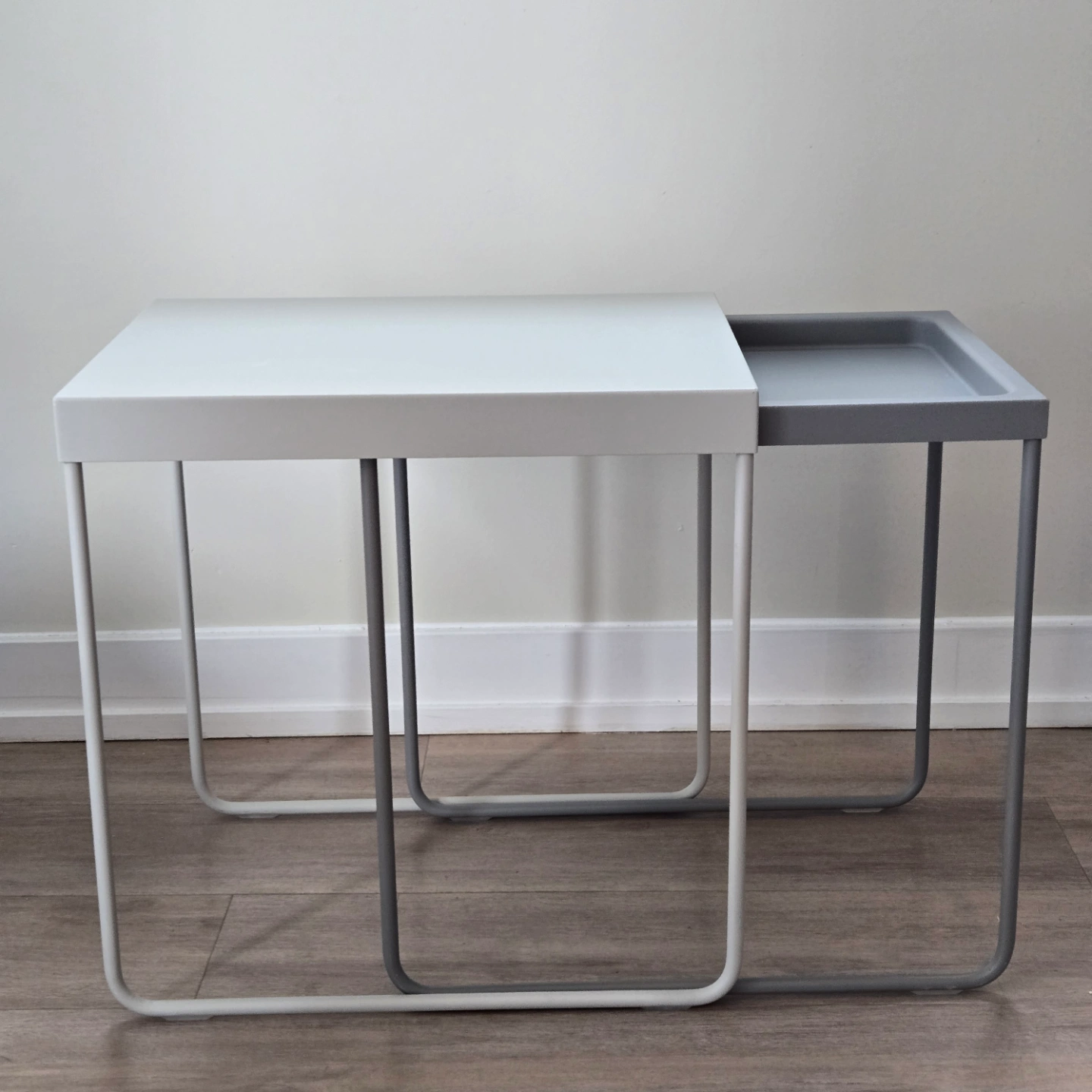 • There is a minor scratch on the top of the bigger table and a few other minor scratches down on the legs of both tables (please, see the pictures) • Used indoors only • Measurements: ▪ Bigger: ▪ Height: 48 cm (18.89") ▪ Depth: 48 cm (18.89") ▪ Width: 36.5 cm (14.37") ▪ Smaller: ▪ Height: 46 cm (18.11") ▪ Length: 48 cm (18.89") ▪ Width: 33 cm (12.99")