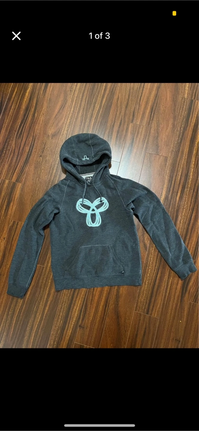 Great condition overall. Some fraying at the ends of the sleeve cuffs (see pic #3). Really nice thick material. Gray with light teal embroidered logo on the front. Pickup in Oshawa - Harmony/Rossland area