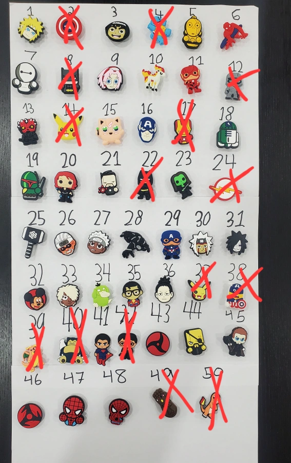 A variety of colourful characters. $3 for 5 pieces or $1 a piece Please specify the numbers you need in your message. All numbers are included in the pictures for close-ups. If it is crossed out it means it is not available. 2, 4, 8, 12, 14, 17, 22, 24, 37, 38, 39, 40, 42, 49, 50 are sold Pick up Hespeler Cambridge Check my other ads for more items.