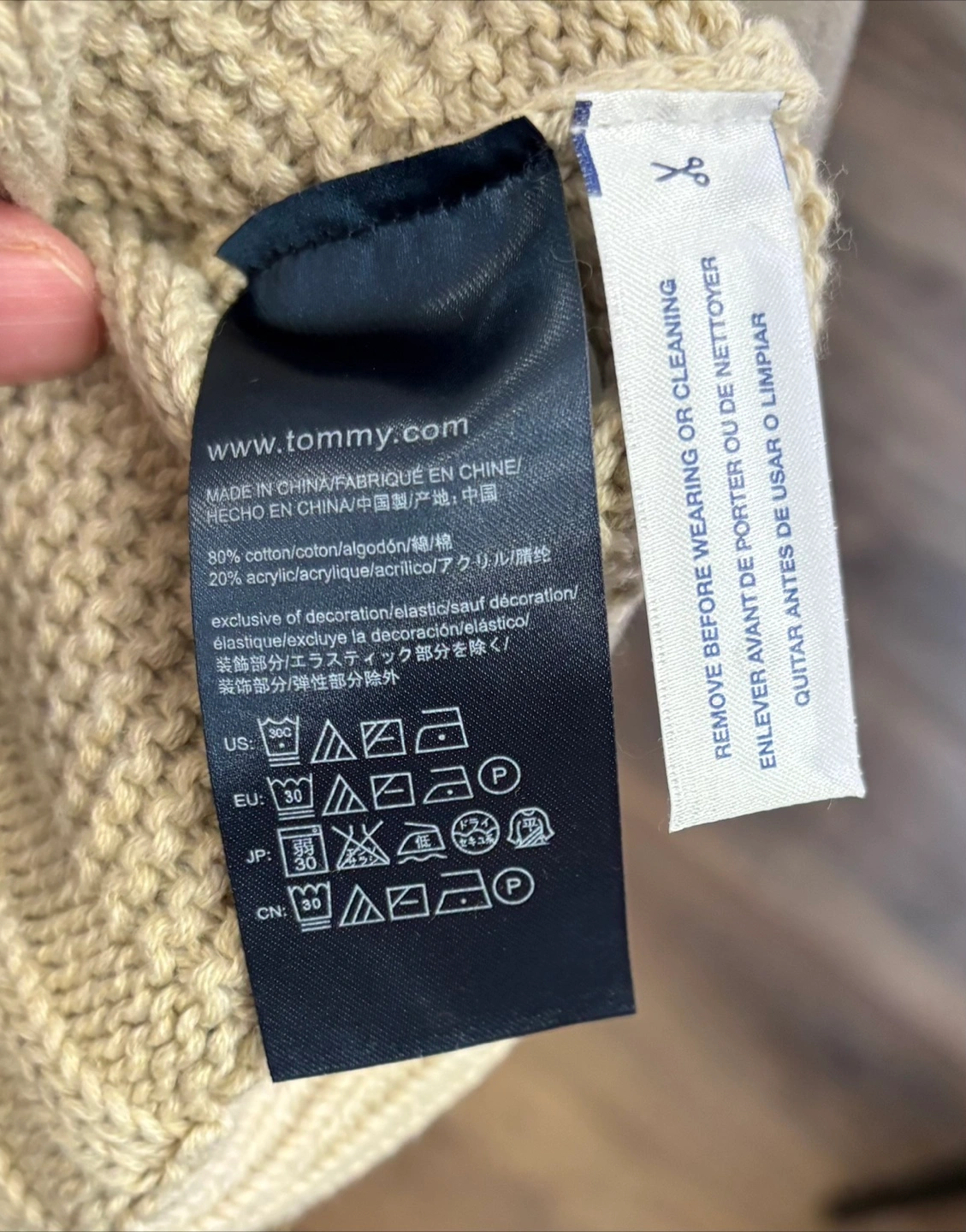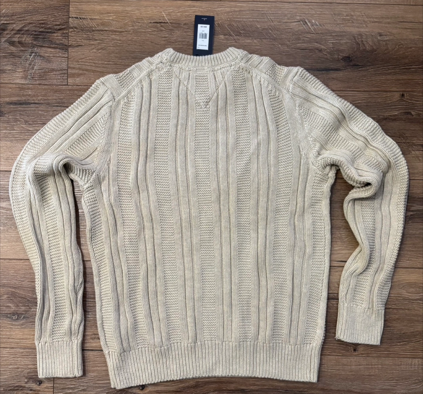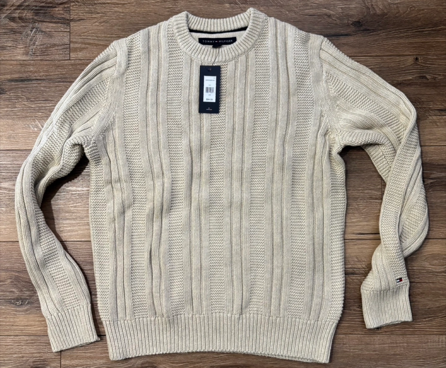 Neutral-coloured knit sweater. Crew neck, long sleeves. Ribbed detailing. Perfect for those cozy nights in. Tommy Hilfiger Knit Sweater with Tag