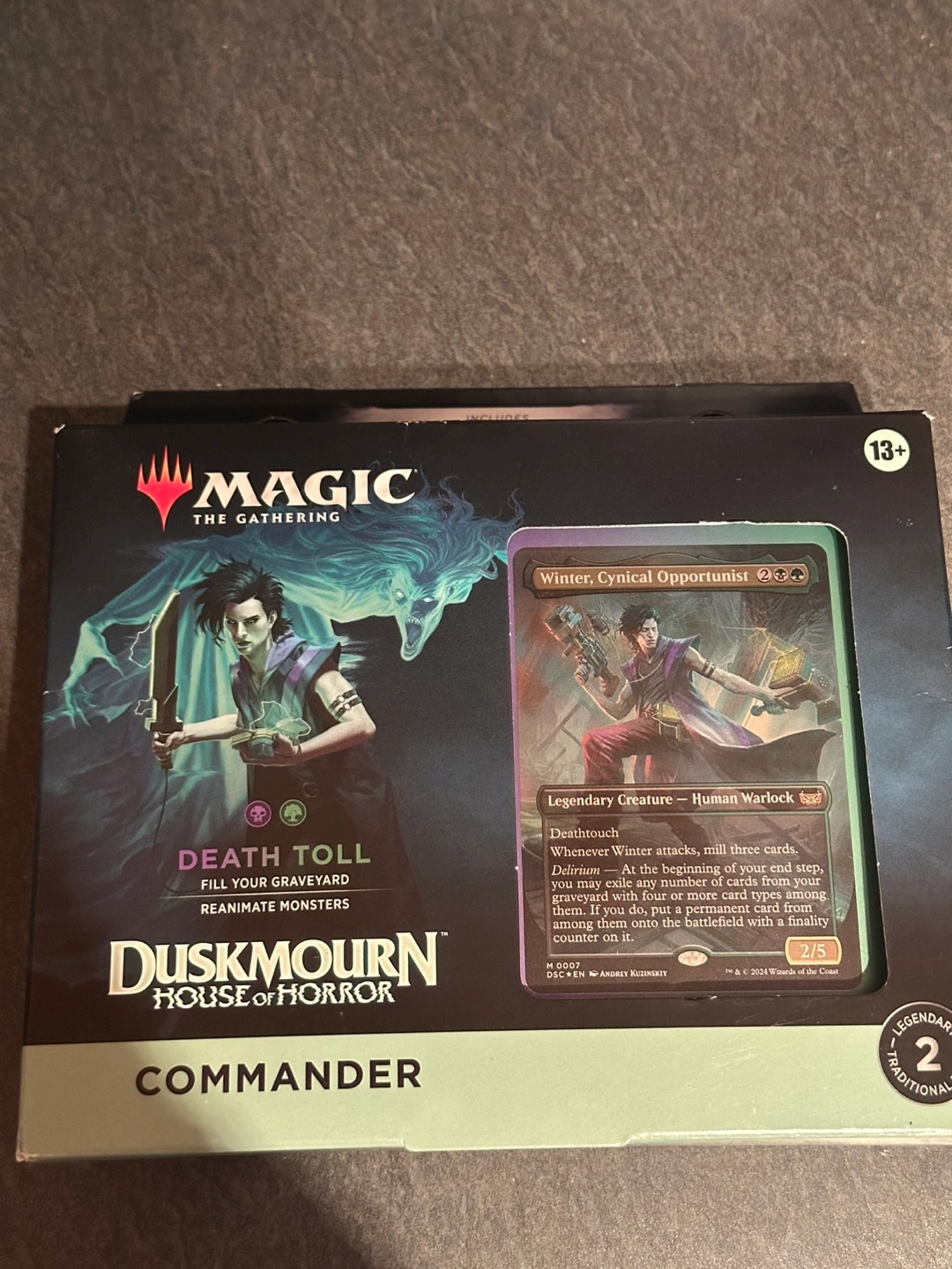 Commander deck featuring the Death Toll cards. The box contains a 100-card deck, 10 new cards, 10 double-sided tokens, a deck box, strategy insert and a reference card. A great way to spend a relaxing afternoon.