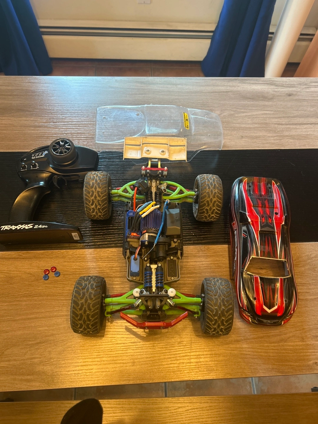 My pride and joy The best RC in my opinion This thing can take a serious beating Skate parks jumps water whatever you throw at it It will survive I personally upgraded and rebuilt this machine Upgraded it with all the parts to make it light strong and pretty much impossible to break I would estimate about 1500$ worth of upgrades (some aftermarket parts are just expensive for no good reason) I will only sell this to someone who knows the value and appreciates the hobbie I’m only asking for 400$ So don’t even bother to ask for a deal I also have a listing on my page with a bunch of upgrades and parts for this machine all still in original packaging brand new. Also hard to see in the photos but every single screw and bolt on this car I upgraded to stainless steel so you will never have to worry about the hardware rusting This unit is as water resistant as humanly possible it has a 2s lipo battery and fast charger and can literally be thrown off a building and still run. Whoever buys this I hope you push it to its limits because it’s incredibly satisfying.