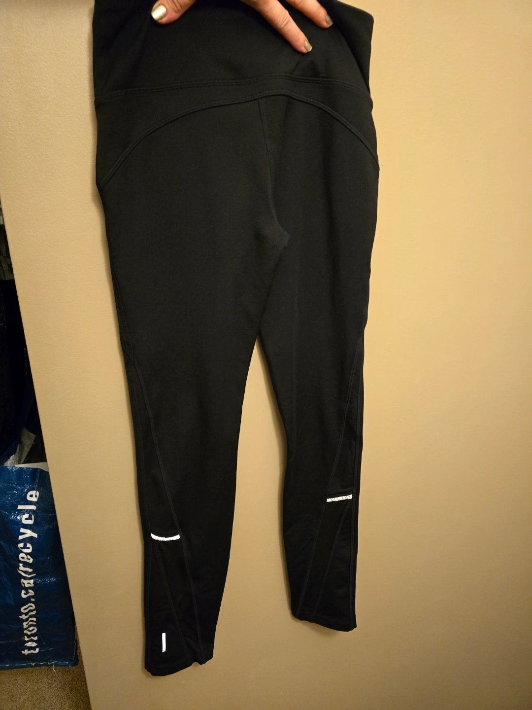 These Mondetta leggings are great for running or yoga, providing both comfort and support during workouts. They are black, size medium, and feature reflective accents for visibility in low-light conditions. While these leggings have been worn, they're still in good condition and ready for a new owner to enjoy. Leggings in solid black colour. Features seam detailing and reflective strips. High waisted design. Enjoy these leggings on a nice relaxing walk. Key Features: * Brand: Mondetta * Size: Medium * Colour: Black * Reflective detailing Ready to add some pep to your step? If you see this ad, the leggings are still available, so feel free to reach out!