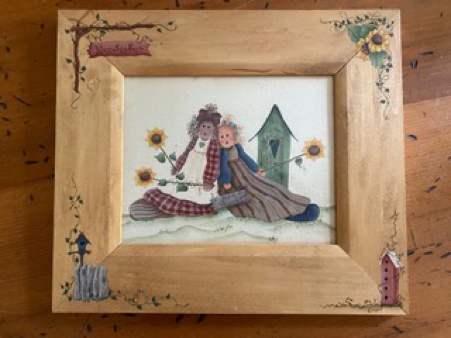 Hand painted by Sandy Johnson. Frame measures 15.5” x 13.5” BEST FRIENDS