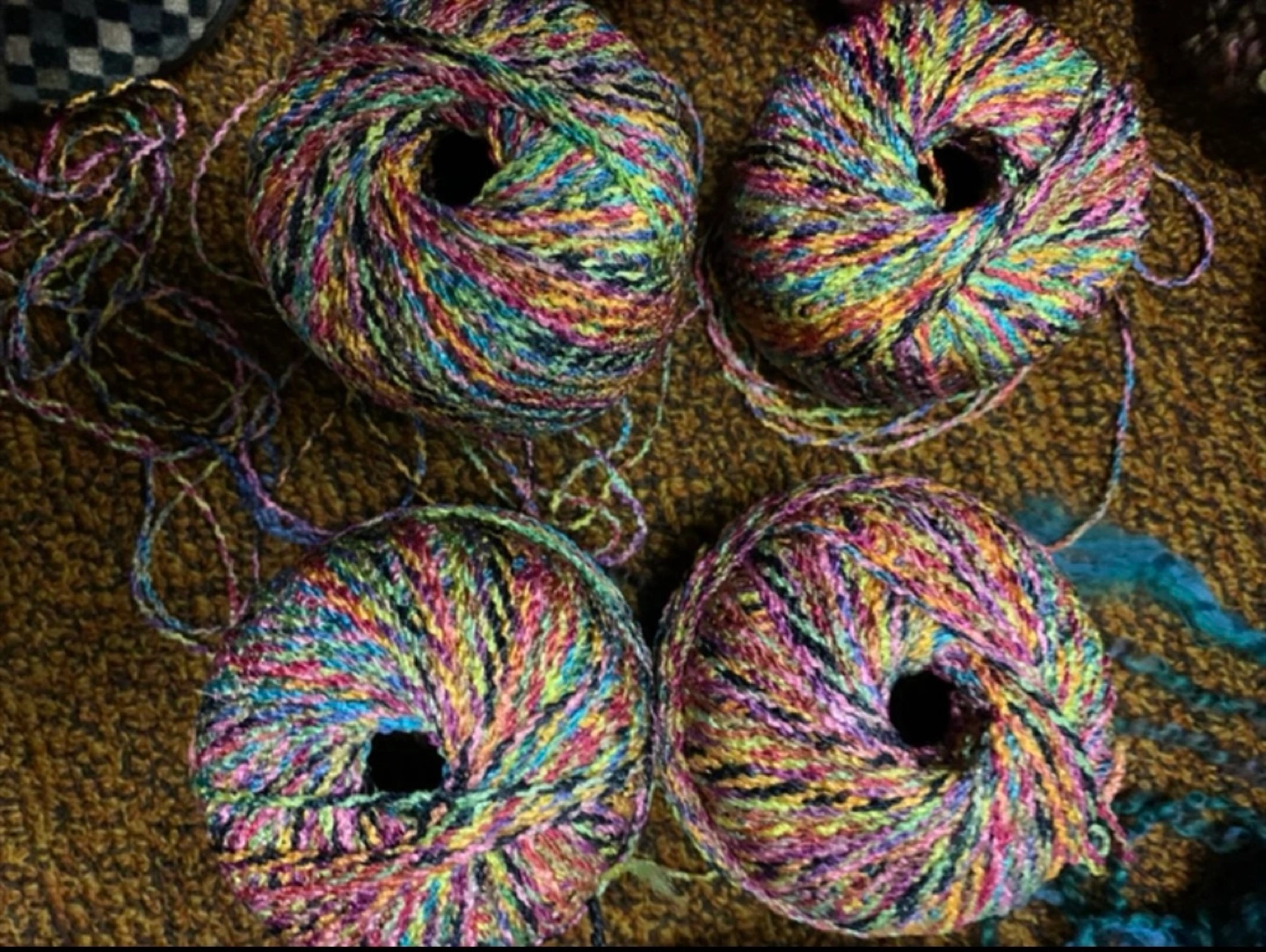 Four shiny colourful yarn balls - new The balls have many colours, like blue, pink, yellow, and more. Perfect for knitting and creating! $4 each or $15 for all 4 No smoking and no pet household